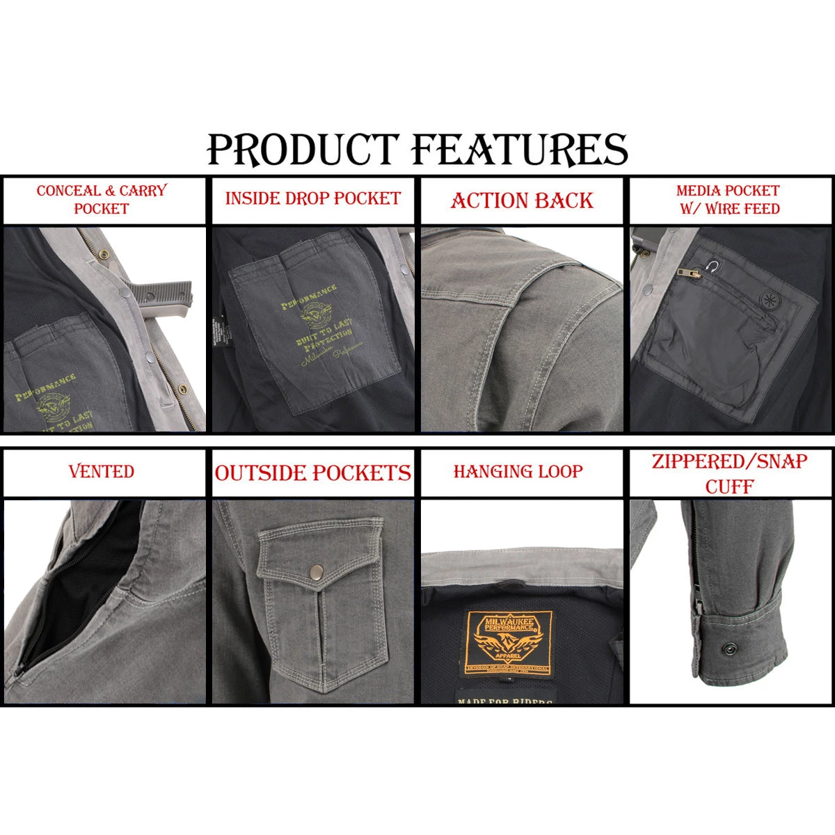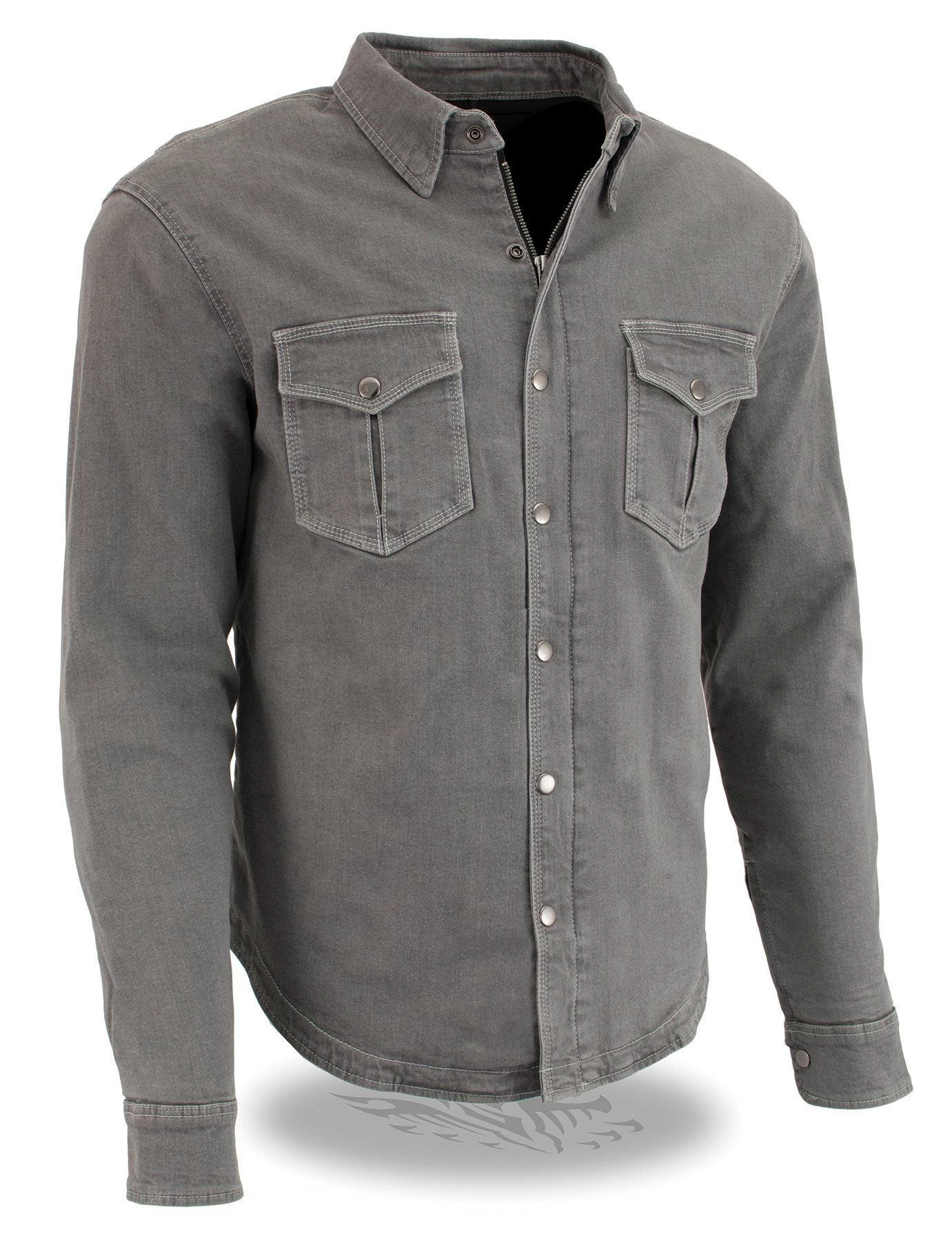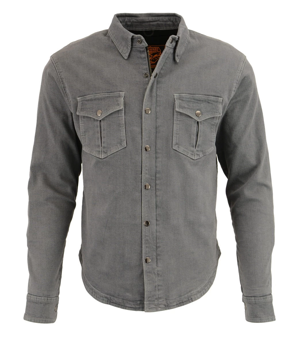 Milwaukee Leather MPM1621 Men’s Grey Armored Denim Shirt with Aramid by DuPont Fibers