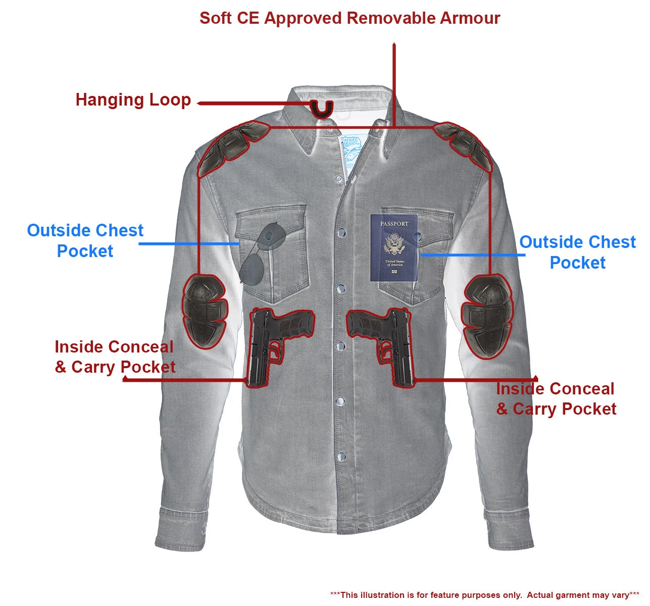 - CE Approved Armor with Fully Reinforced DuPont™ KEVLAR® Aramid Fiber on Shoulders and Elbows
