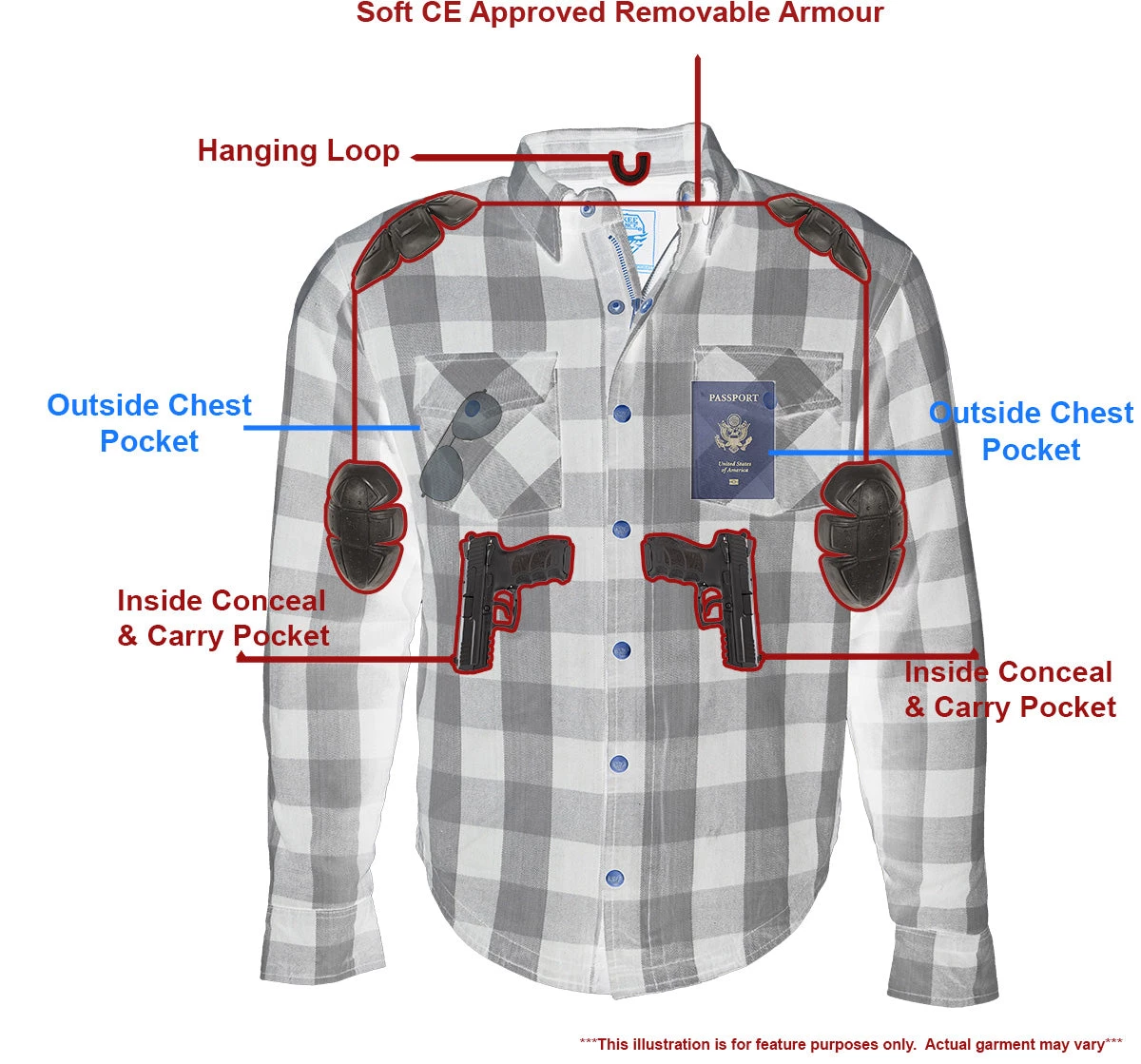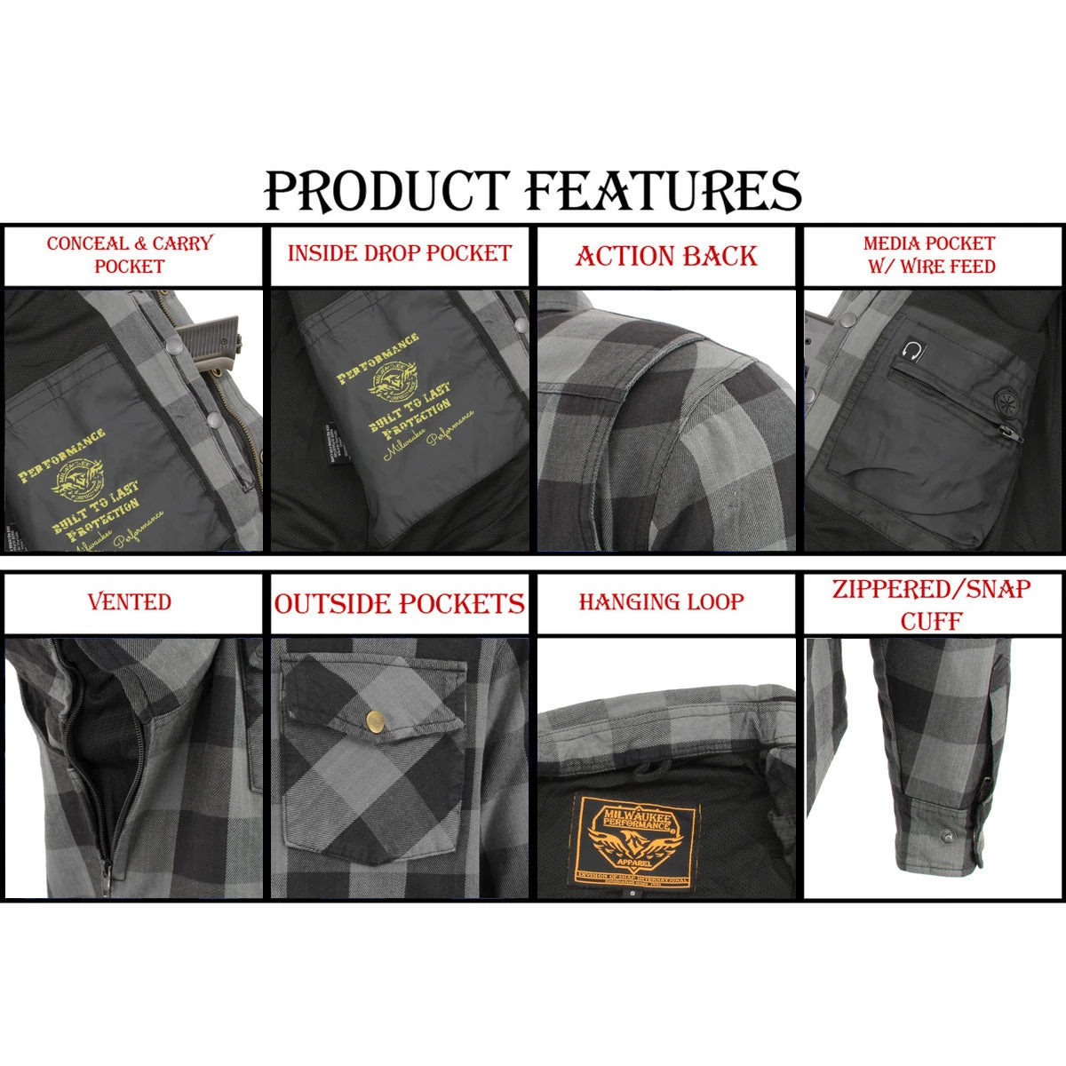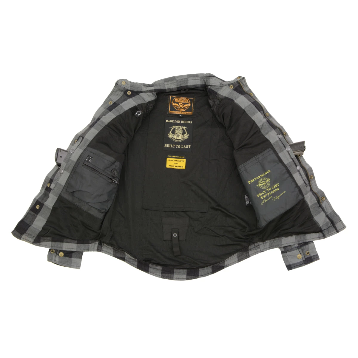 Milwaukee Leather MPM1630 Men’s Armored Checkered Flannel Shirt with Aramid by DuPont Fibers