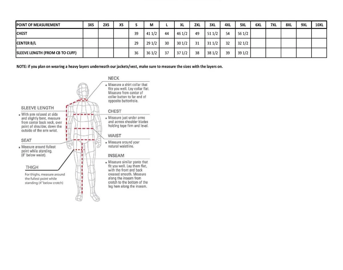 - Vented Under Arms with Zipper Closure