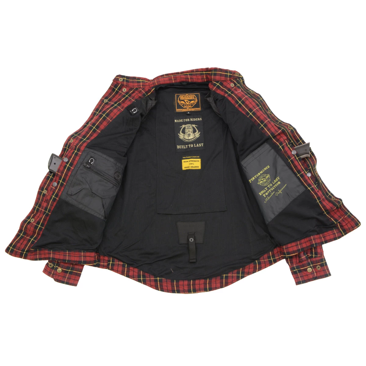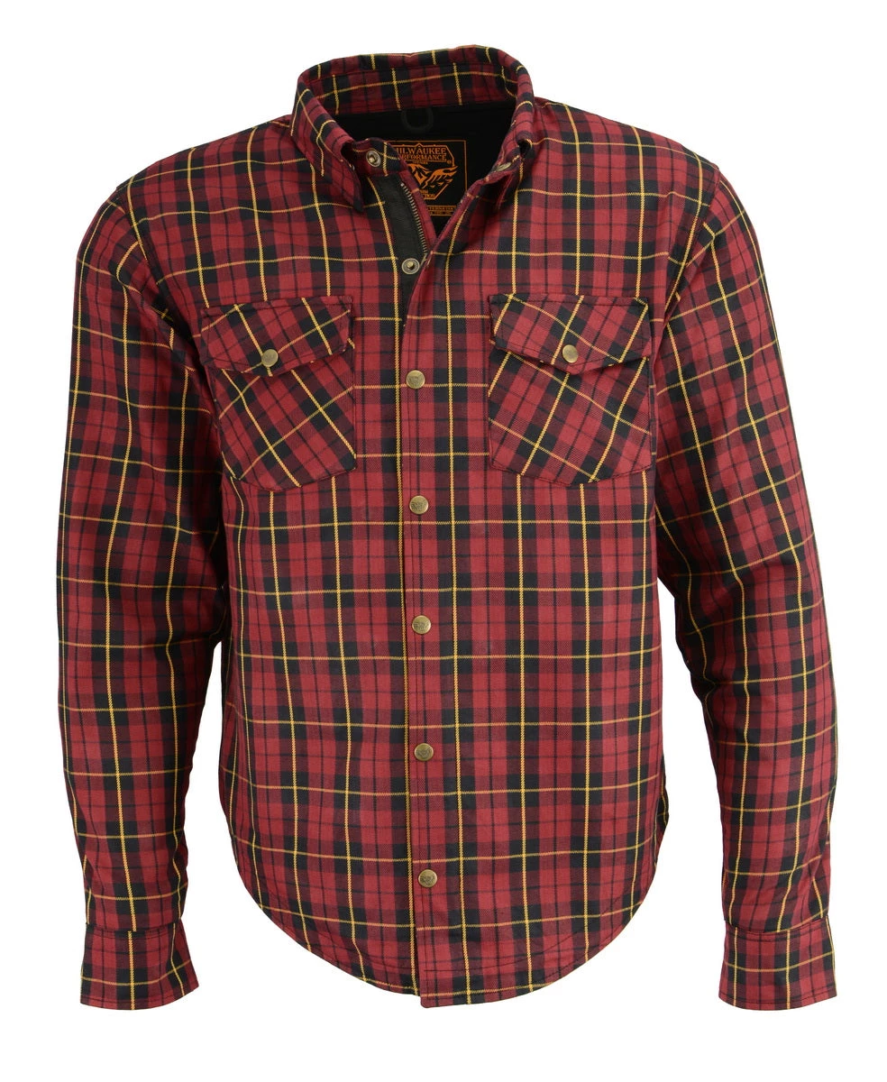 Milwaukee Leather MPM1632 Men’s Black, Red and Yellow Armored Checkered Flannel Biker Shirt with Aramid by DuPont Fibers