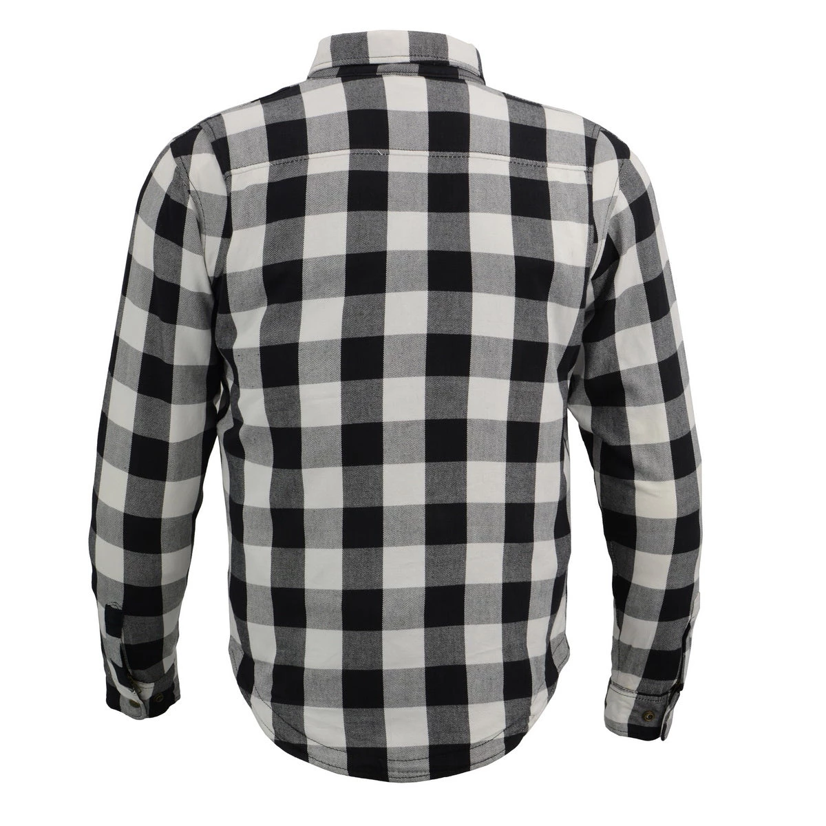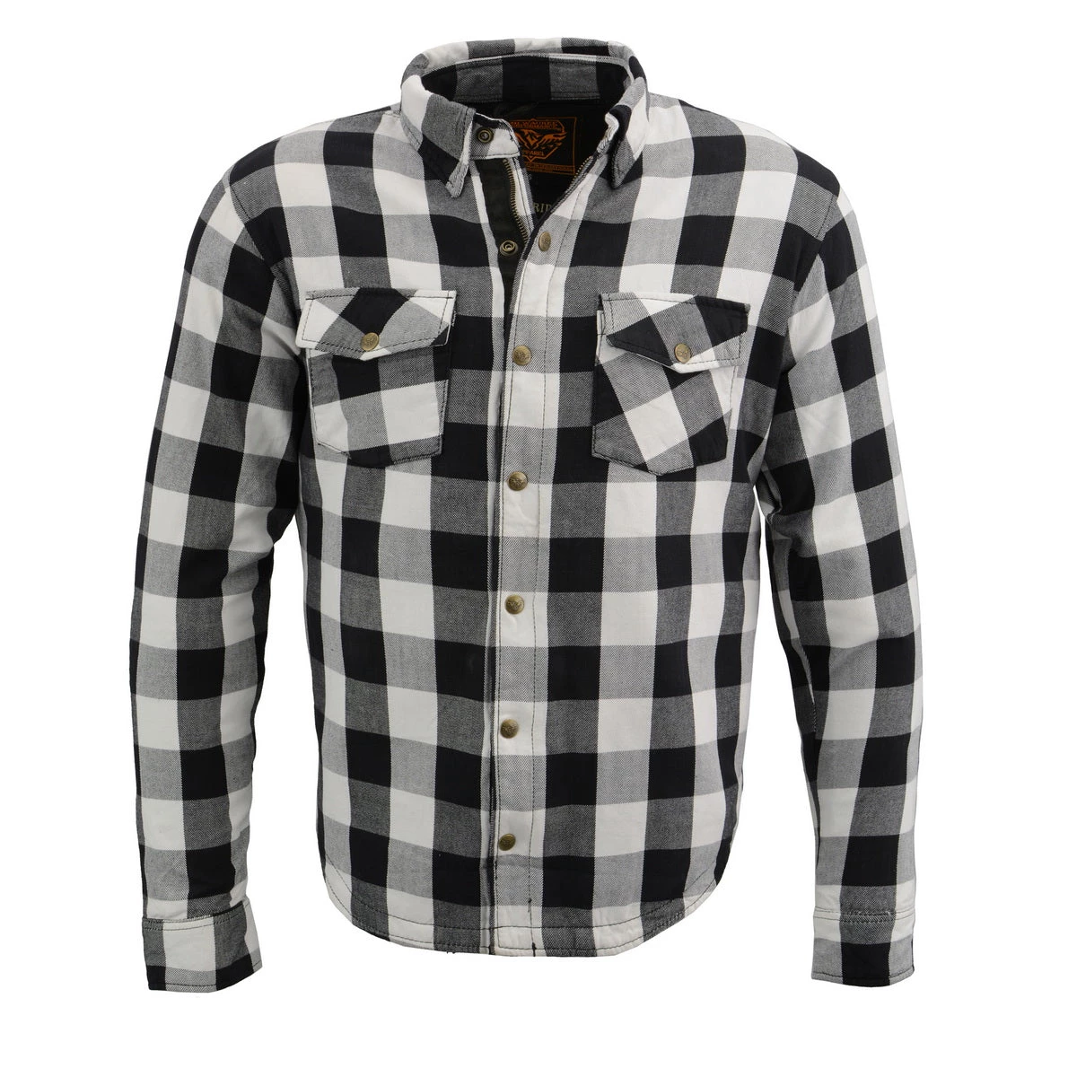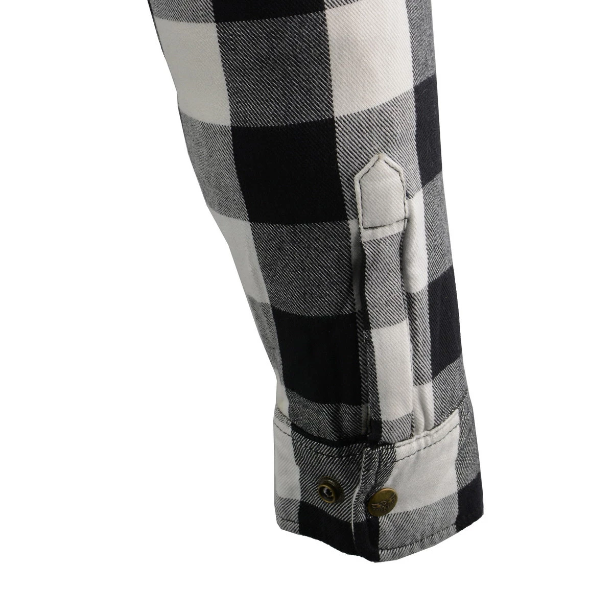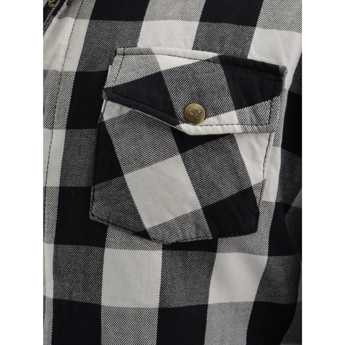 Milwaukee Leather MPM1633 Men’s Black and White Armored Checkered Flannel Biker Shirt with Aramid by DuPont Fibers