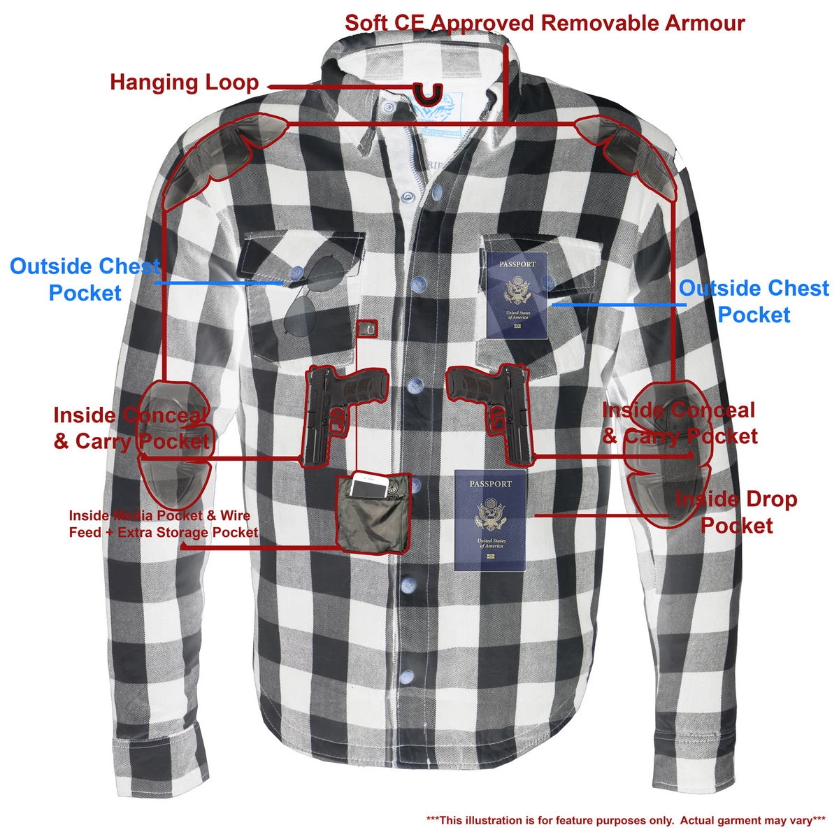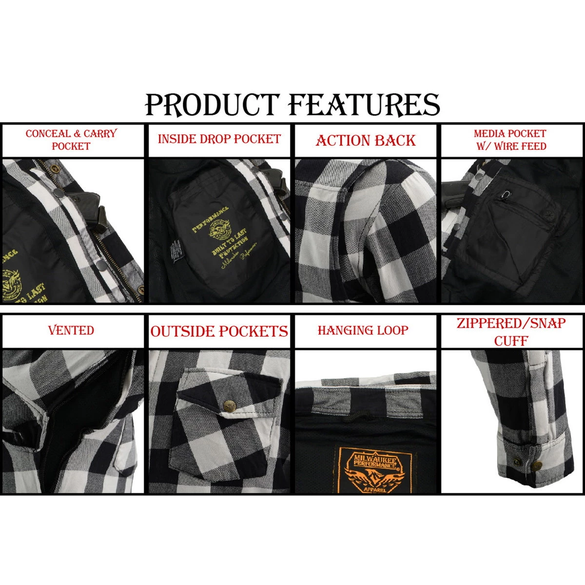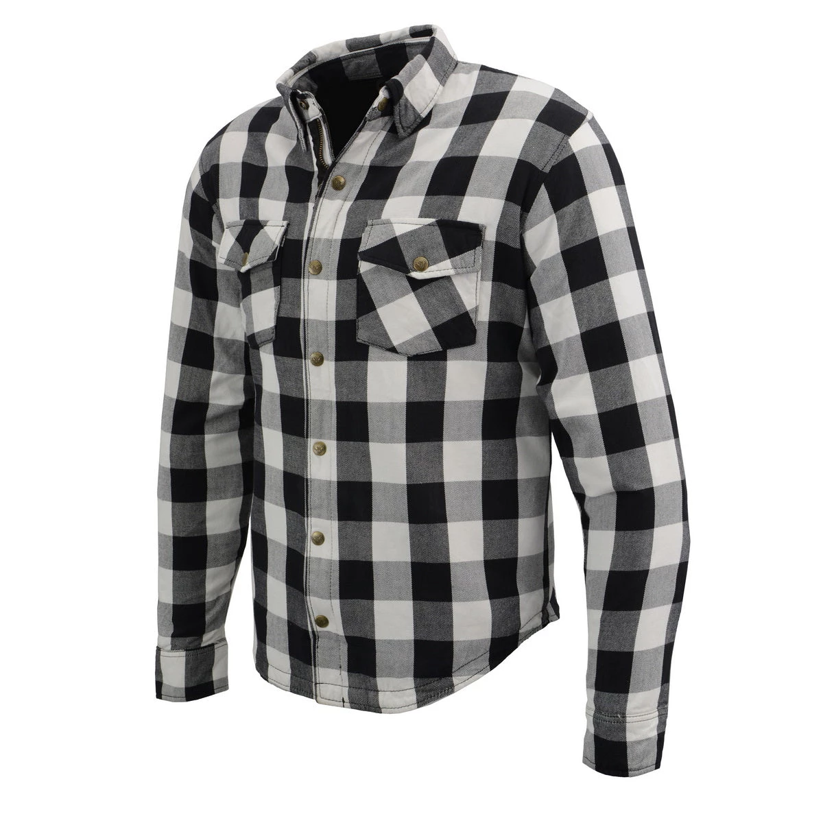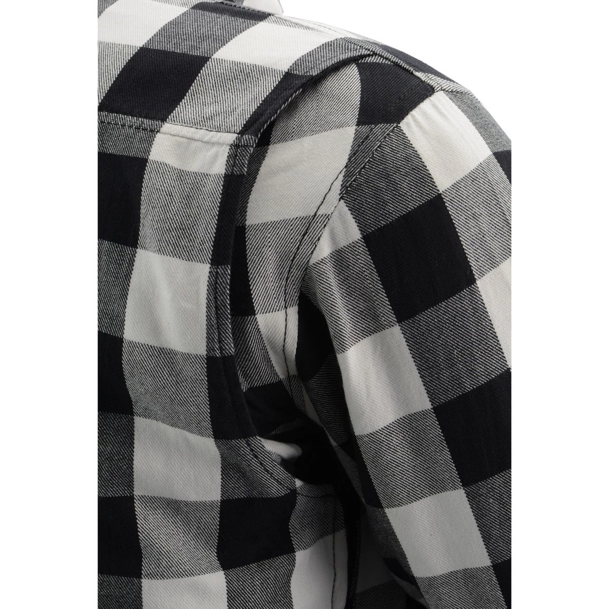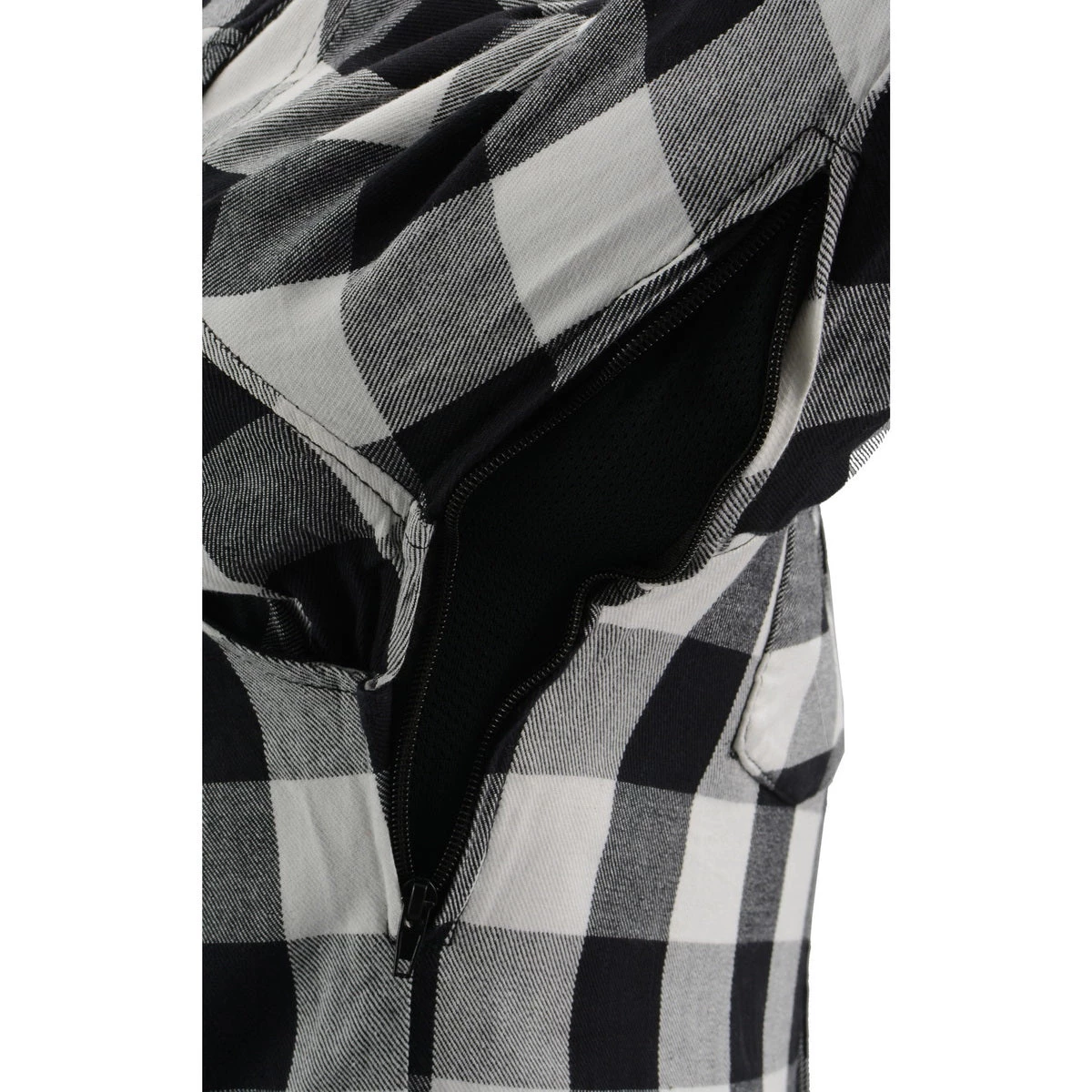 Milwaukee Leather MPM1633 Men’s Black and White Armored Checkered Flannel Biker Shirt with Aramid by DuPont Fibers