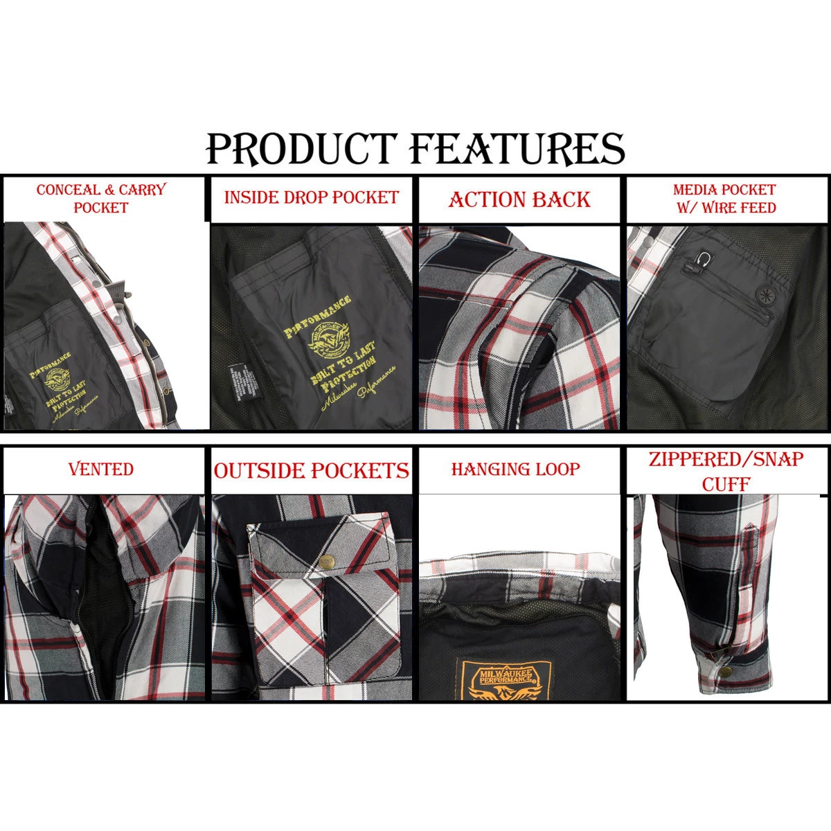 Milwaukee Leather MPM1635 Men’s Armored Flannel Biker Shirt with Aramid by DuPont Fibers