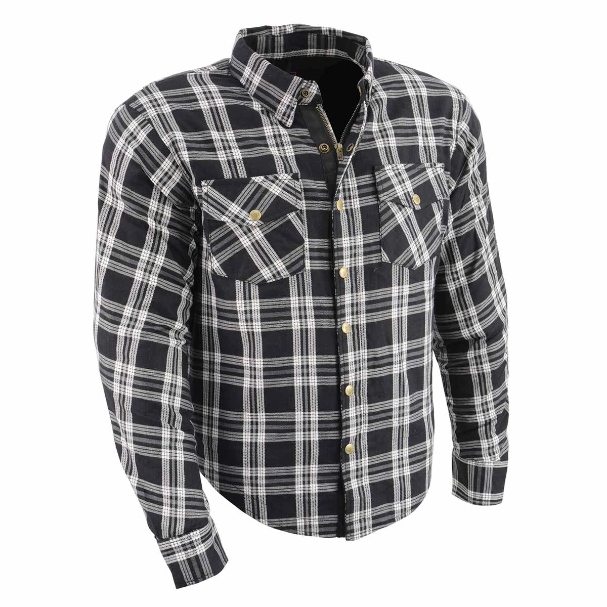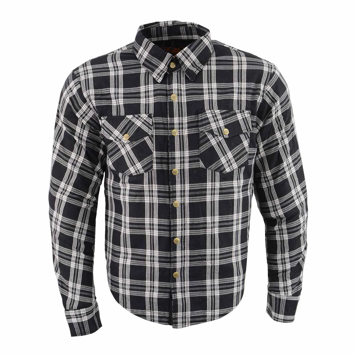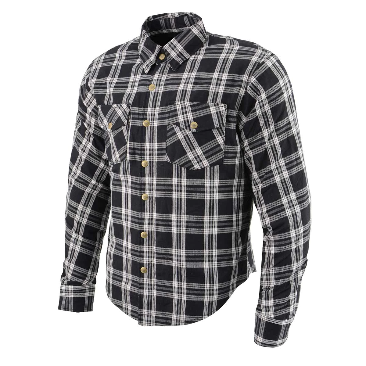 Milwaukee Leather MPM1646 Men’s Black and White Armored Long Sleeve Flannel Shirt with Kevlar