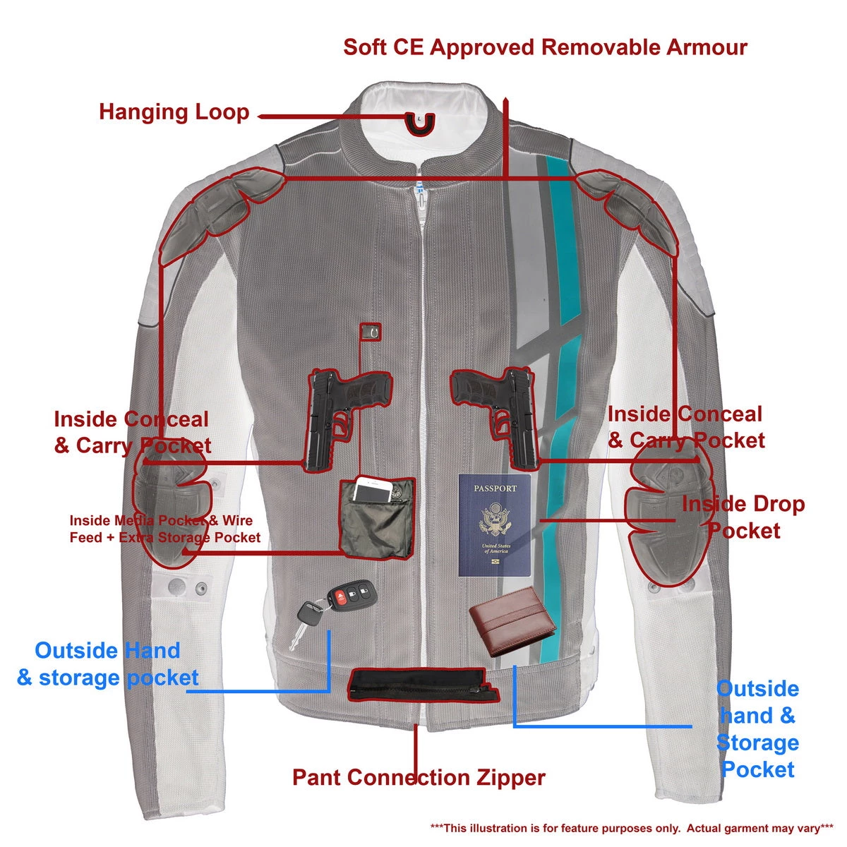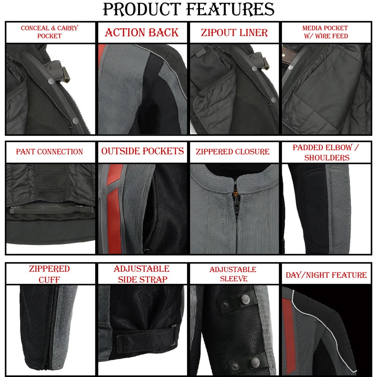 Milwaukee Leather MPM1752 Men’s Black and Grey Mesh Armored Racing Jacket