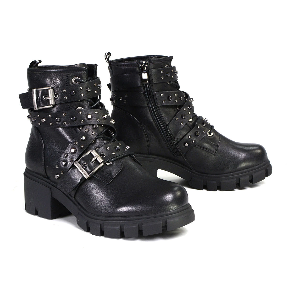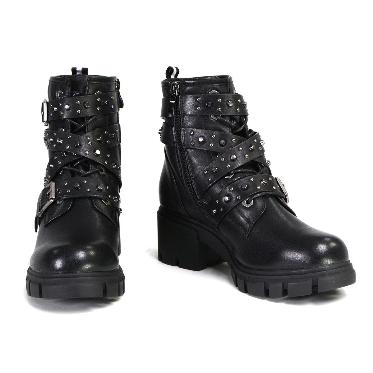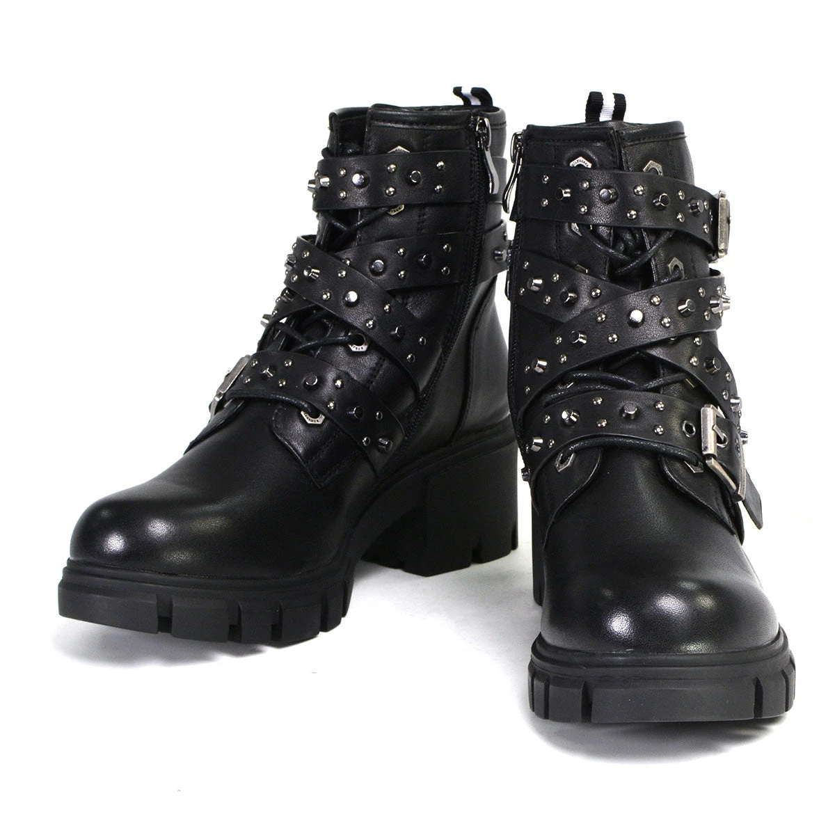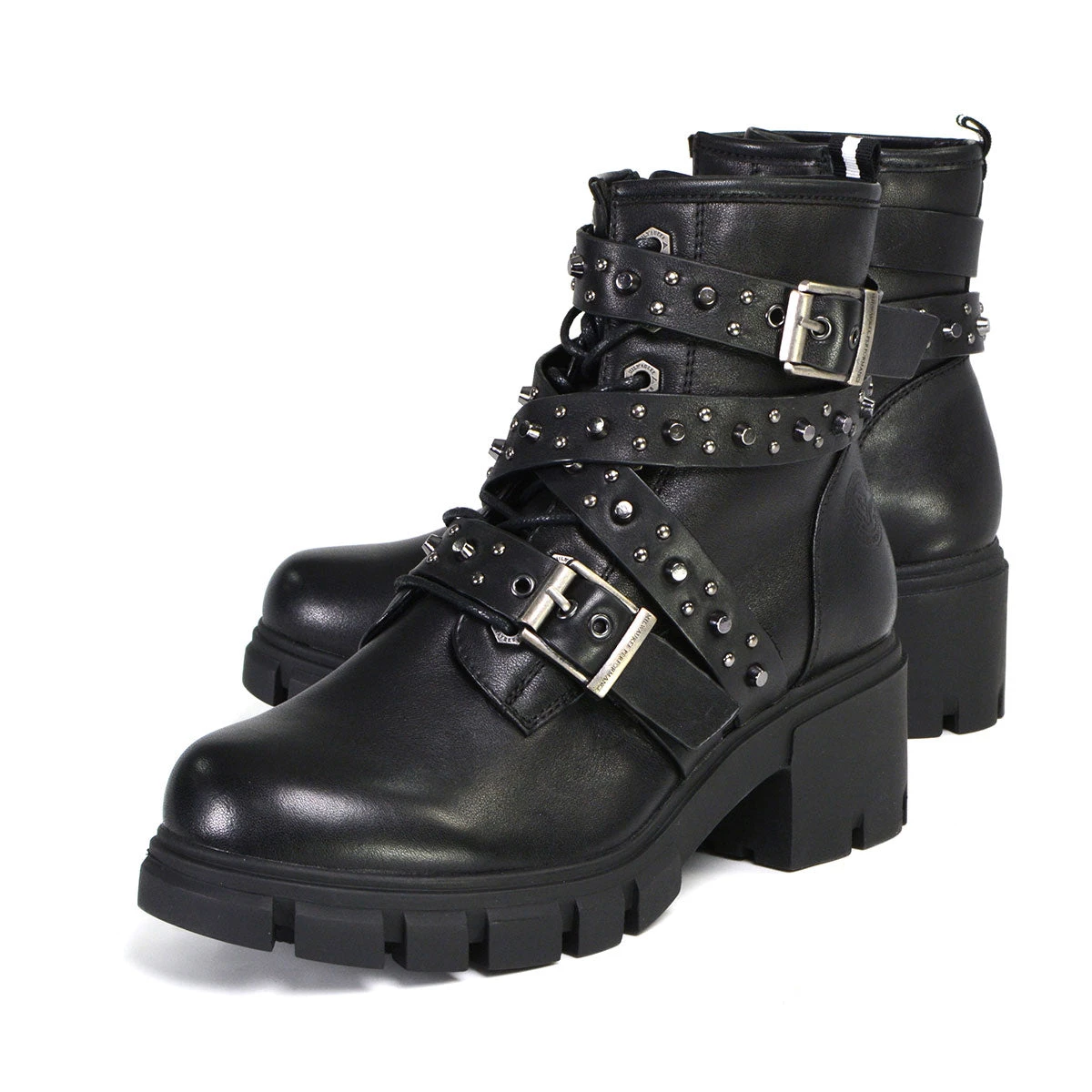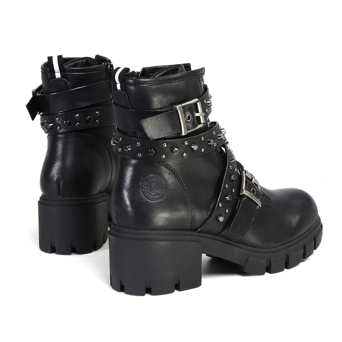 Milwaukee Performance Leather MBL9444 Women’s ‘Bruiser’ Black Leather Lace to Toe Boots with Studded Straps