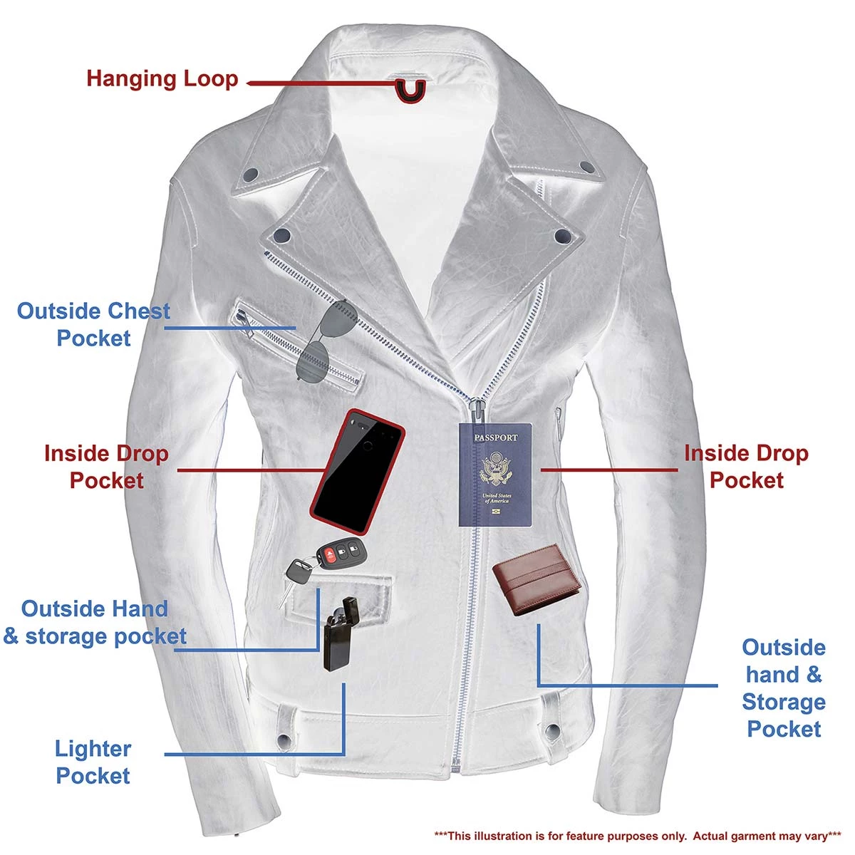 - Upper Right Chest Pocket with Zipper Closure