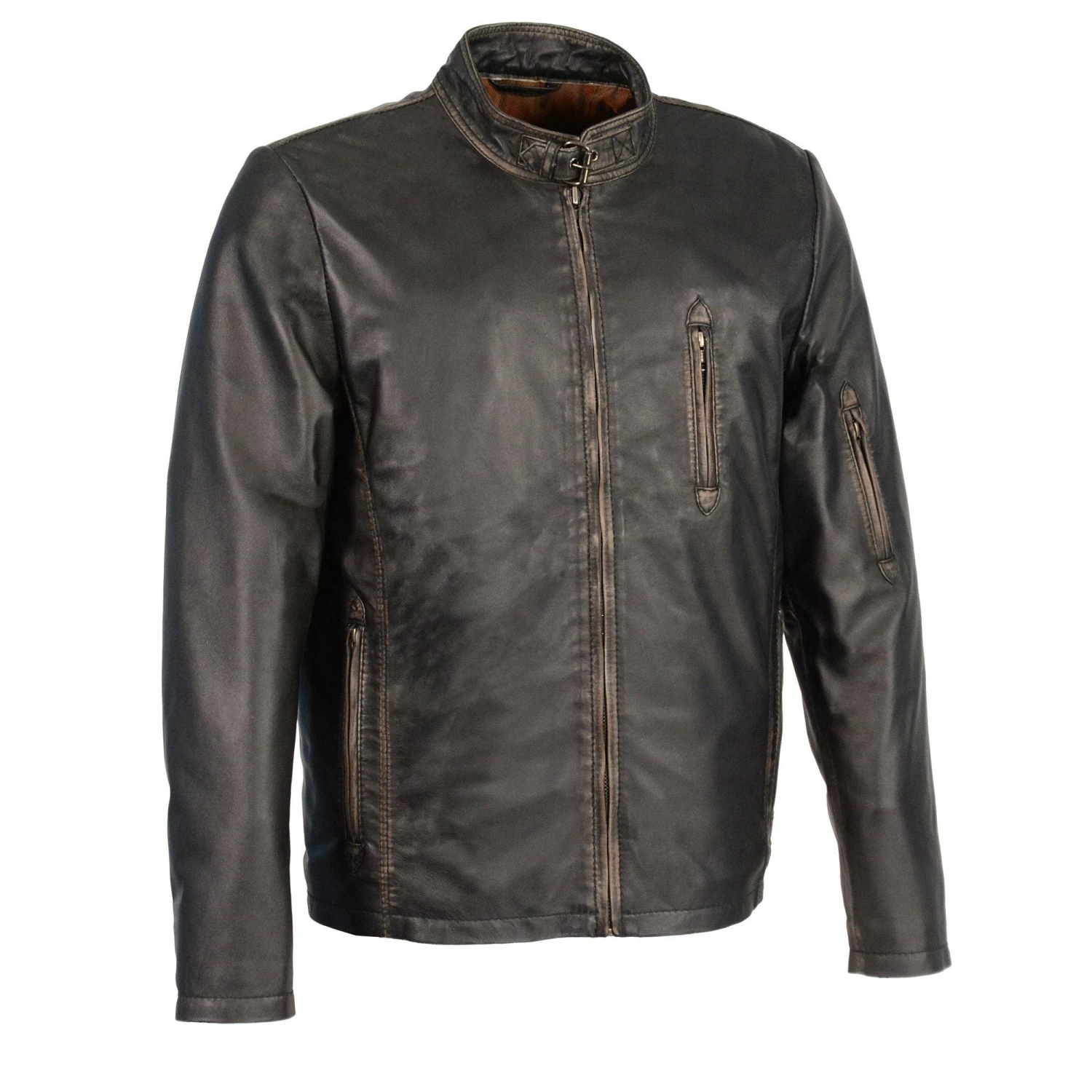 Milwaukee Leather SFM1855 Men’s Black Brown Sheepskin Moto Racer Leather Jacket with Throat Latch