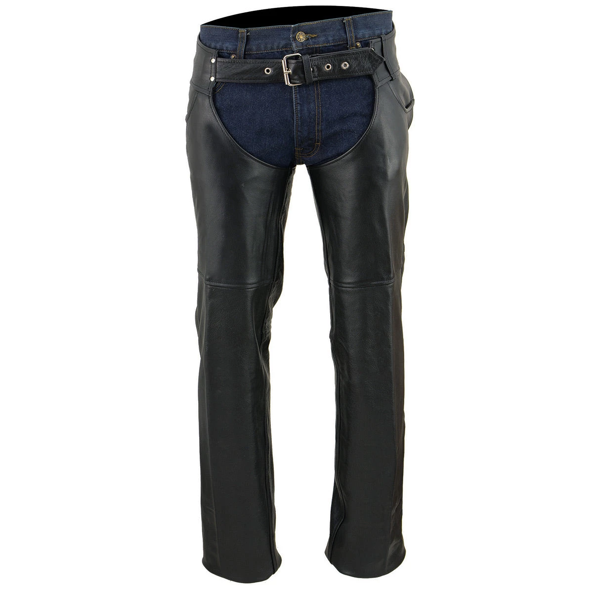Milwaukee Leather SH1101TALL Men’s Classic Black Tall Sizes Leather Chaps with Jean Pockets