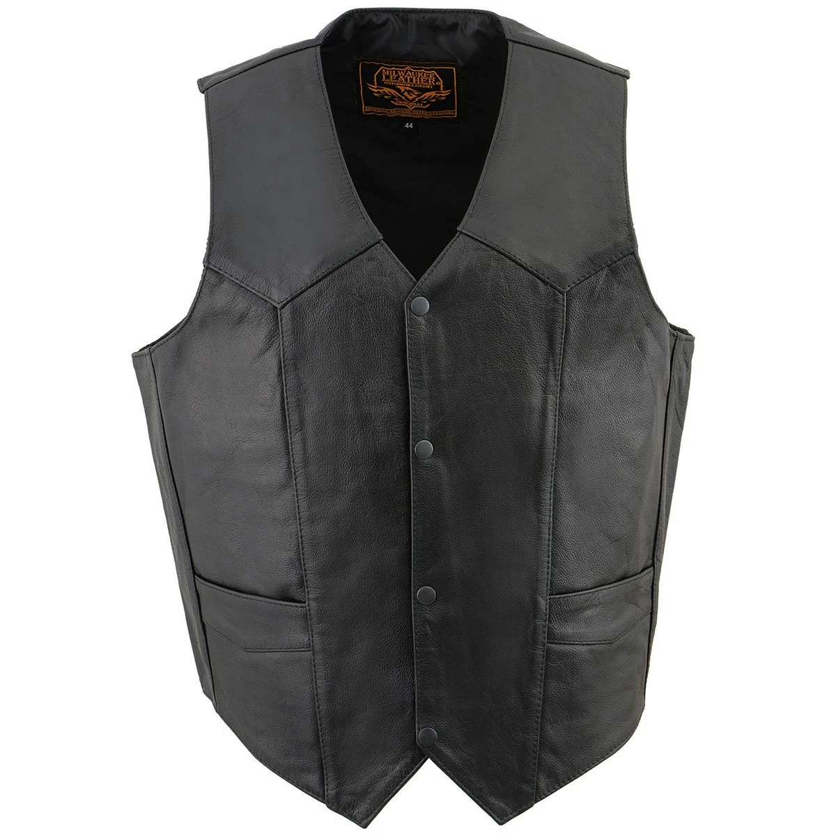 Milwaukee Leather SH1310 Men’s Classic Black Leather Vest with Snap Button Closure
