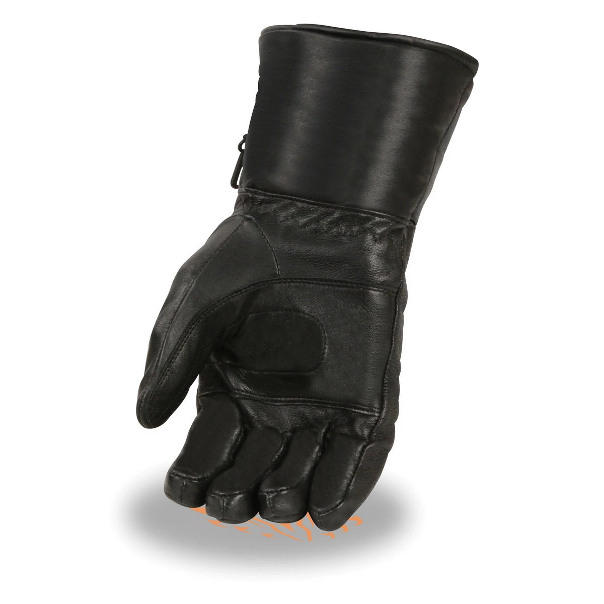 Milwaukee Leather SH232 Men’s ‘Suede Palm’ Black Leather Gauntlet Gloves with Rain Mitton