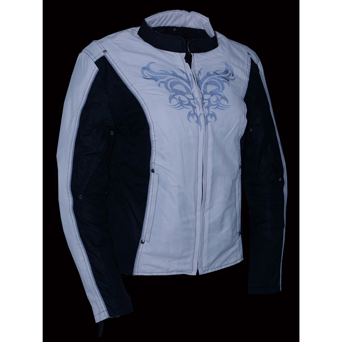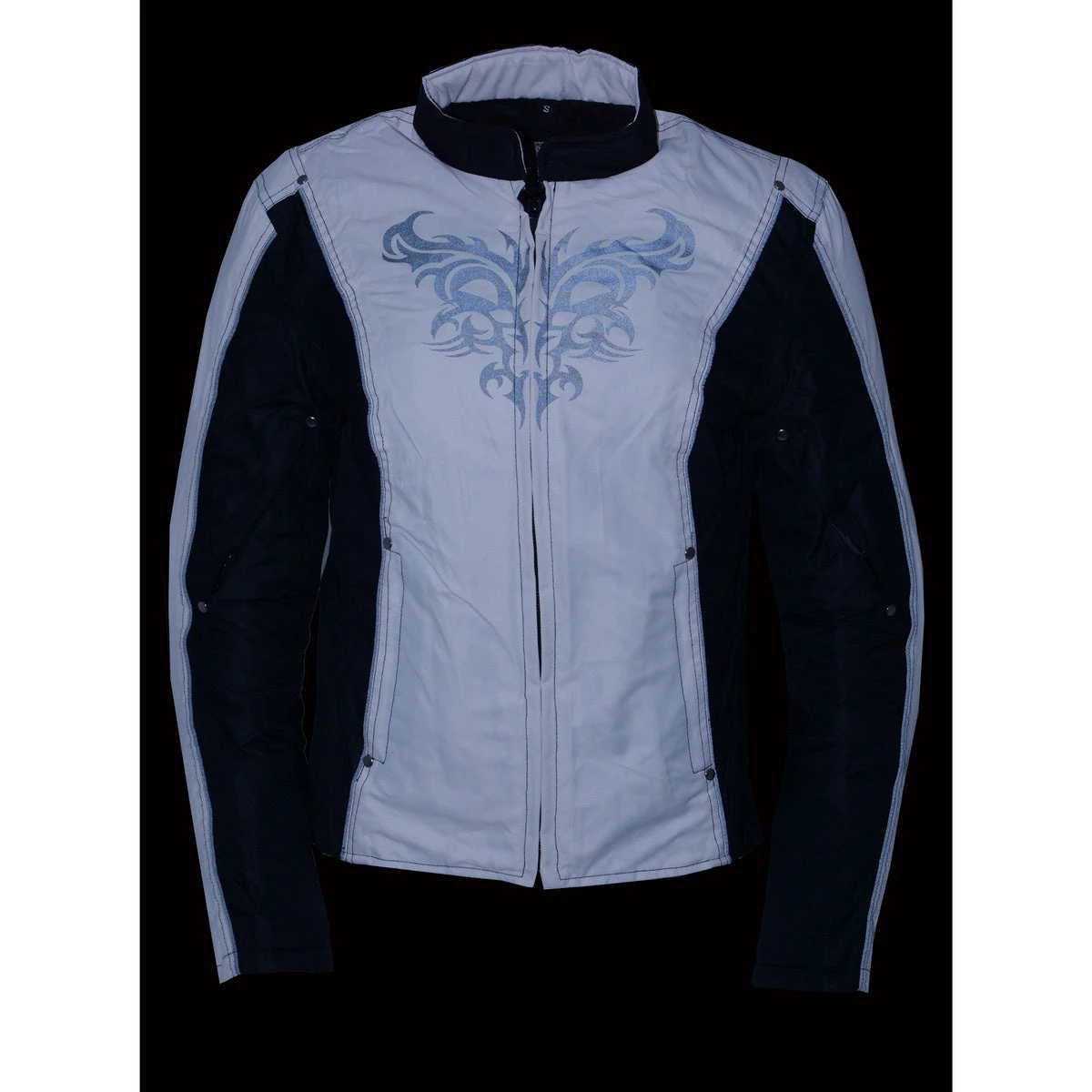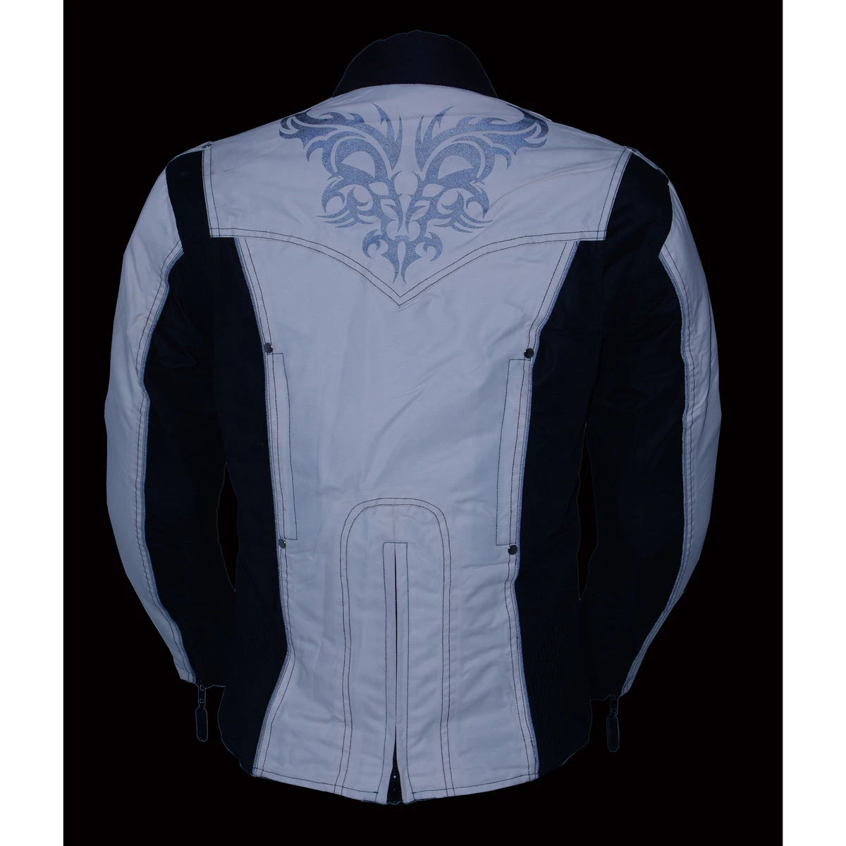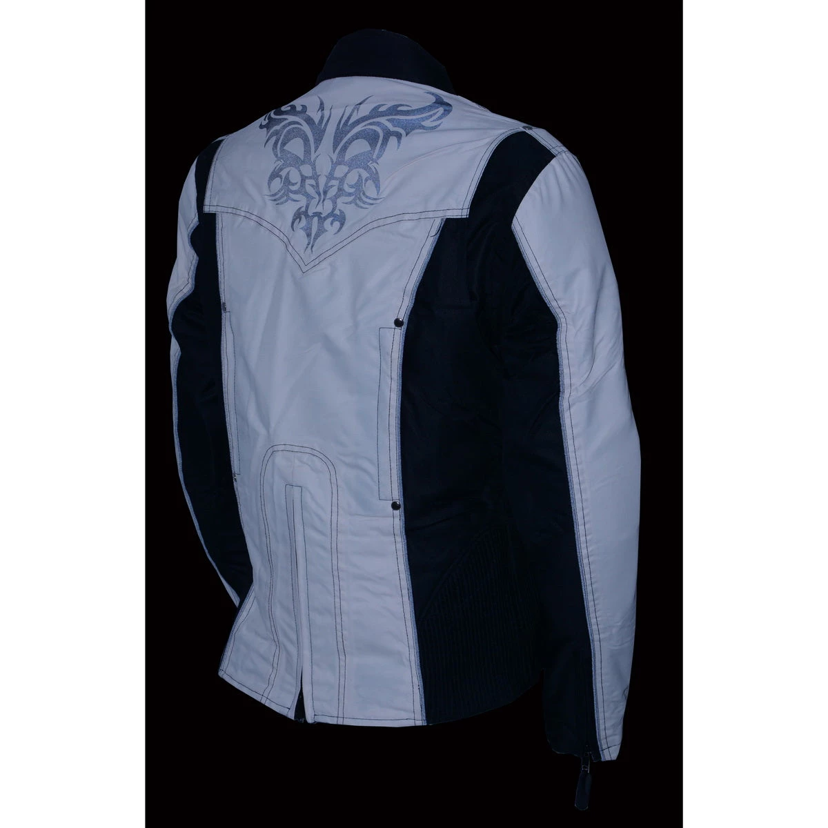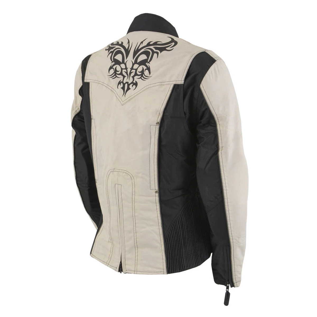 Milwaukee Leather SH2366 Ladies Black and Cream Armored Textile Jacket with Reflective Tribal Design