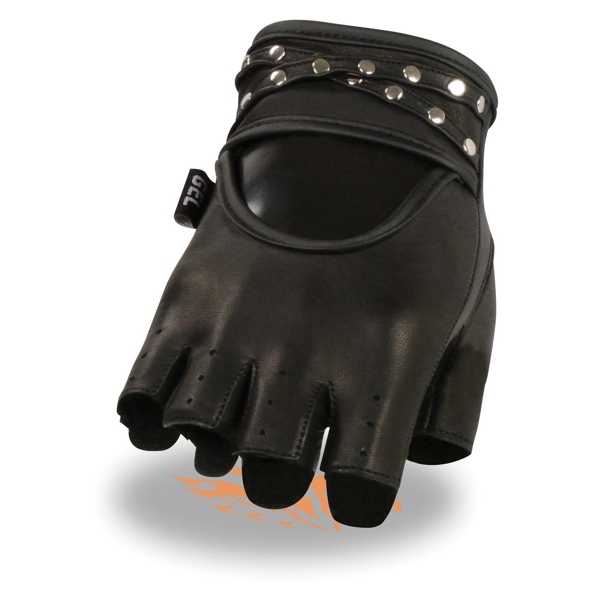 Milwaukee Leather SH461 Ladies Black Leather Fingerless Gloves with Gel Palm and Studs