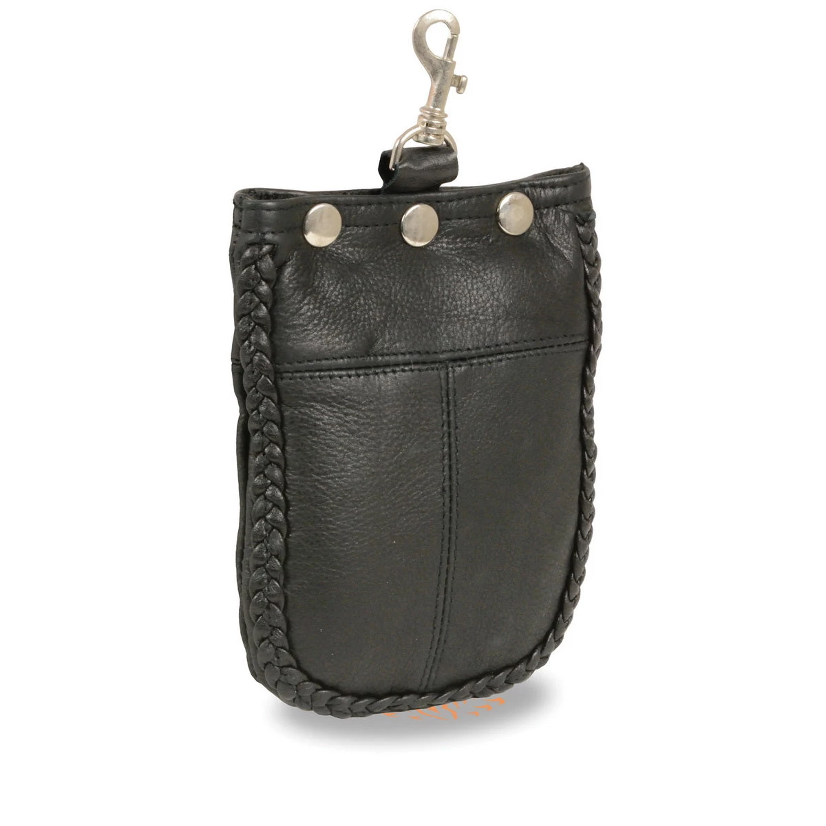 Milwaukee Leather SH509B Black Leather ‘Braided’ Belt Bag with Belt Clasp