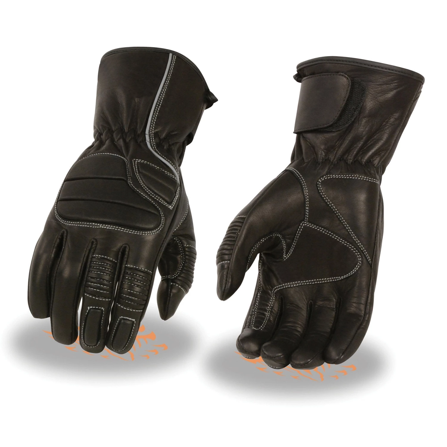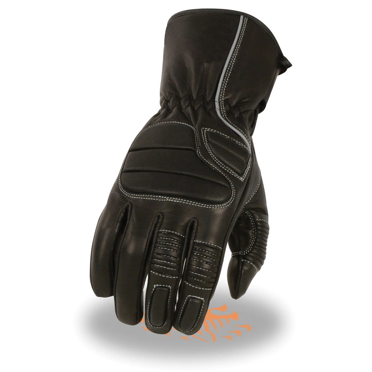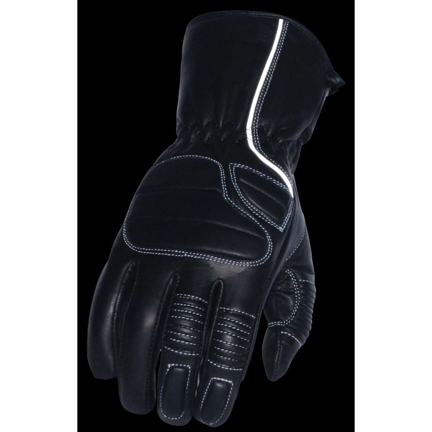 Milwaukee Leather SH607 Men’s Black Leather Thermal Lined Padded Back Racing Gloves with Reflective Piping