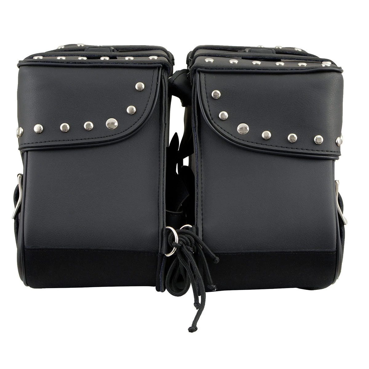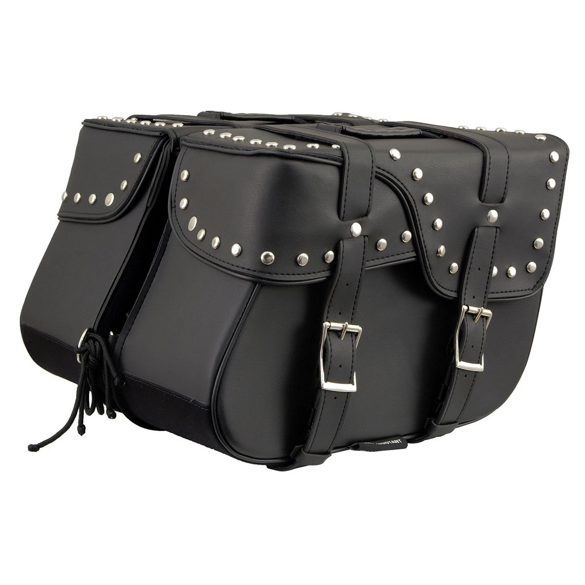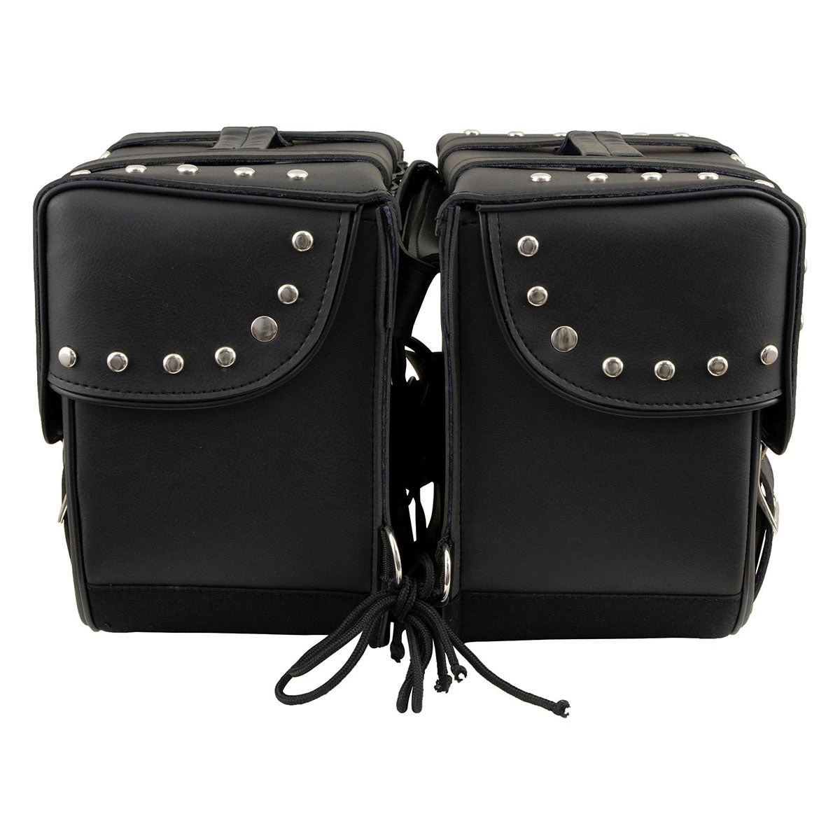 Milwaukee Leather SH645ZB Black 2-Strap PVC Zip Off Throw Over Motorcycle Saddlebags with Chrome Studs