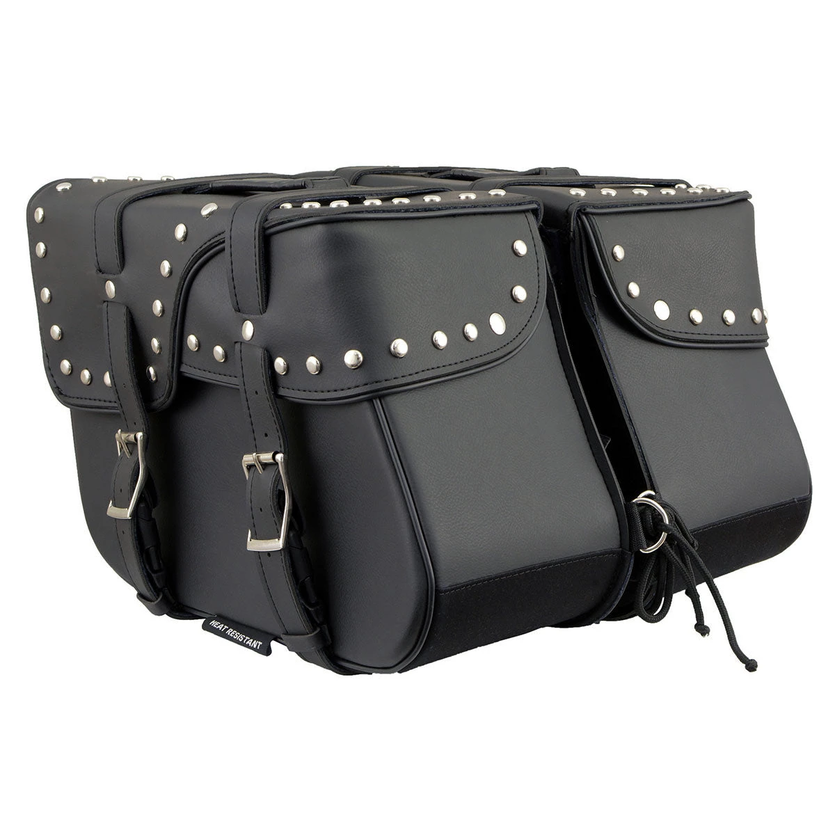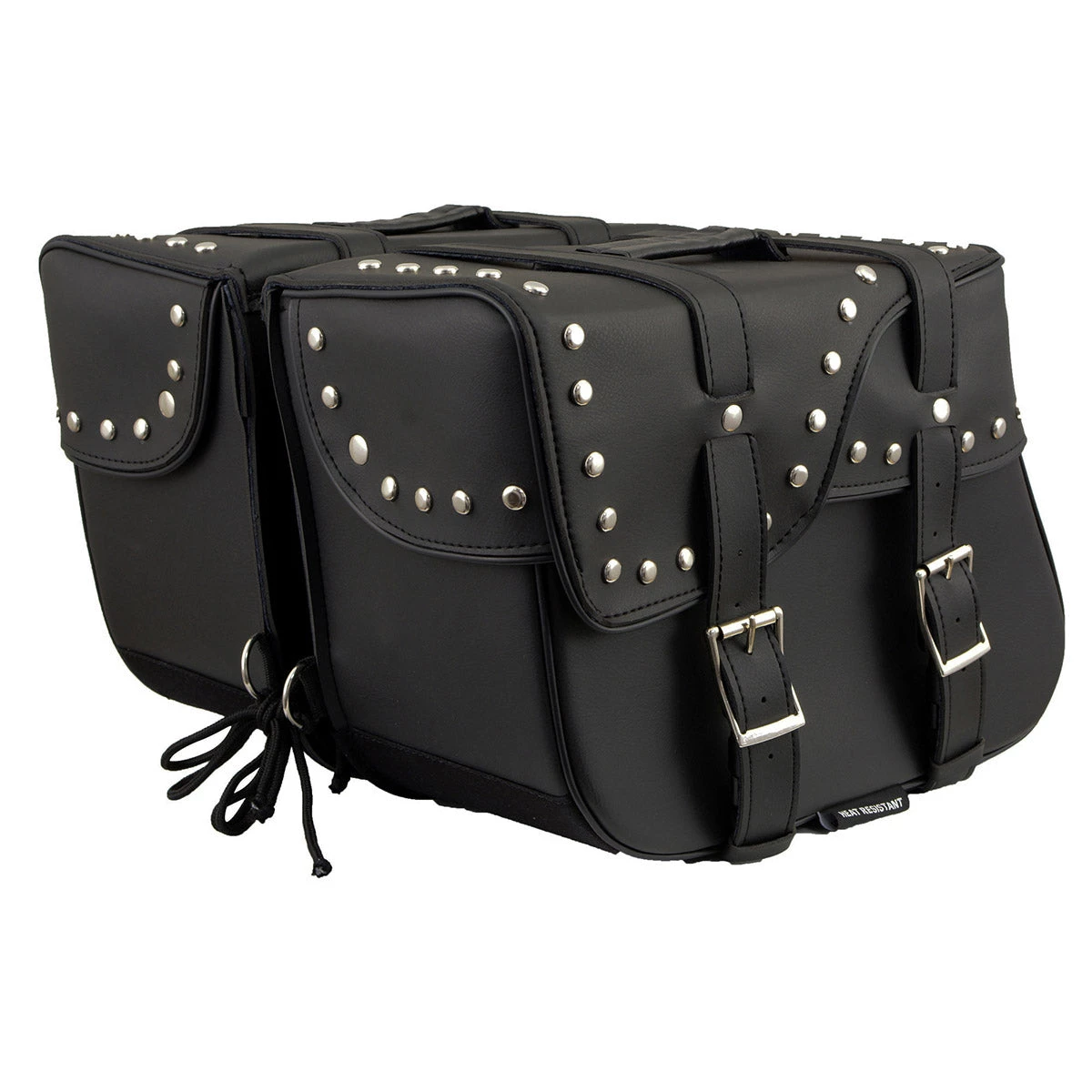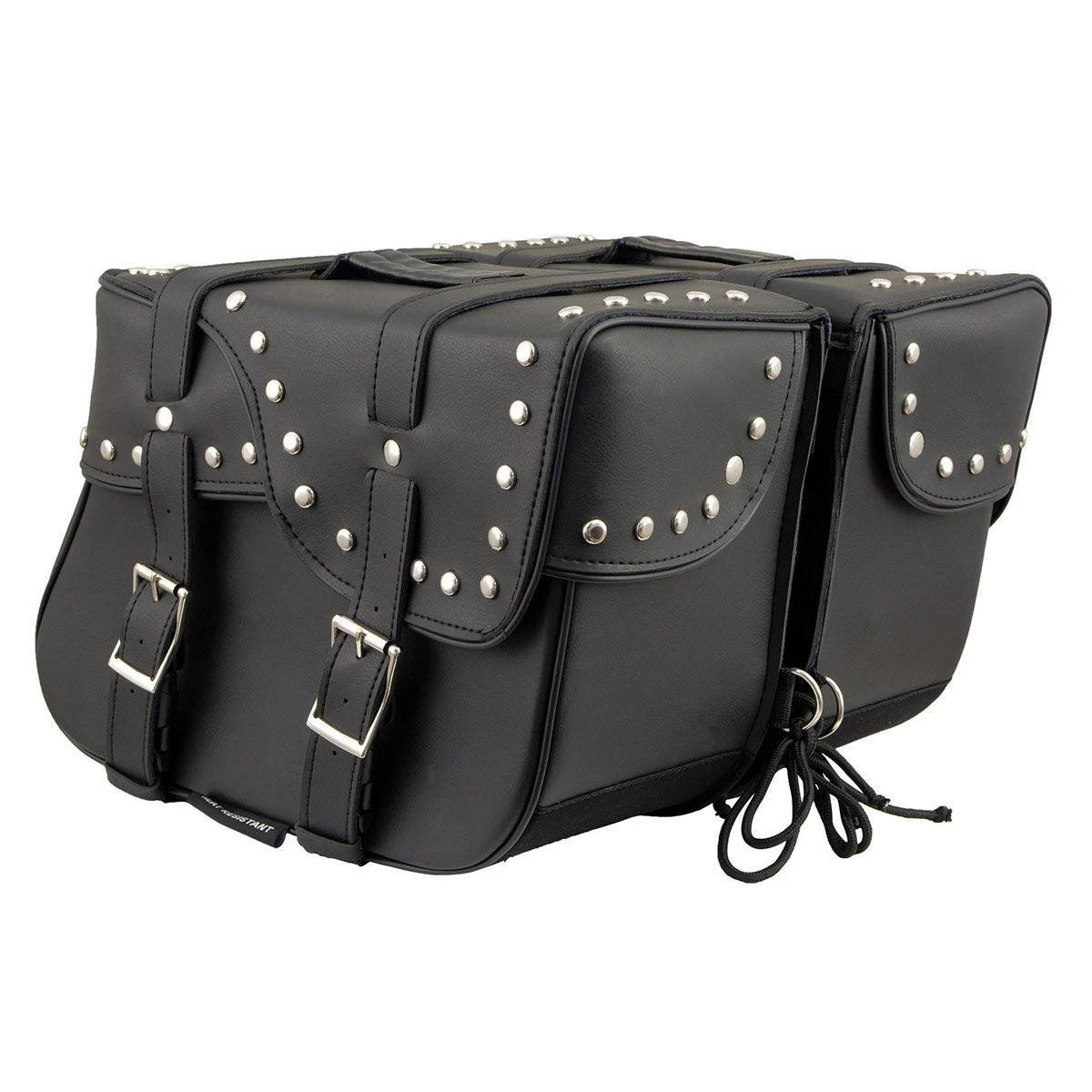 Milwaukee Leather SH645ZB Black 2-Strap PVC Zip Off Throw Over Motorcycle Saddlebags with Chrome Studs