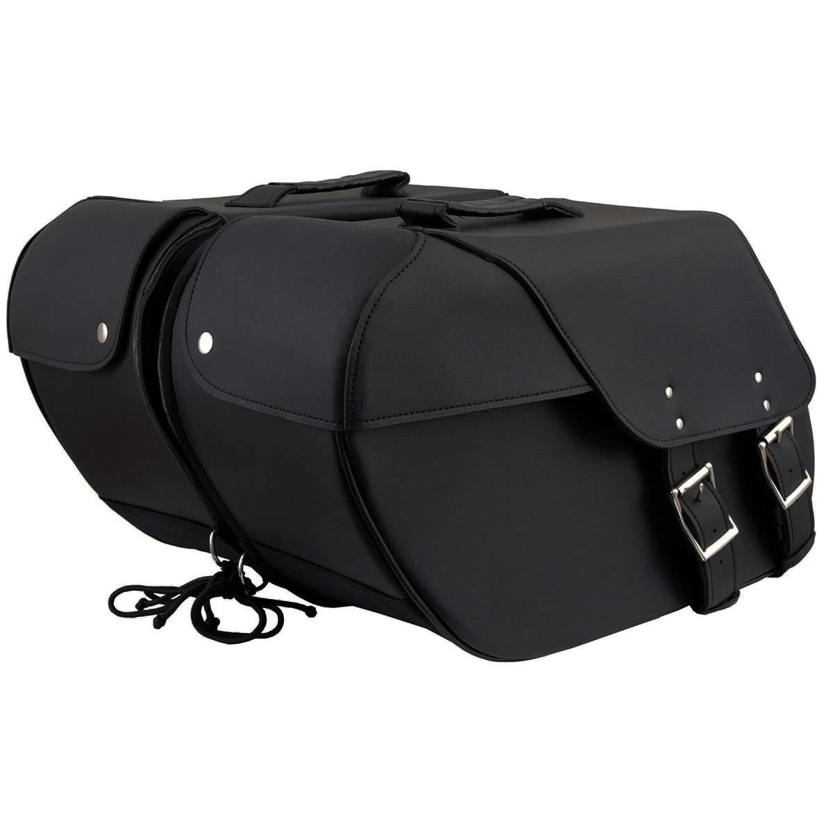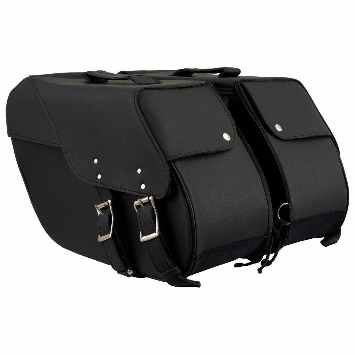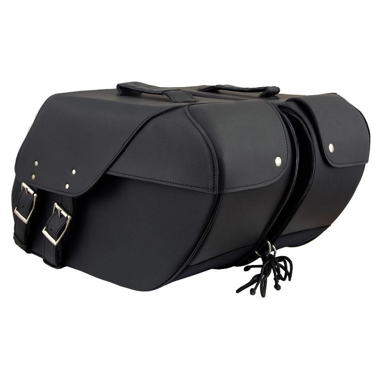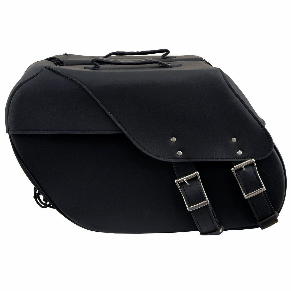 Milwaukee Leather SH669ZB Large Size Black Two Straps PVC Zip Off Throw Over Motorcycle Saddlebags