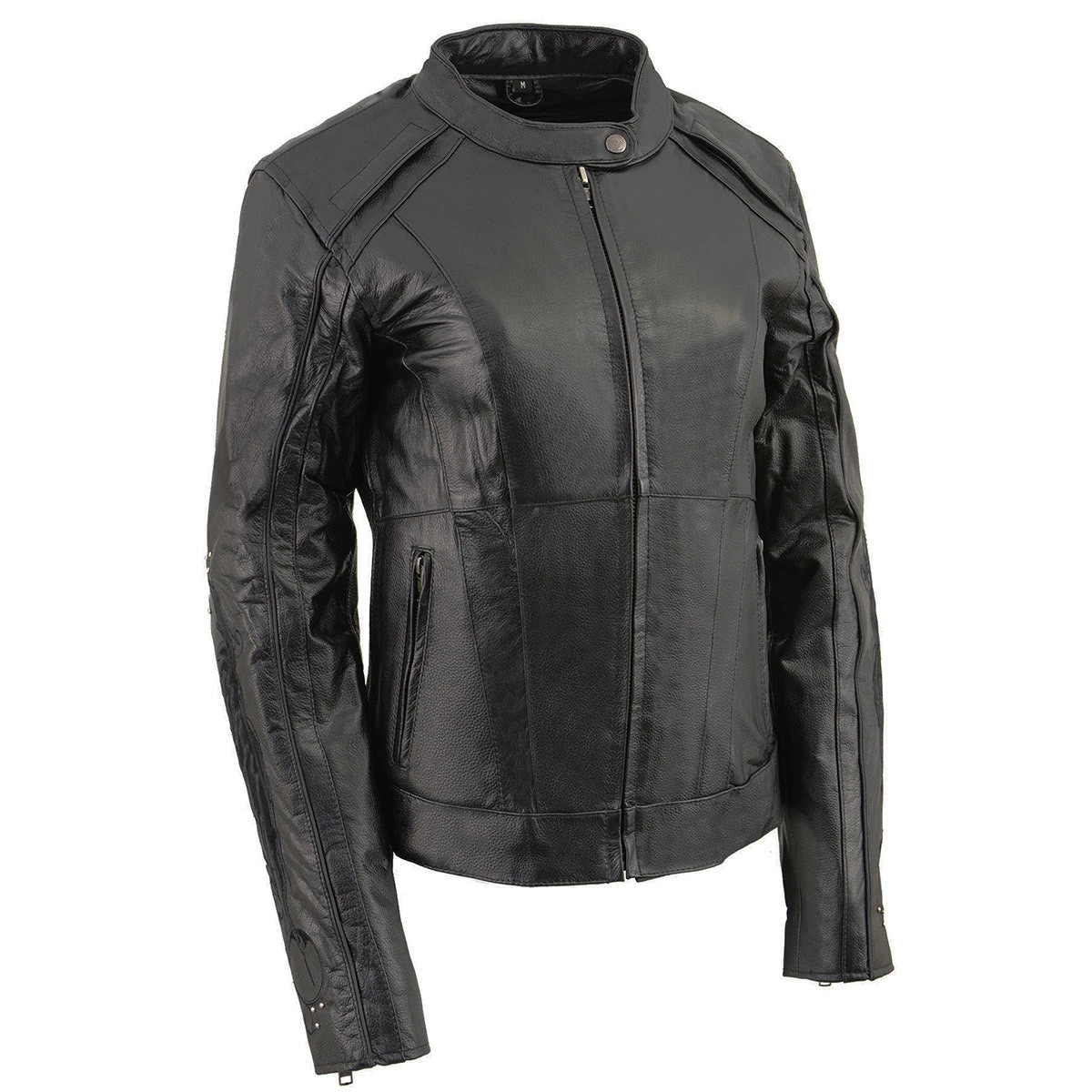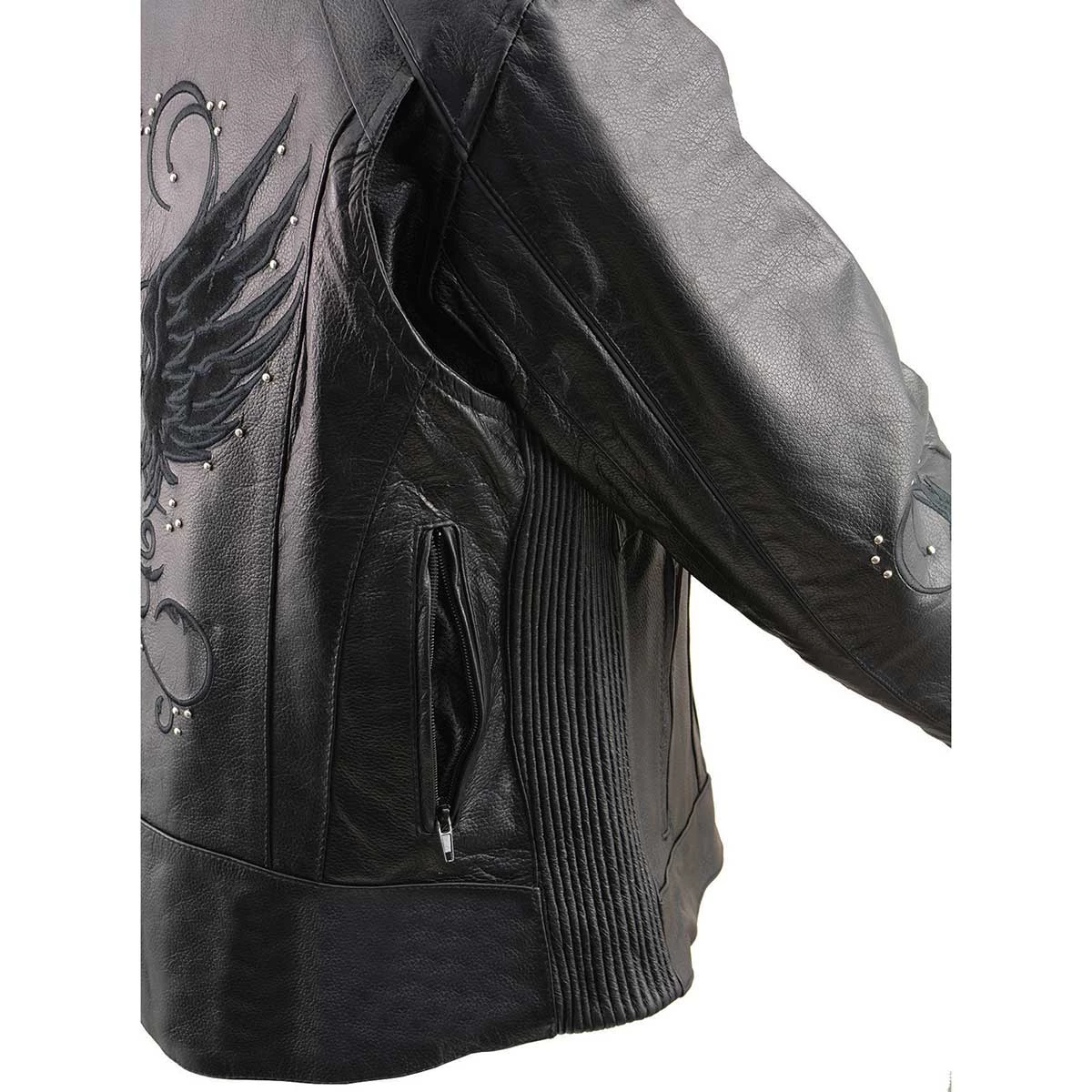 Milwaukee Leather X1952 Ladies Embroidered Wing and Stud Design Black Leather Scooter Jacket