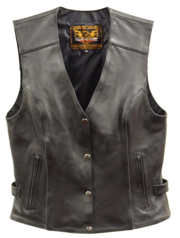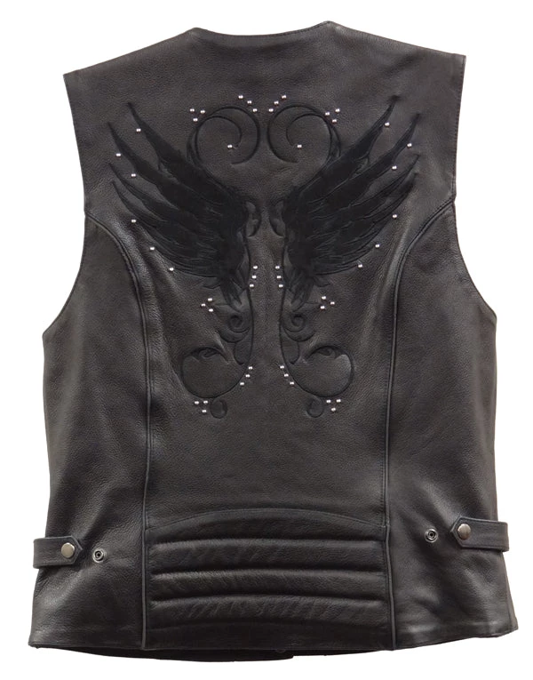 Milwaukee Leather XS1293 Ladies ‘Winged’ Solid Black Studded Leather Vest