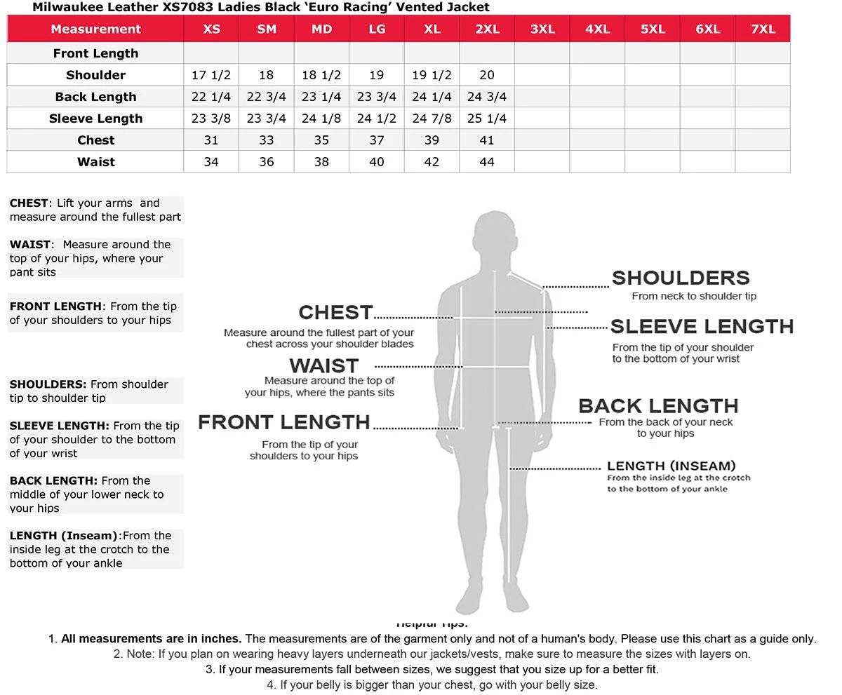 Milwaukee Leather XS7083 Ladies Black ‘Euro Racing’ Vented Jacket with Side Stretch