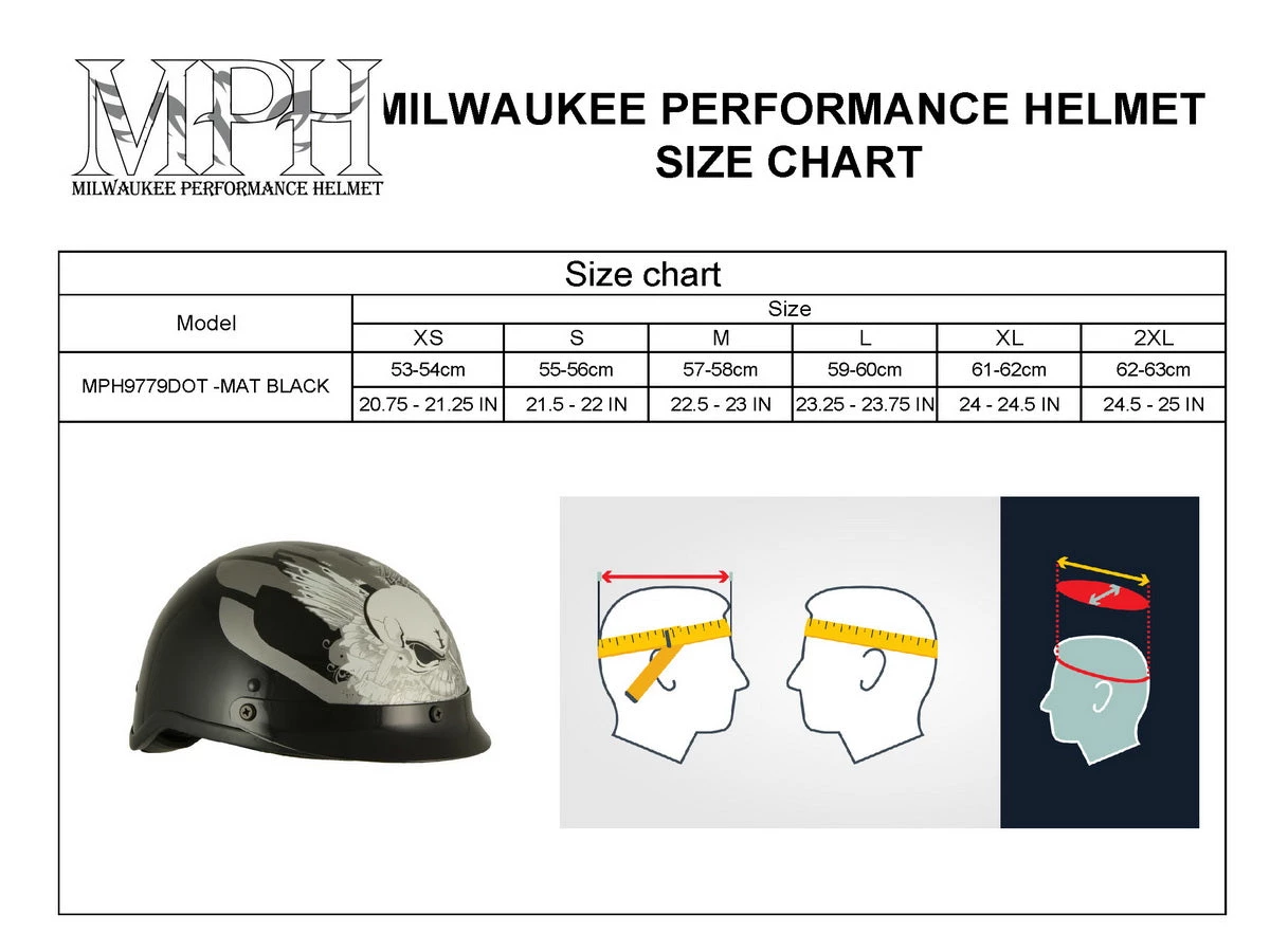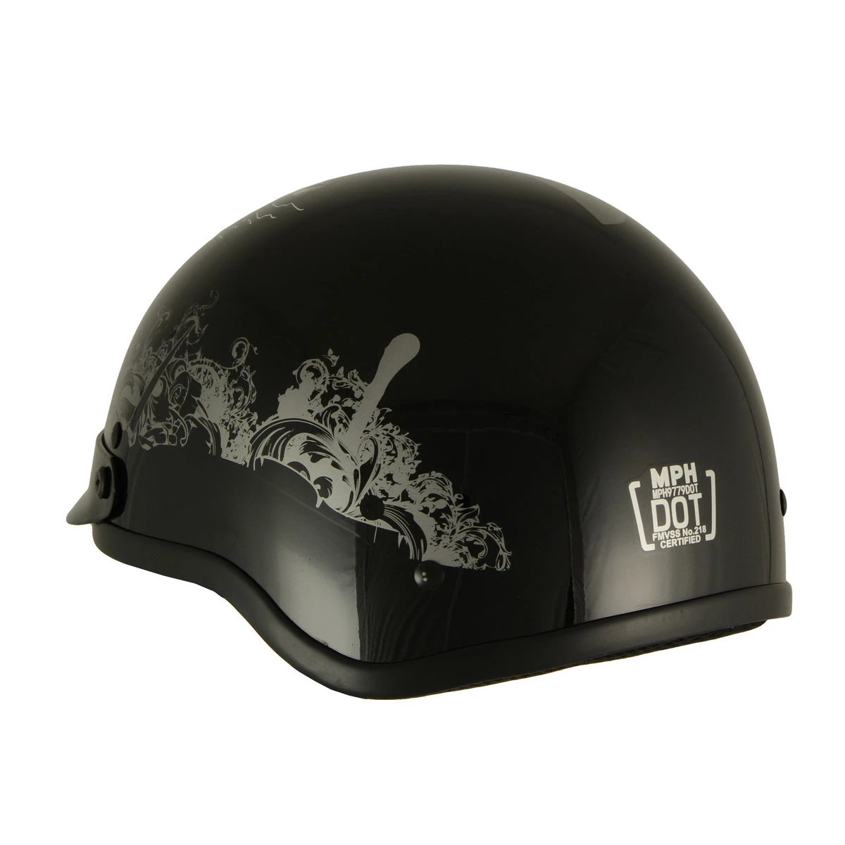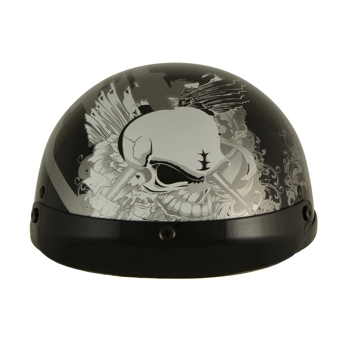 Milwaukee Helmets MPH9779 Black ‘Silver Skull’ DOT Half Helmet