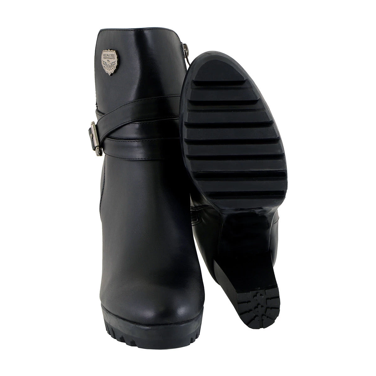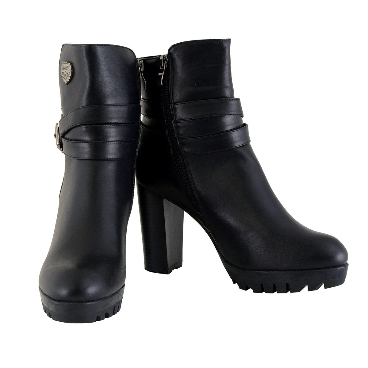 Milwaukee Performance MBL9435 Women’s Black Double Strap Side Zipper Boots with Platform Heel