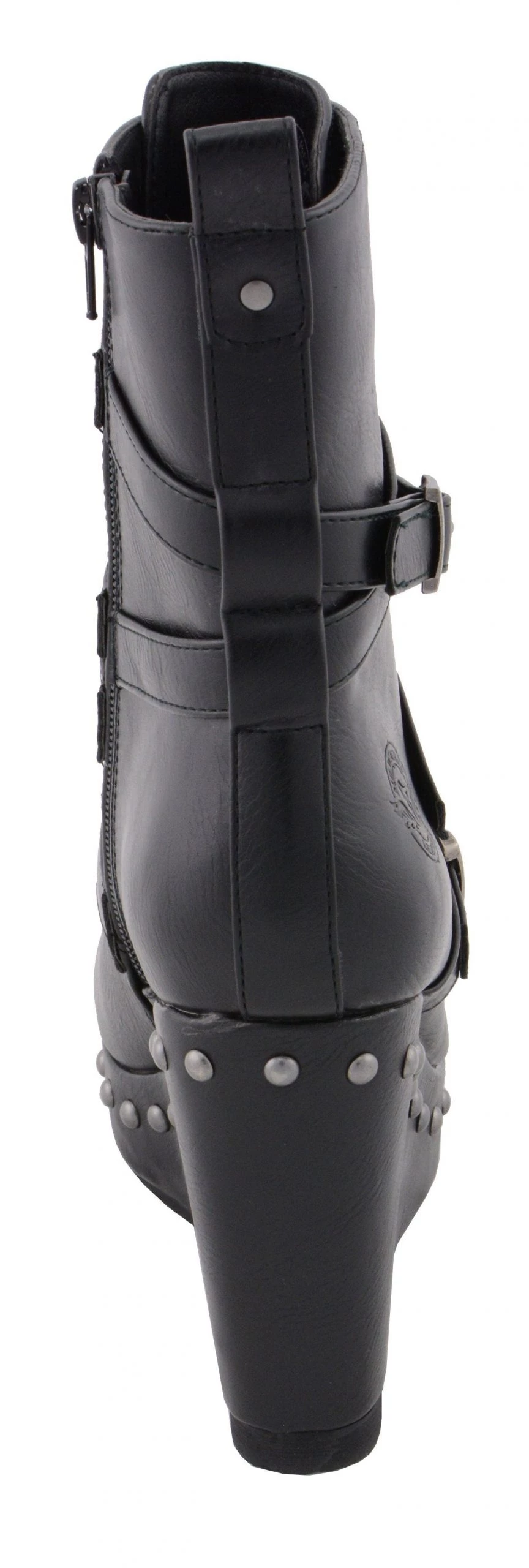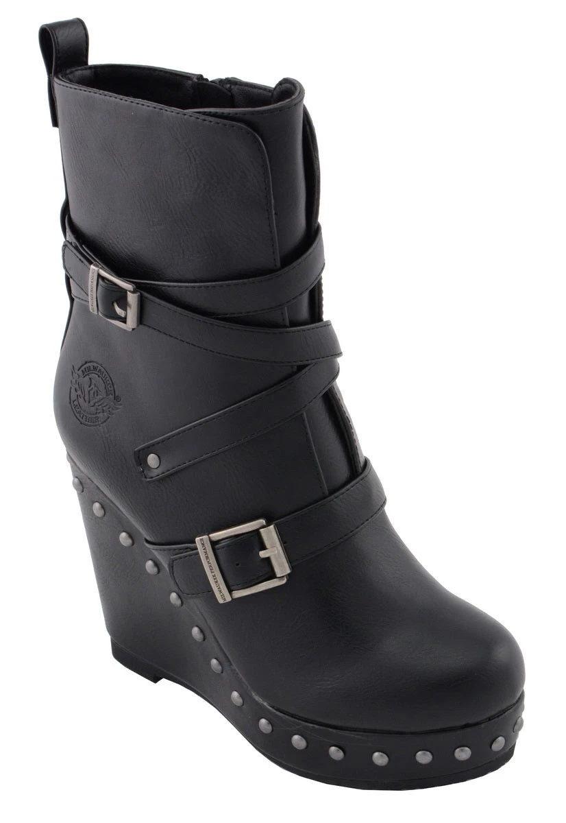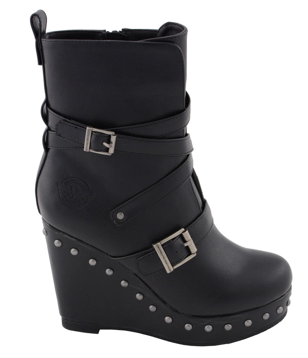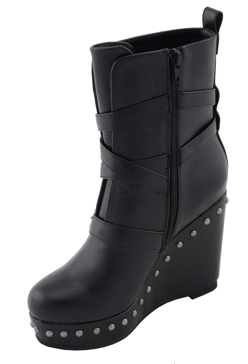 Milwaukee Leather MBL9437 Women’s Black Triple Strap Boot with Platform Wedge