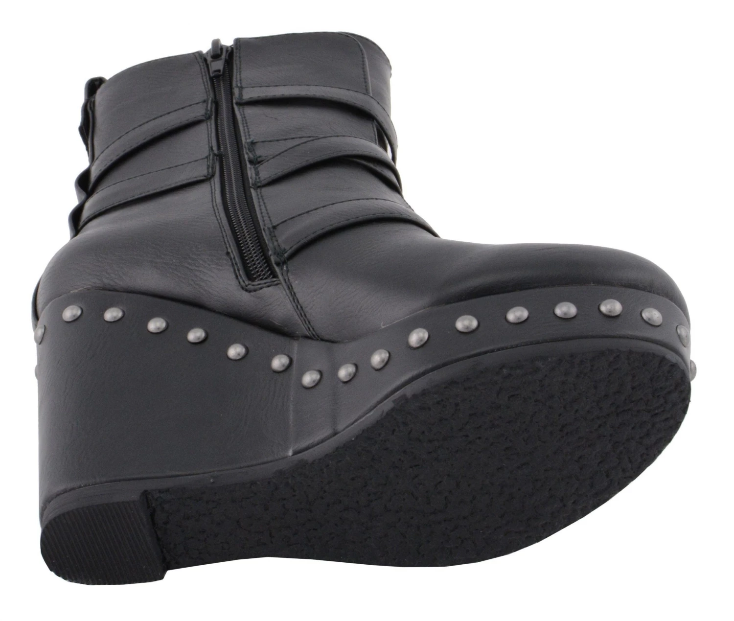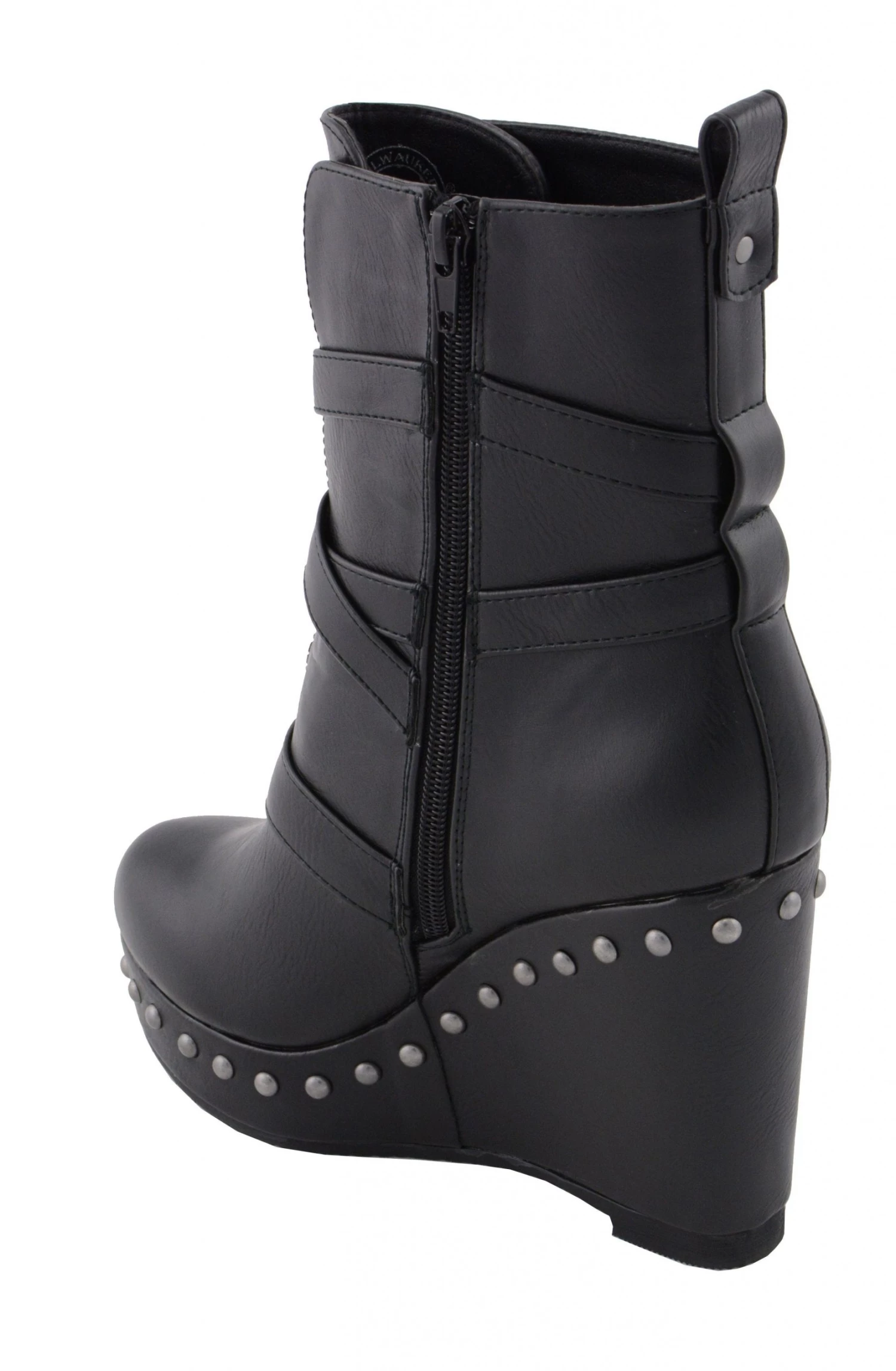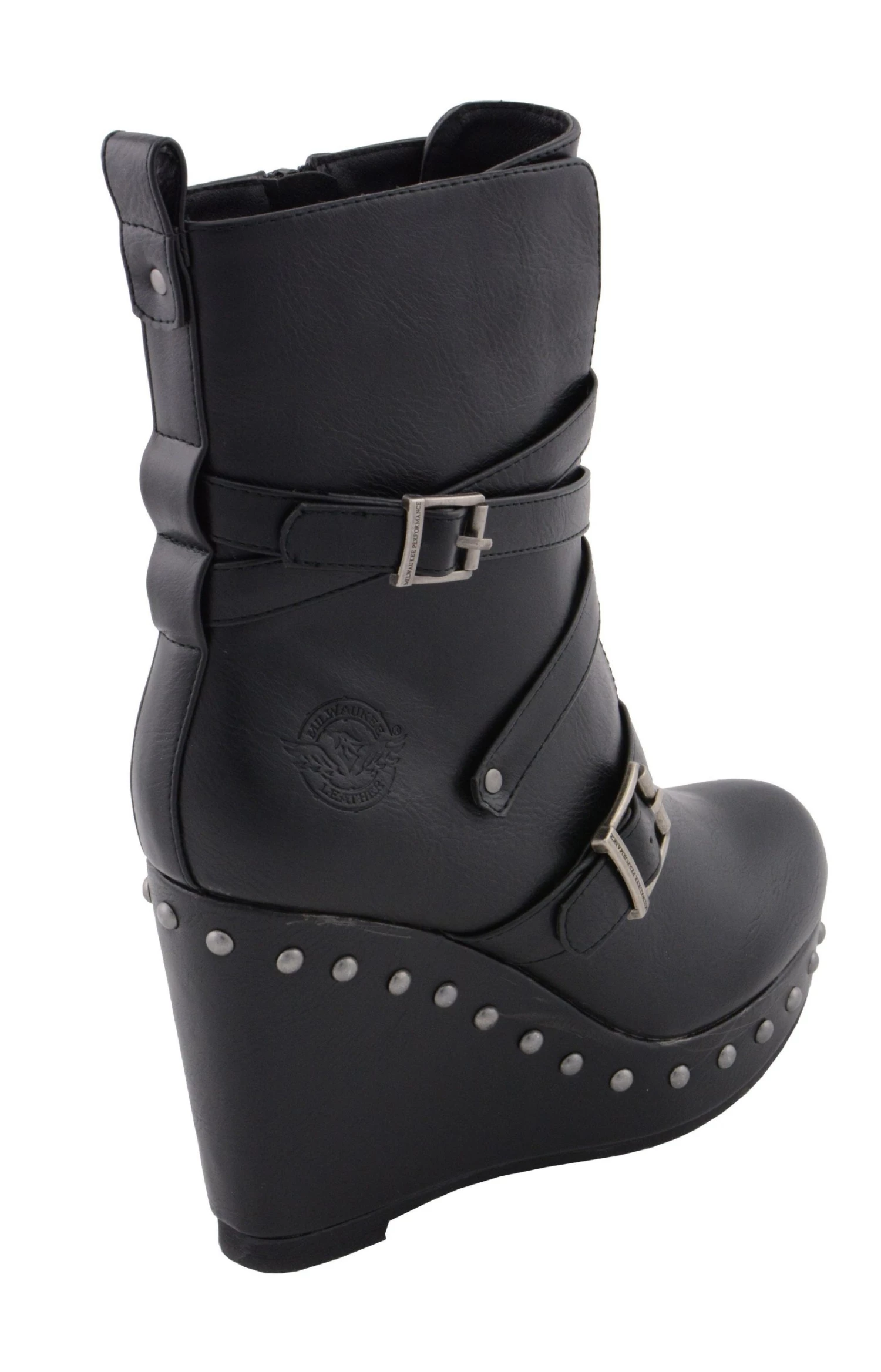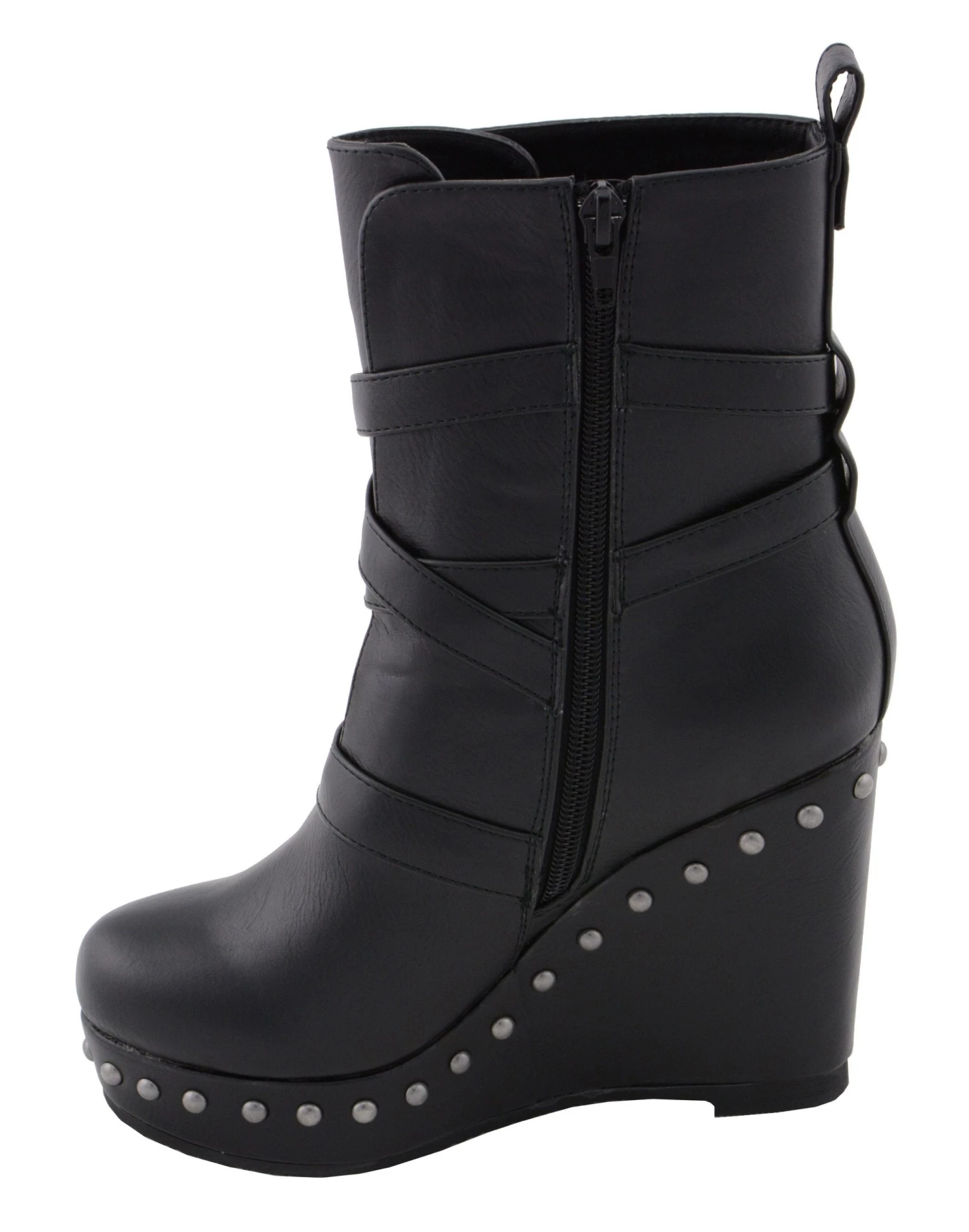 Milwaukee Leather MBL9437 Women’s Black Triple Strap Boot with Platform Wedge