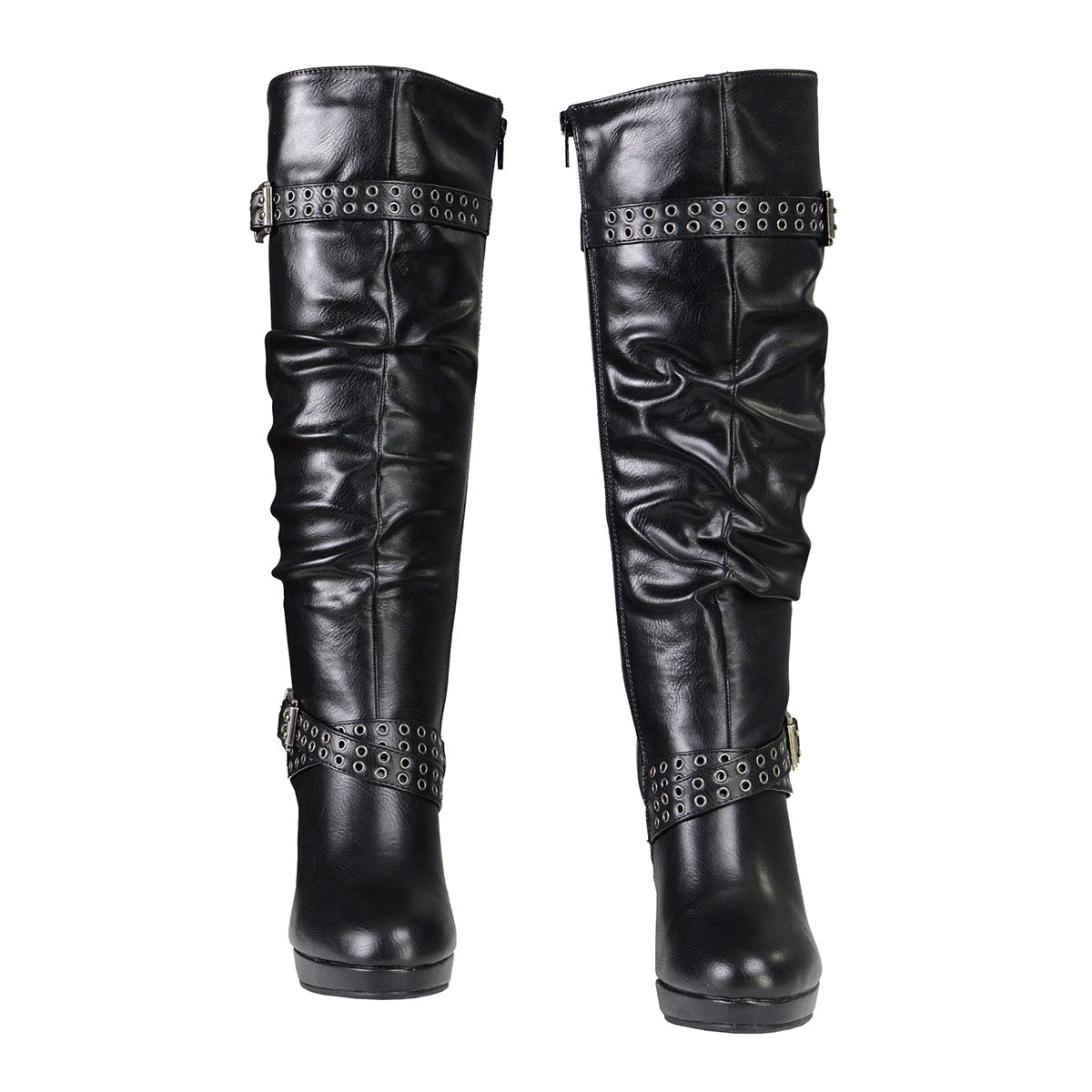 Milwaukee Leather MBL9419 Ladies Tall Black Platform Boots with Slouch Shaft