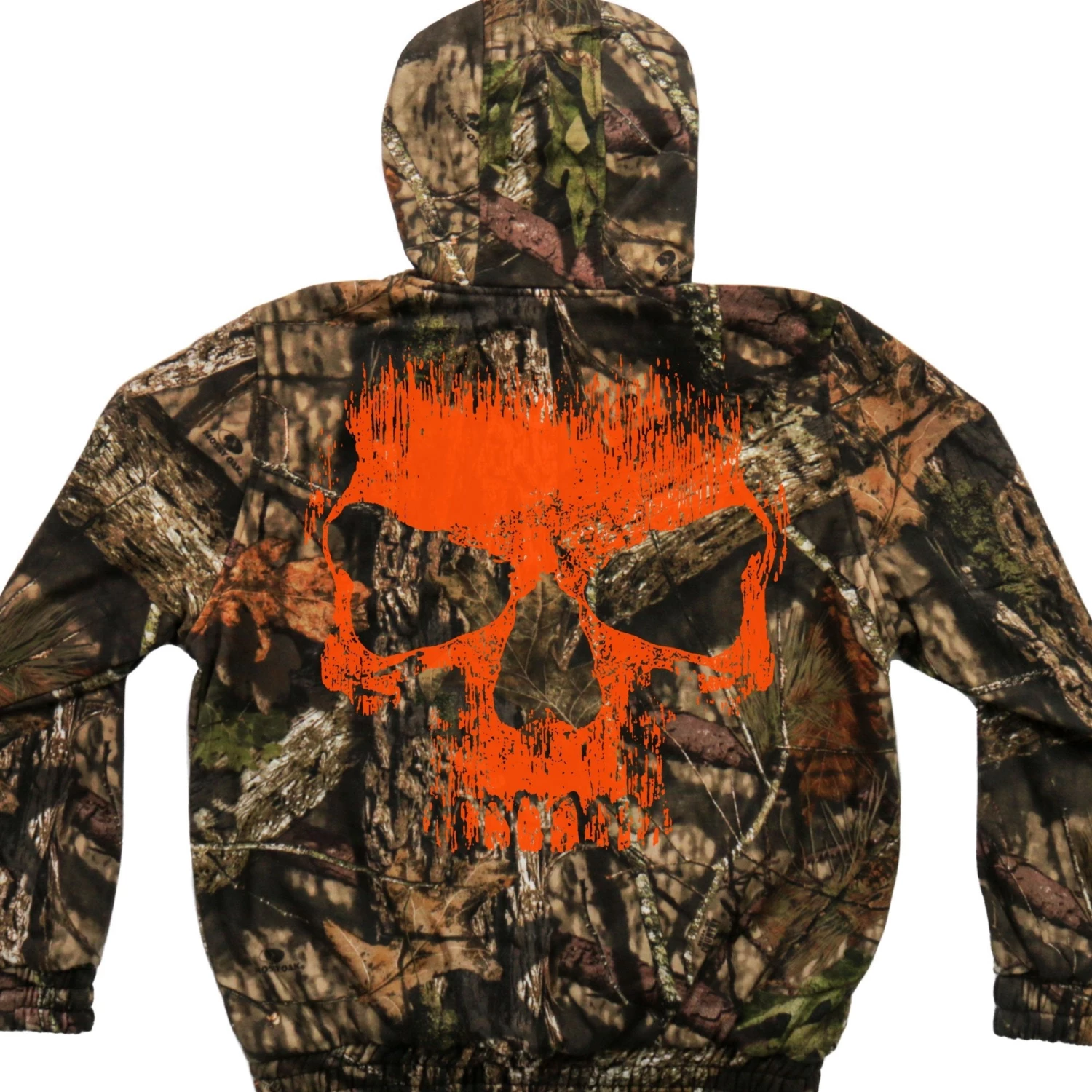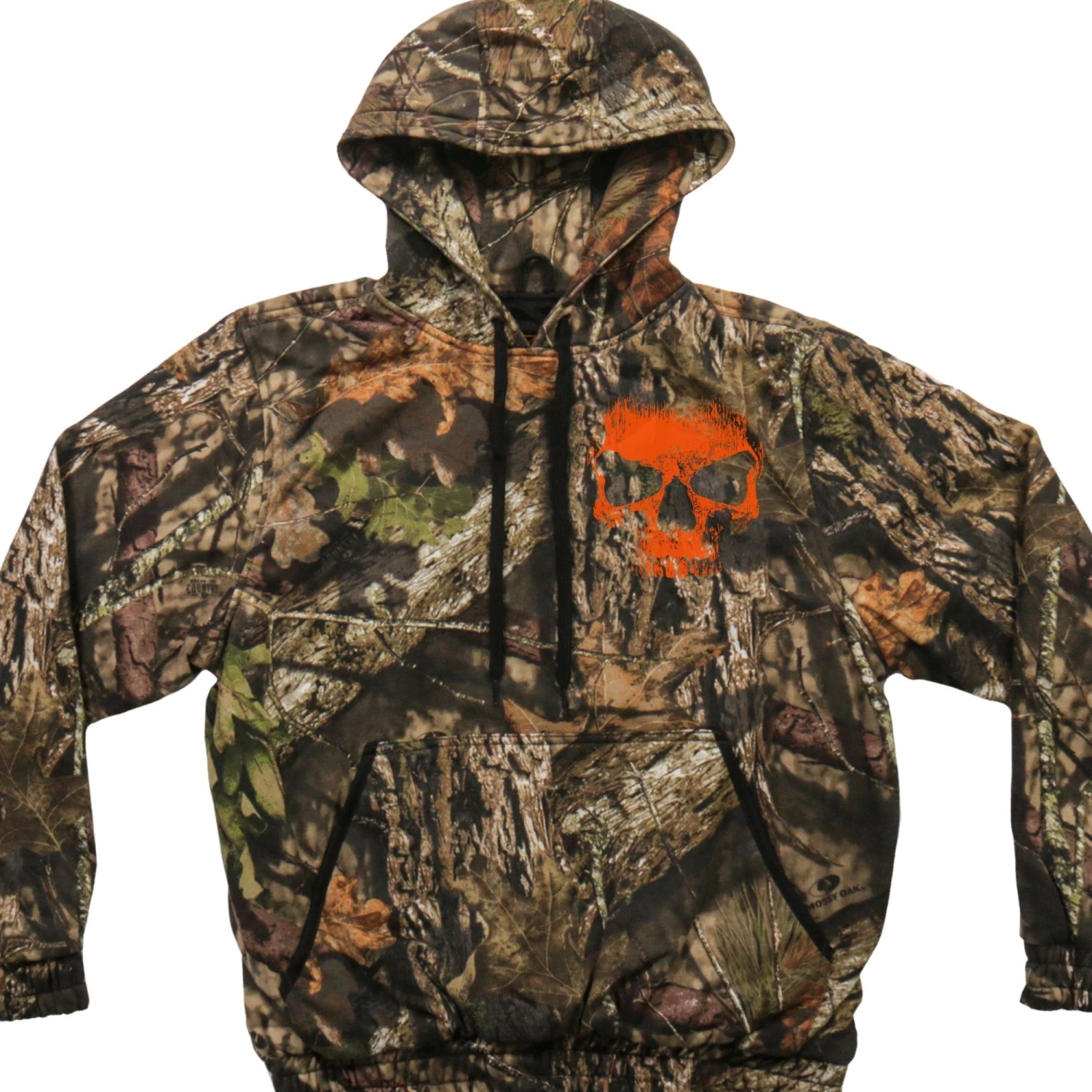 Hot Leathers skull, screen printed on a heavy duty, Mossy Oak Jungle Camo pullover hooded sweatshirt. This sweatshirt is fully lined and has elastic cuffs and waste for extra warmth. This is a limited edition mashup so order yours today!
