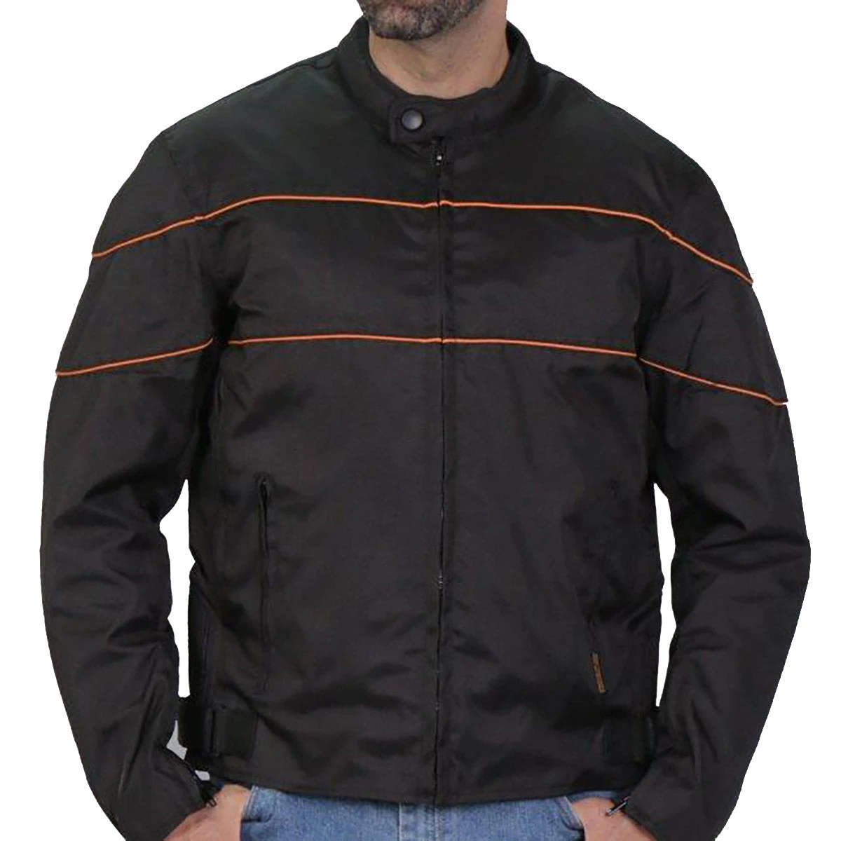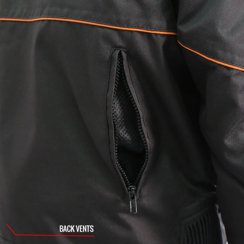 Hot Leathers JKM1026 Men’s Black Nylon Jacket with Orange Reflective Trim