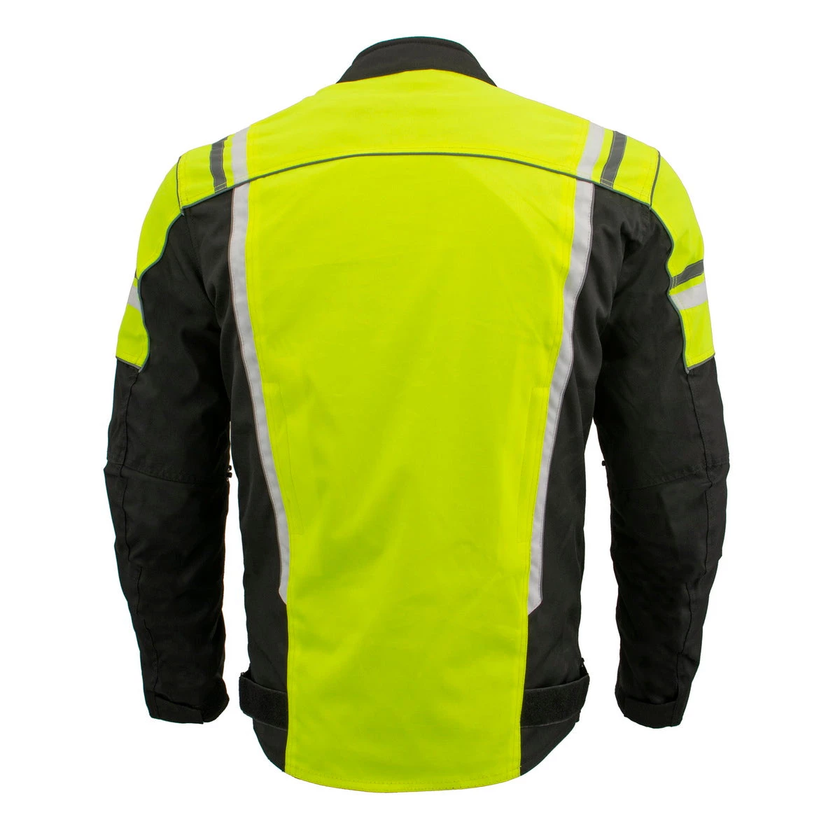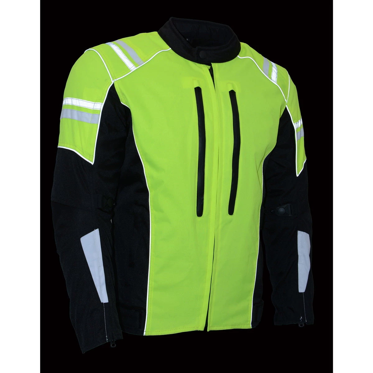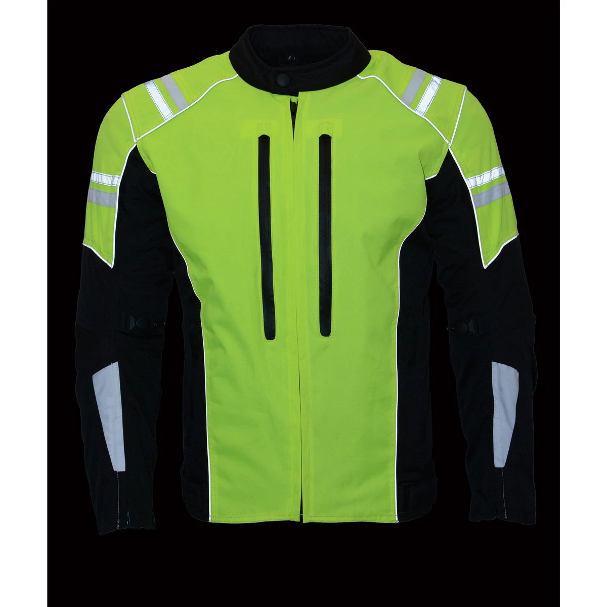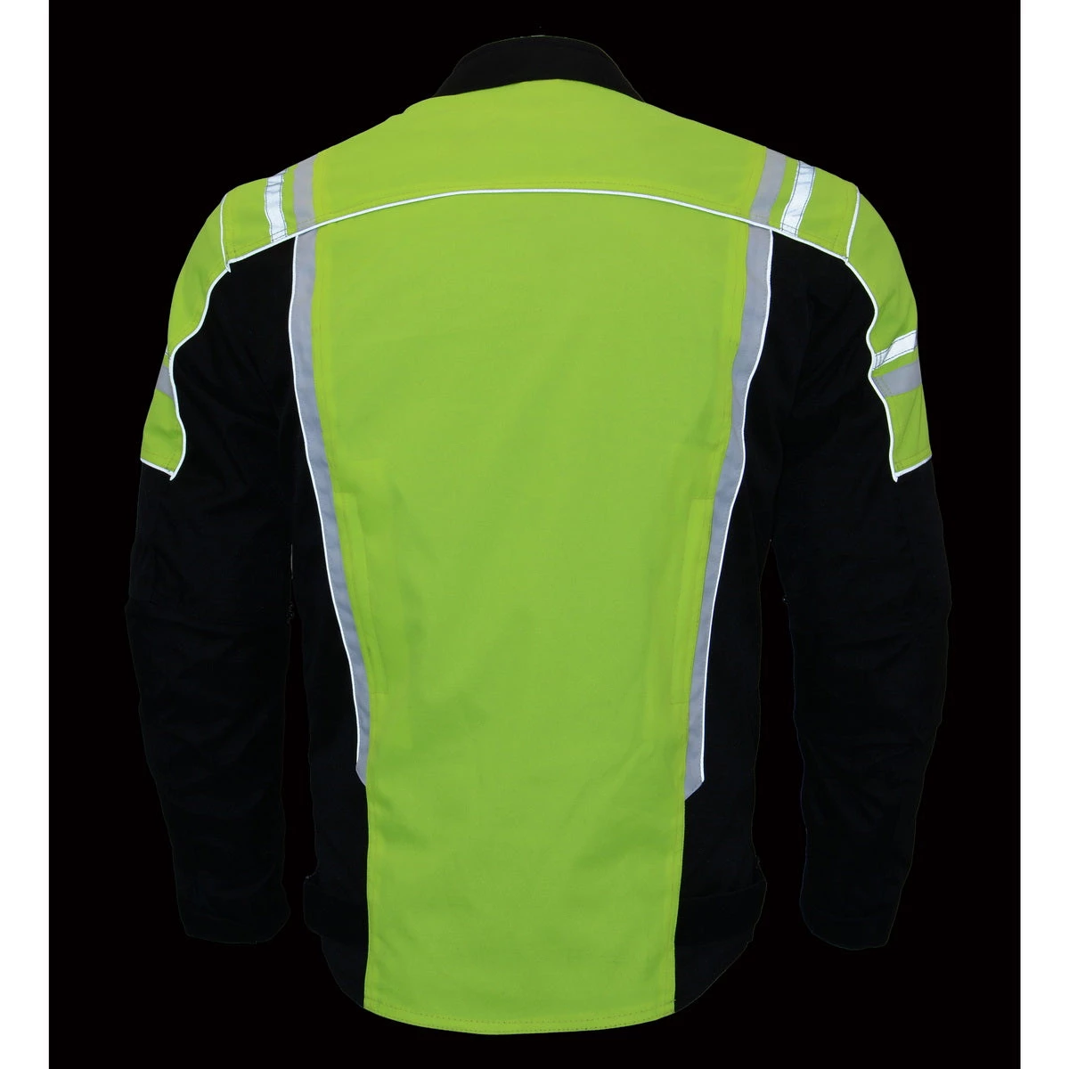 M-Boss Motorcycle Apparel BOS11707 Men’s Armored High Visibility Green Textile and Mesh Racer Jacket