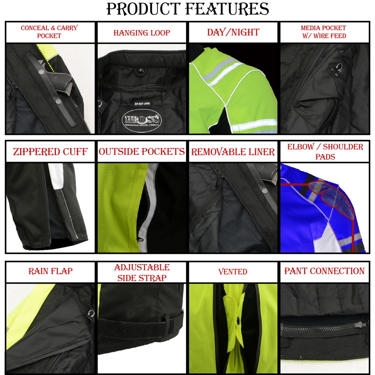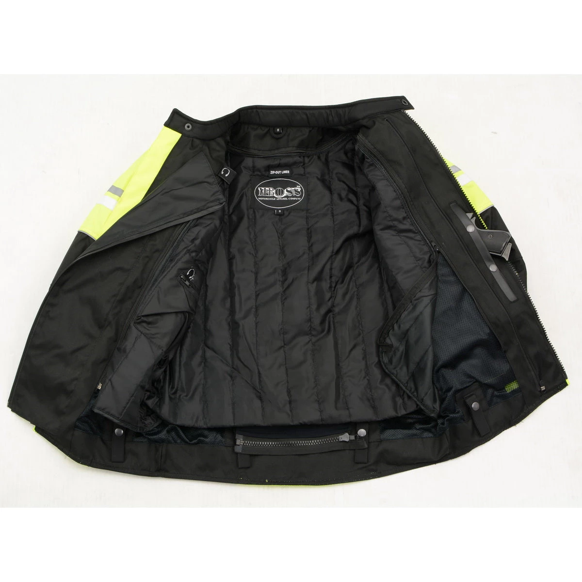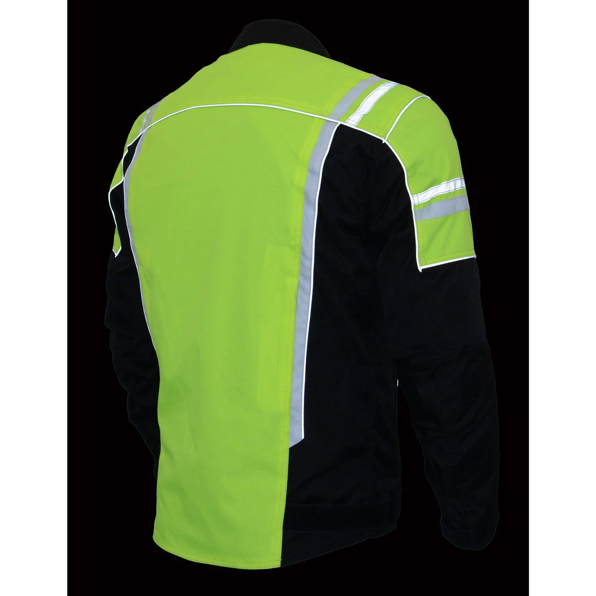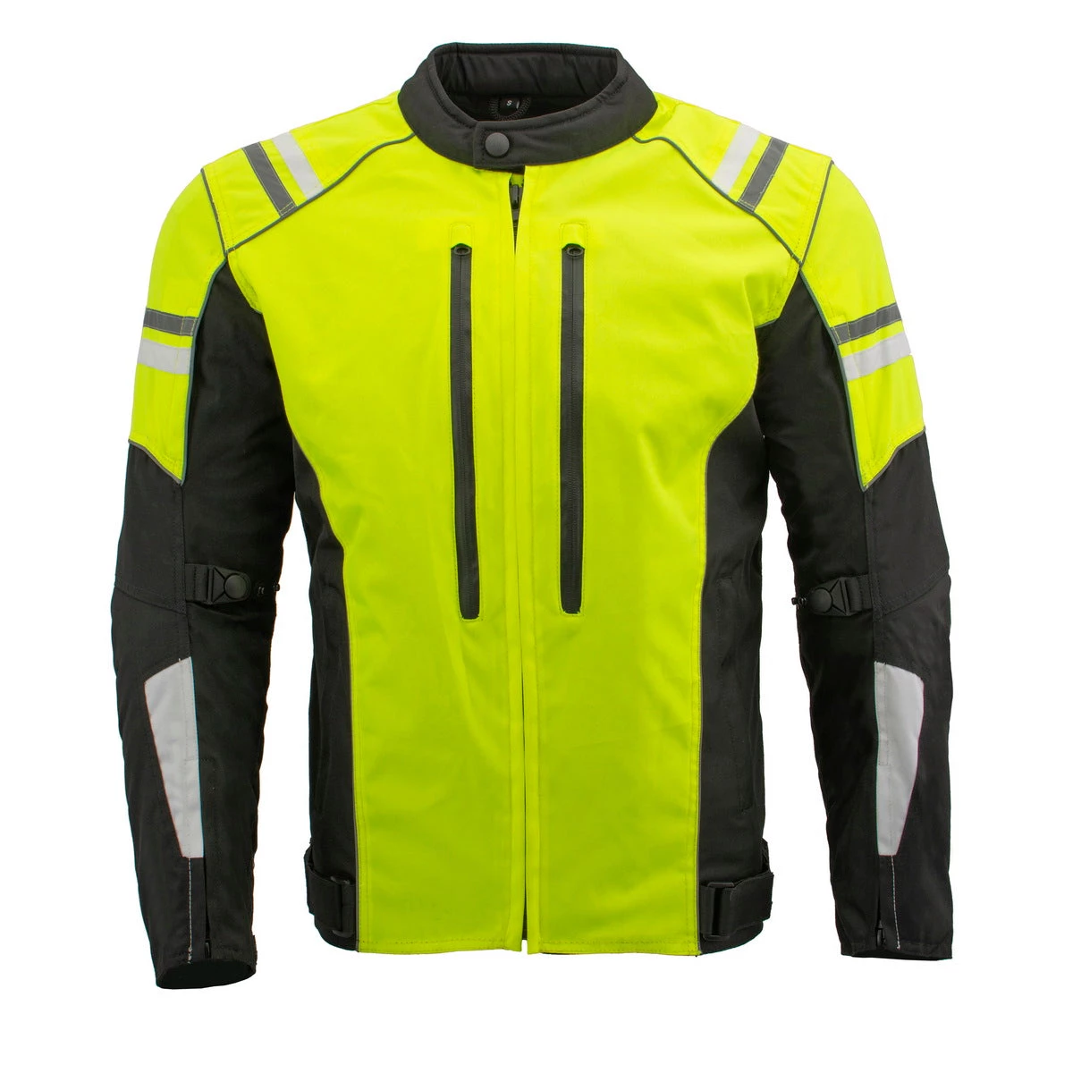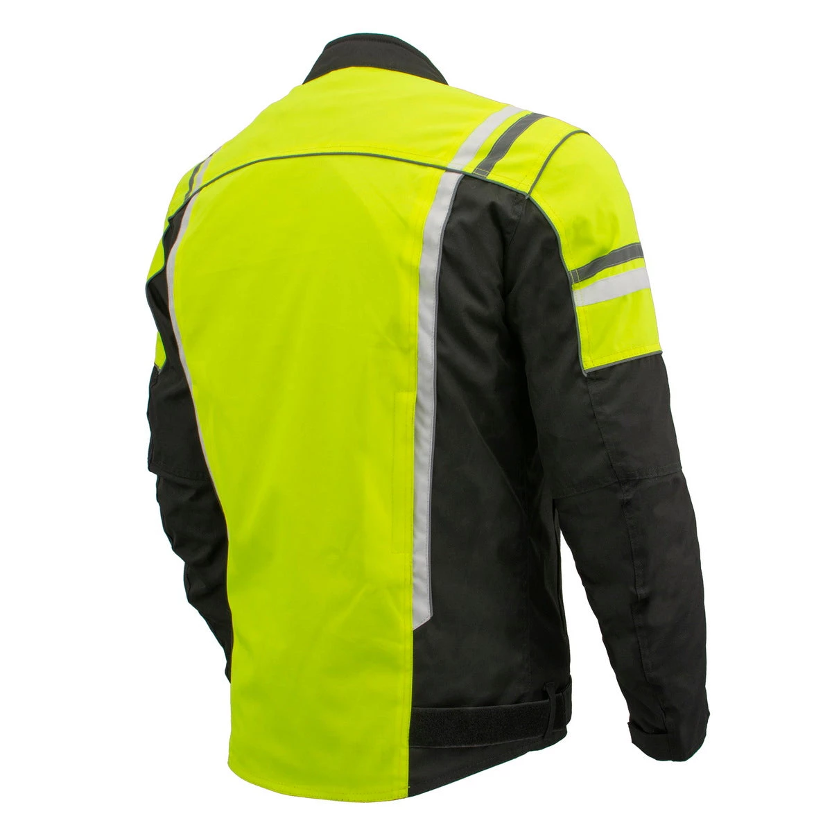 M-Boss Motorcycle Apparel BOS11707 Men’s Armored High Visibility Green Textile and Mesh Racer Jacket