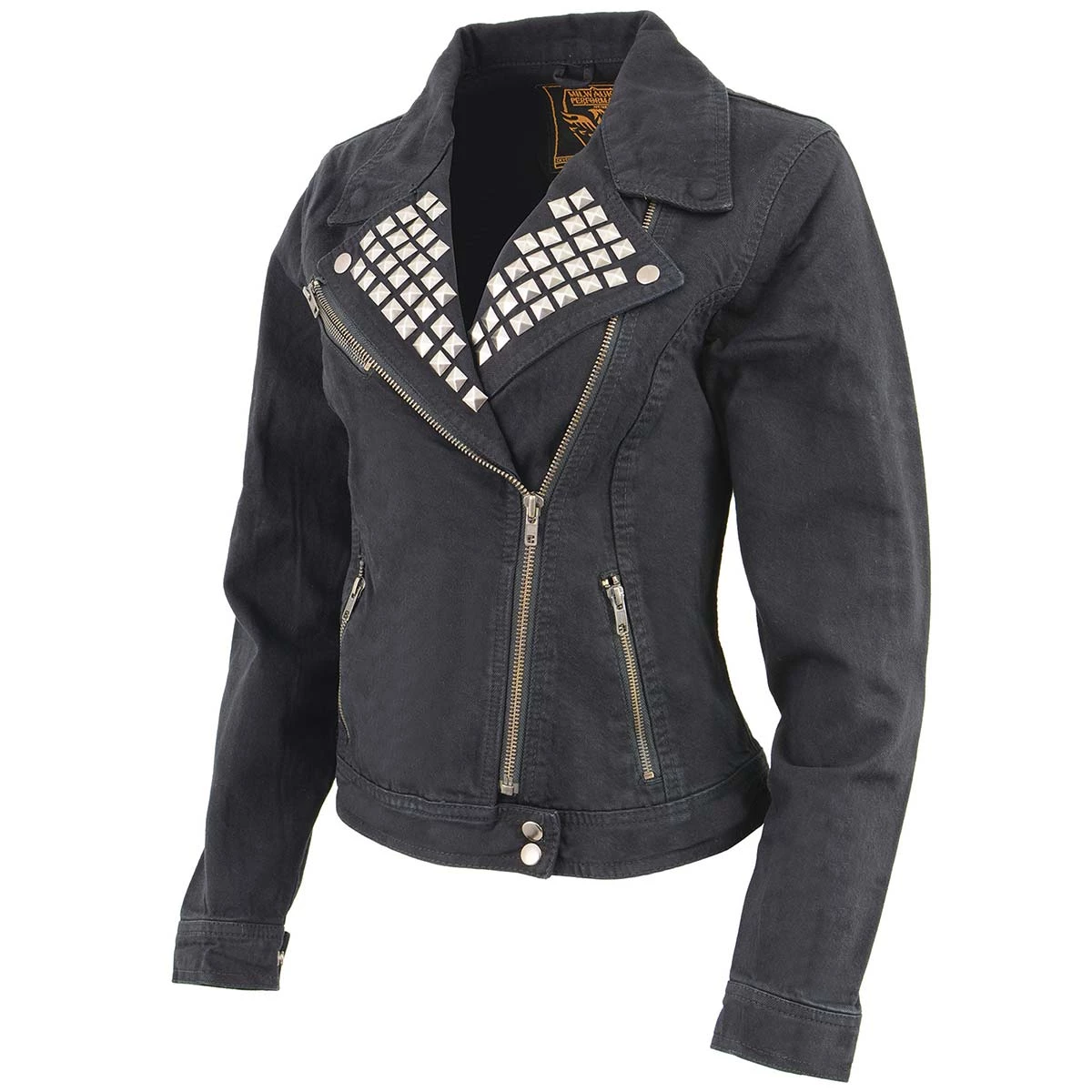 Milwaukee Leather MDL2000 Ladies Black Denim Jacket with Studded Spikes