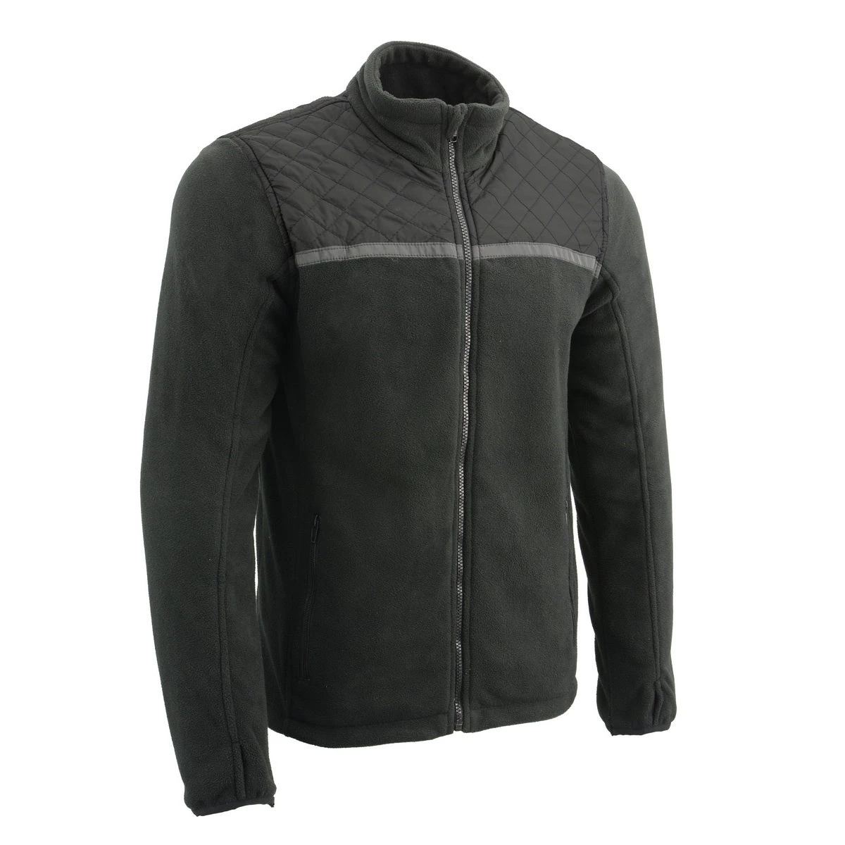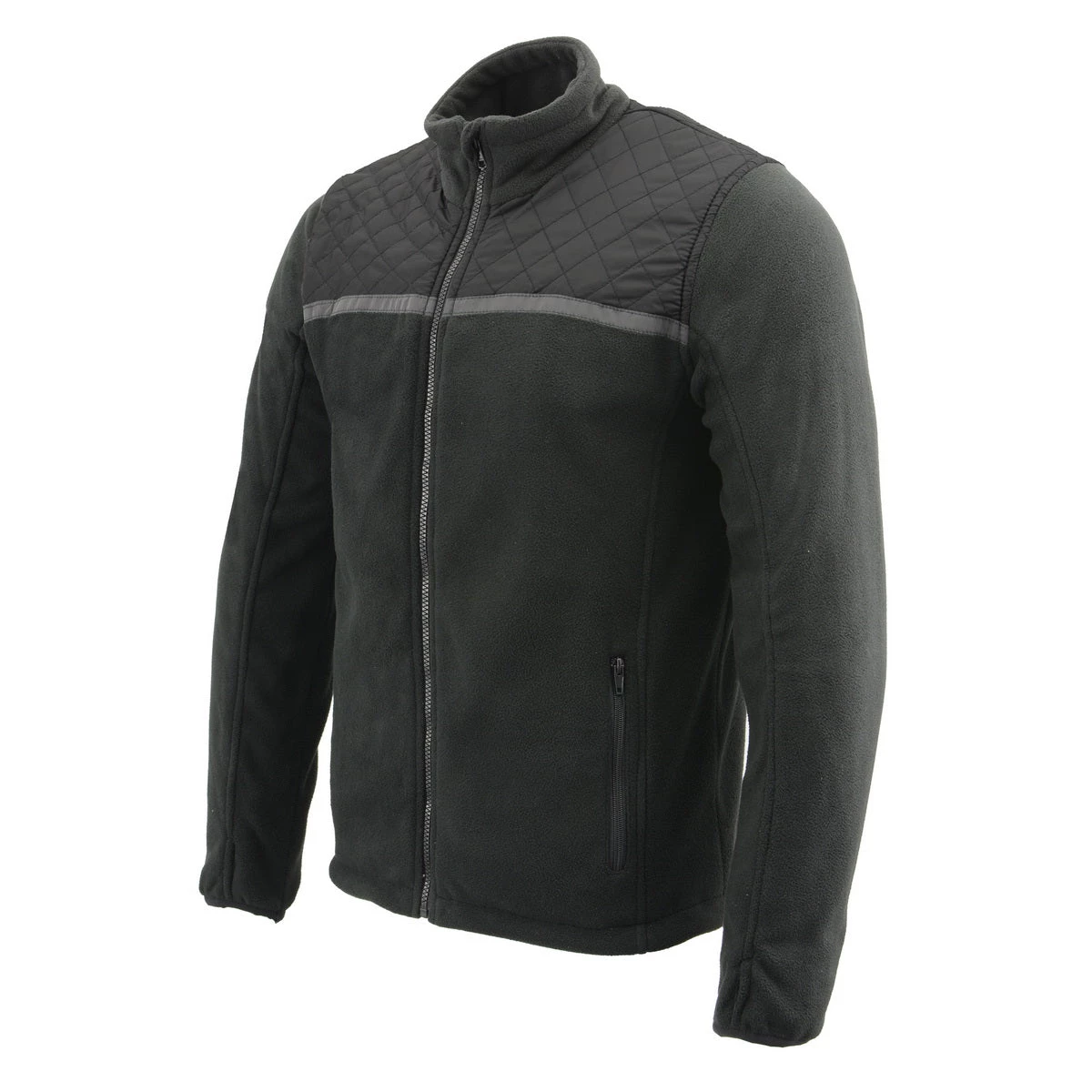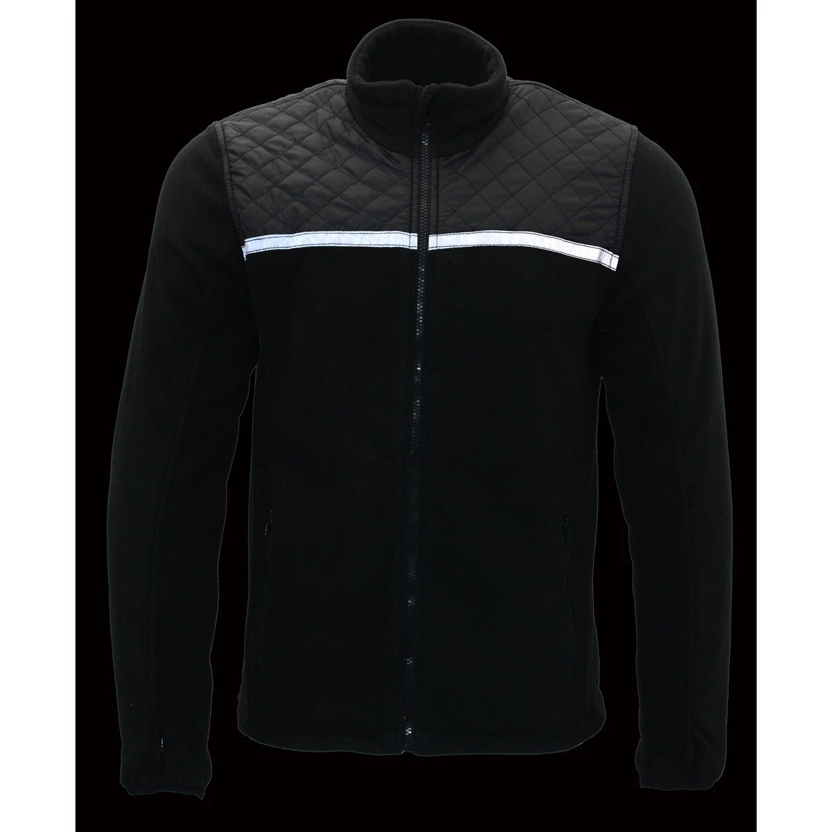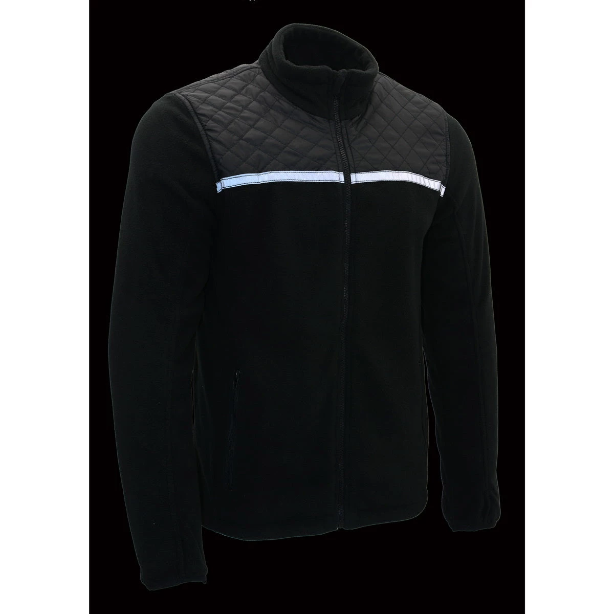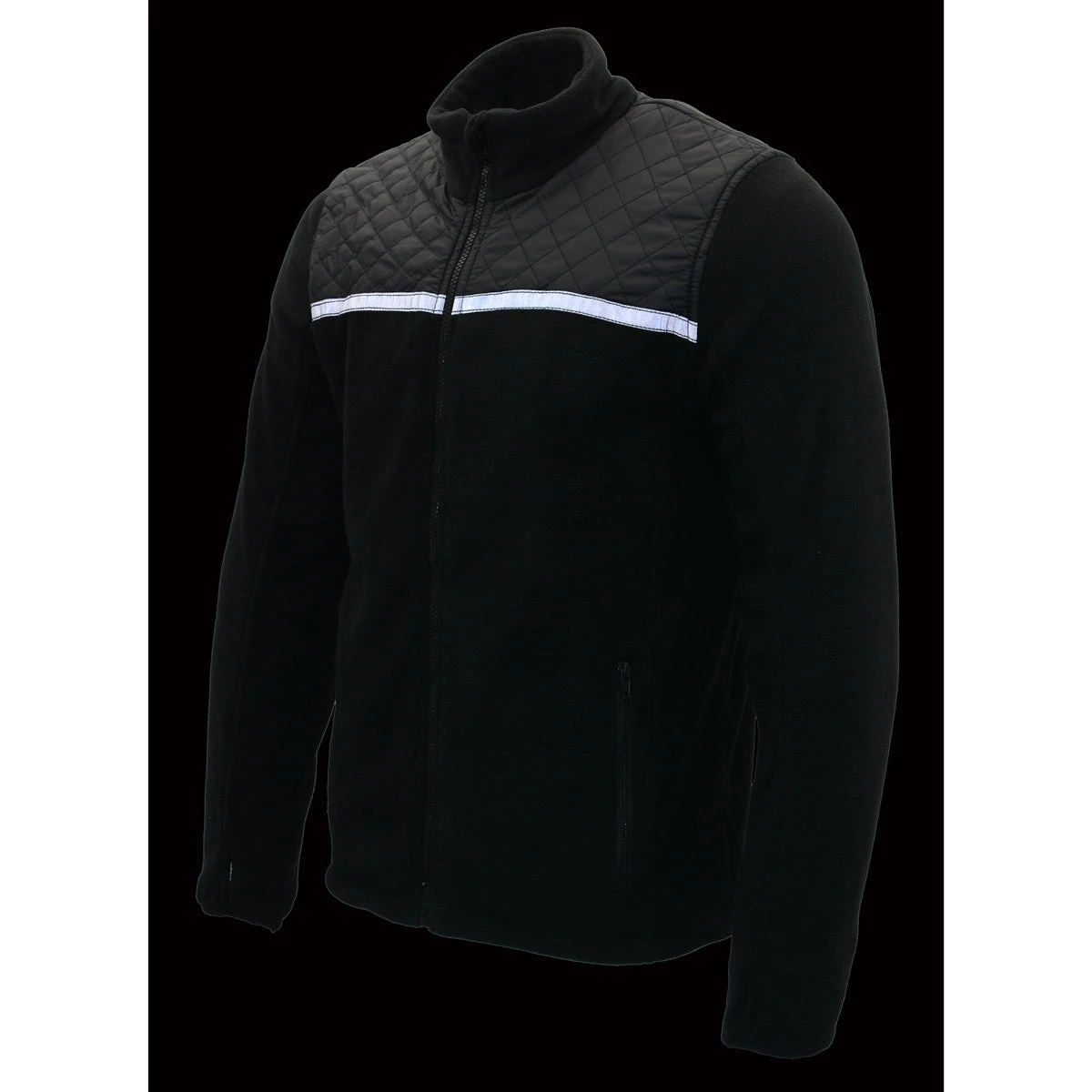 Milwaukee Leather MPM1784 Men’s Black Micro Fleece Zipper Front Jacket with Reflective Stripes