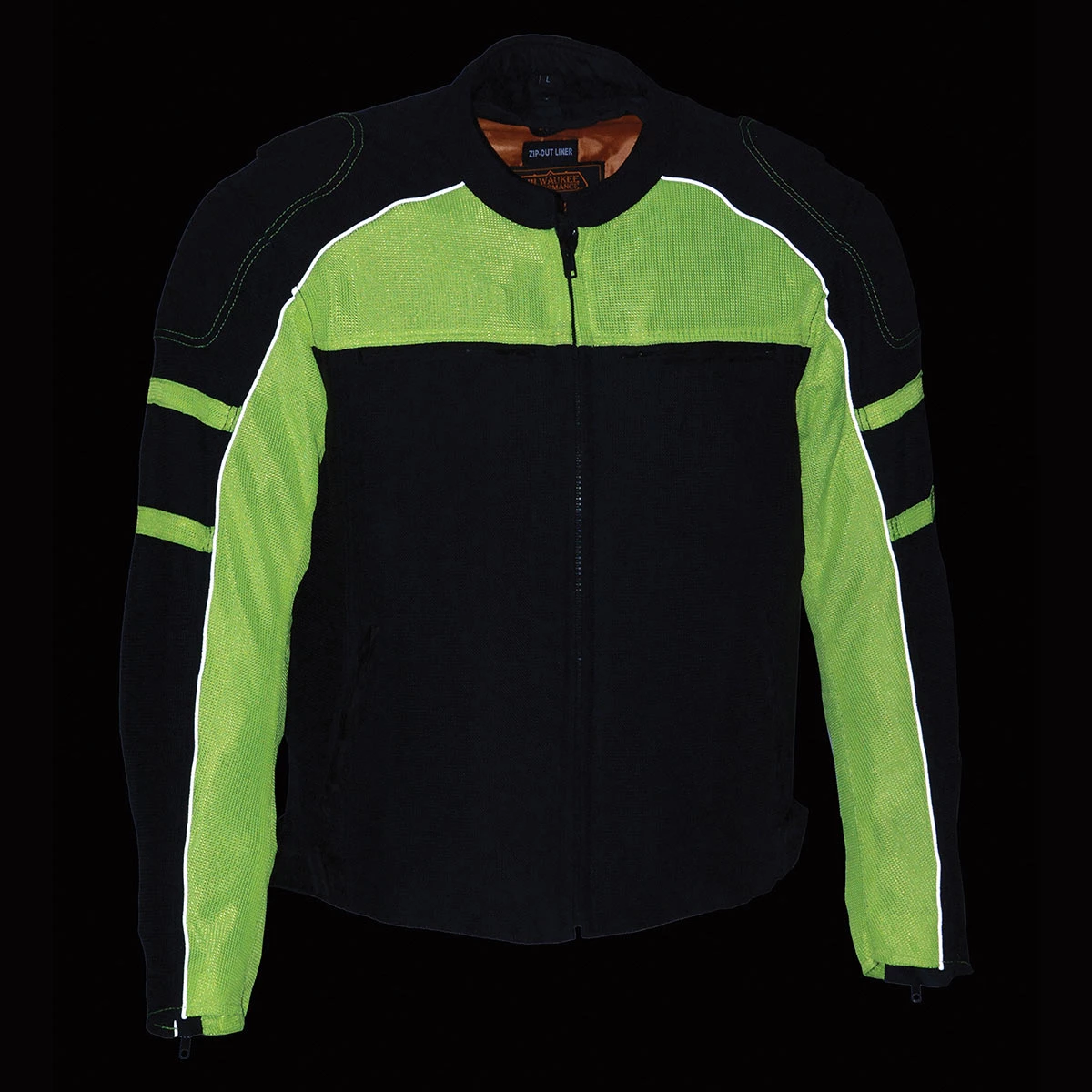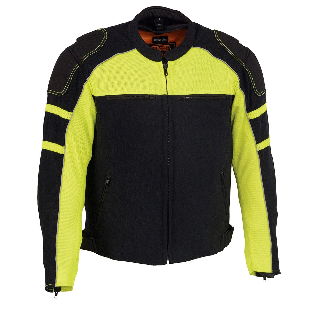 Milwaukee Leather MPM1791 Men’s Black and Neon Green Armored Textile Jacket with Removable Rain Jacket Liner