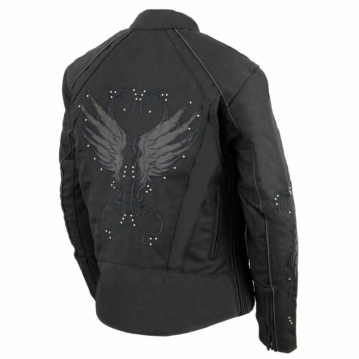 Milwaukee Leather SH1954 Women’s Black Textile Jacket with Stud and Wings Detailing