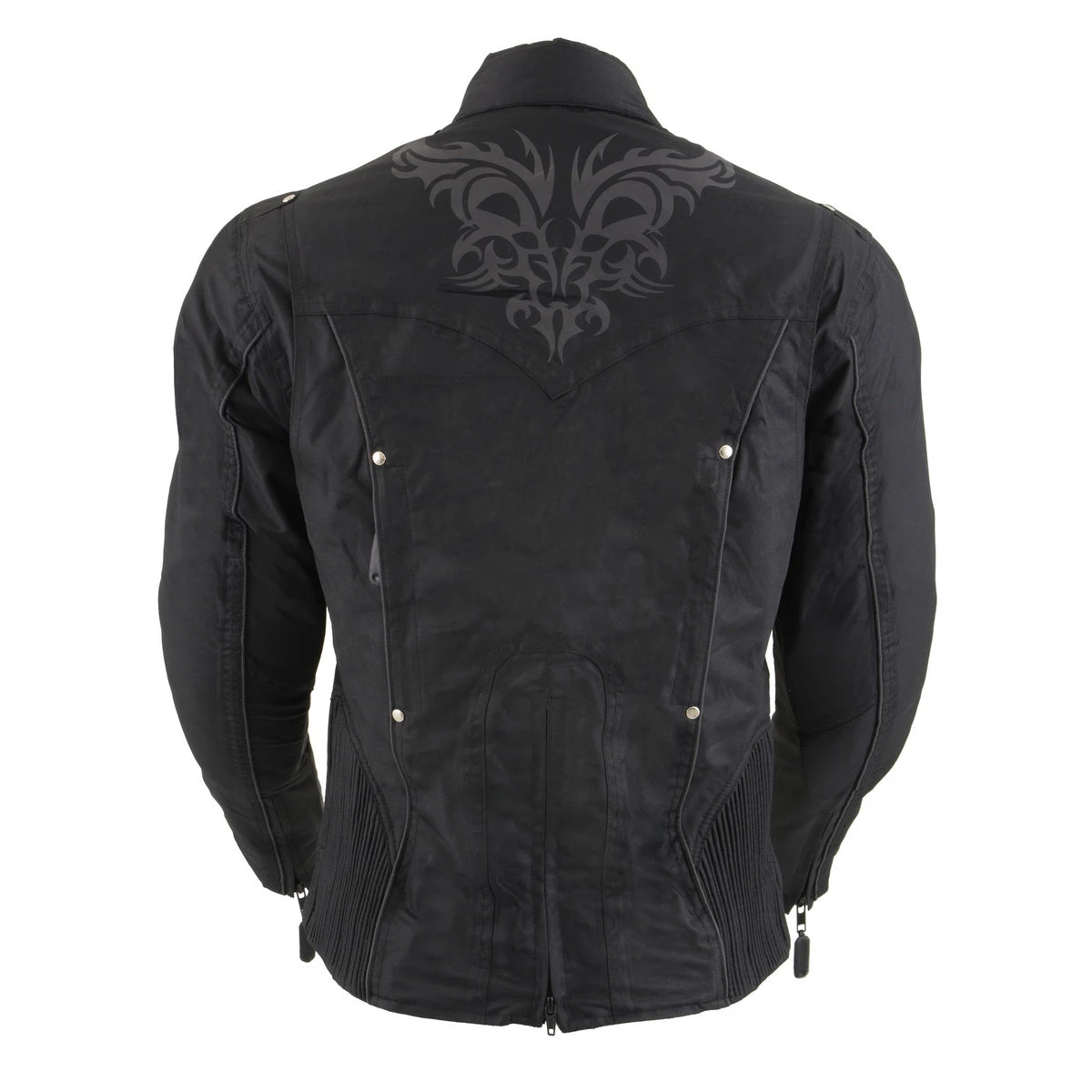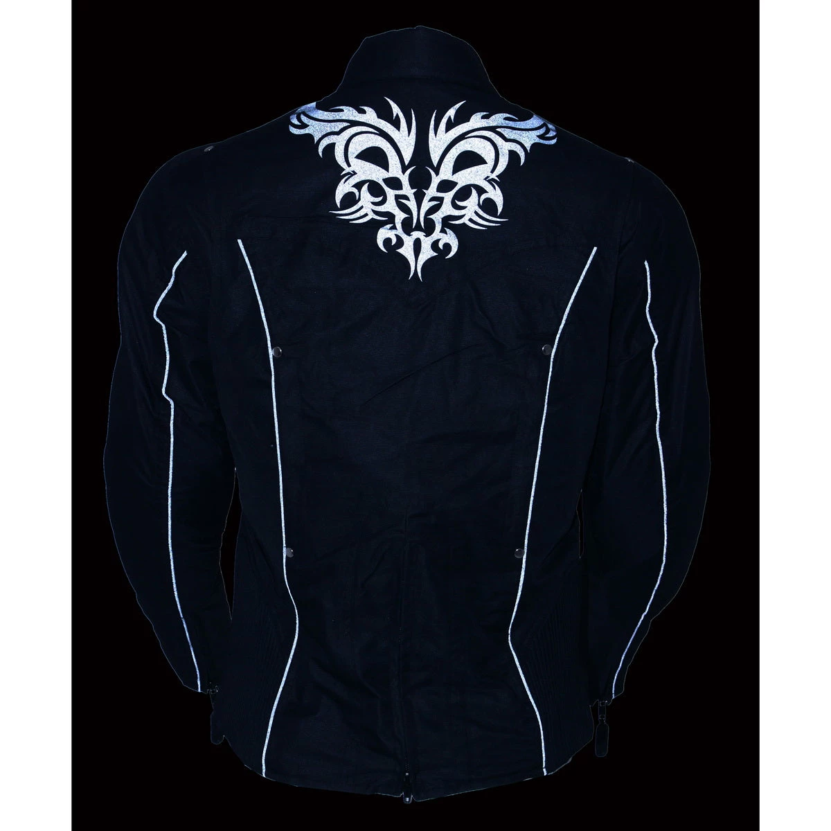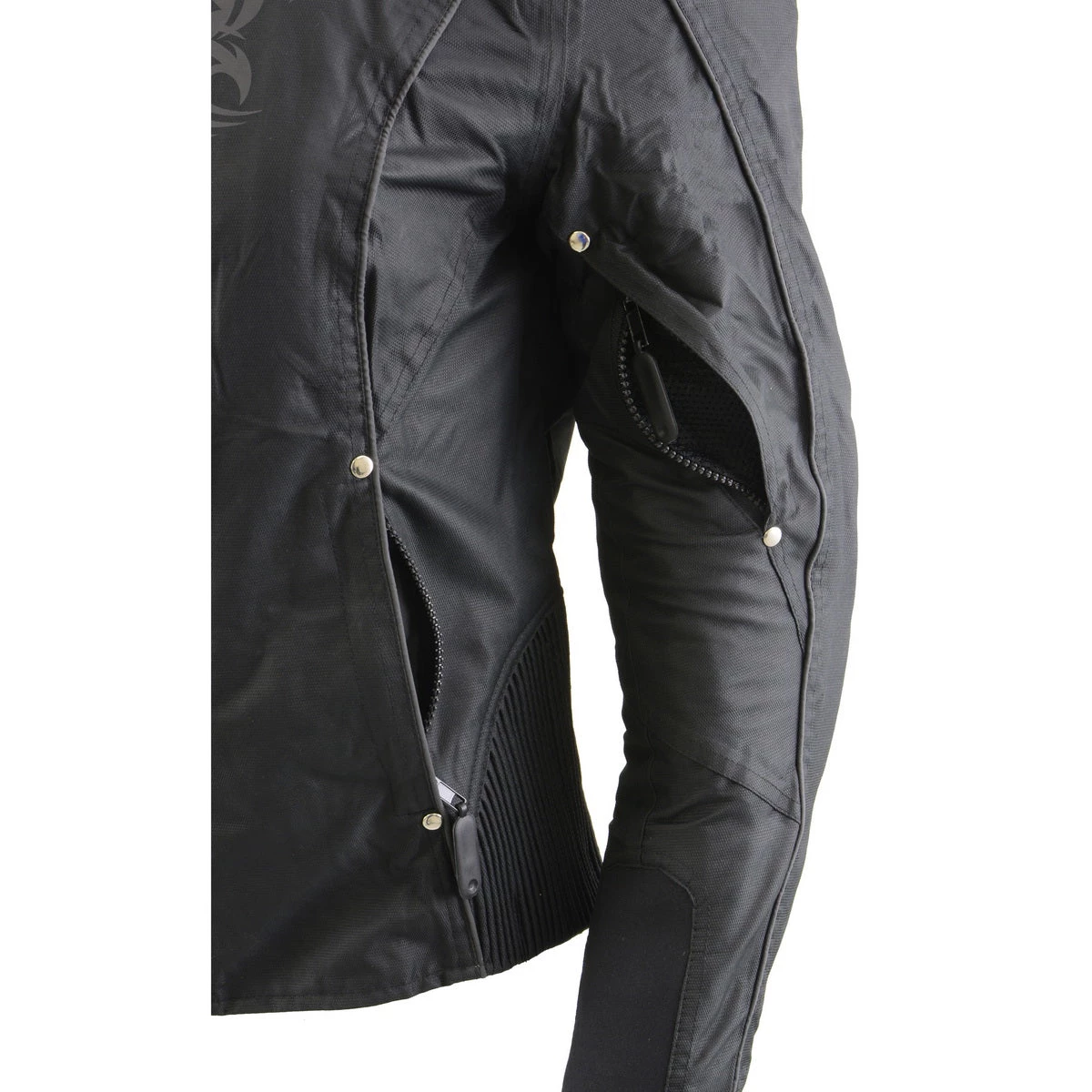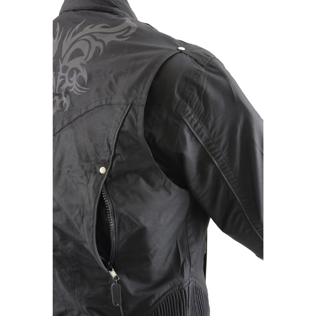 Milwaukee Leather SH2366 Ladies Black Armored Textile Jacket with Reflective Tribal Design