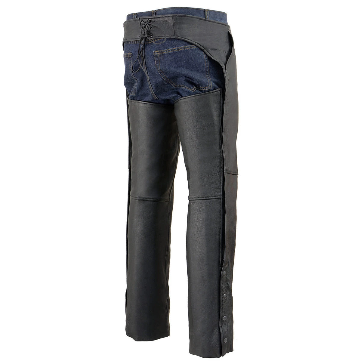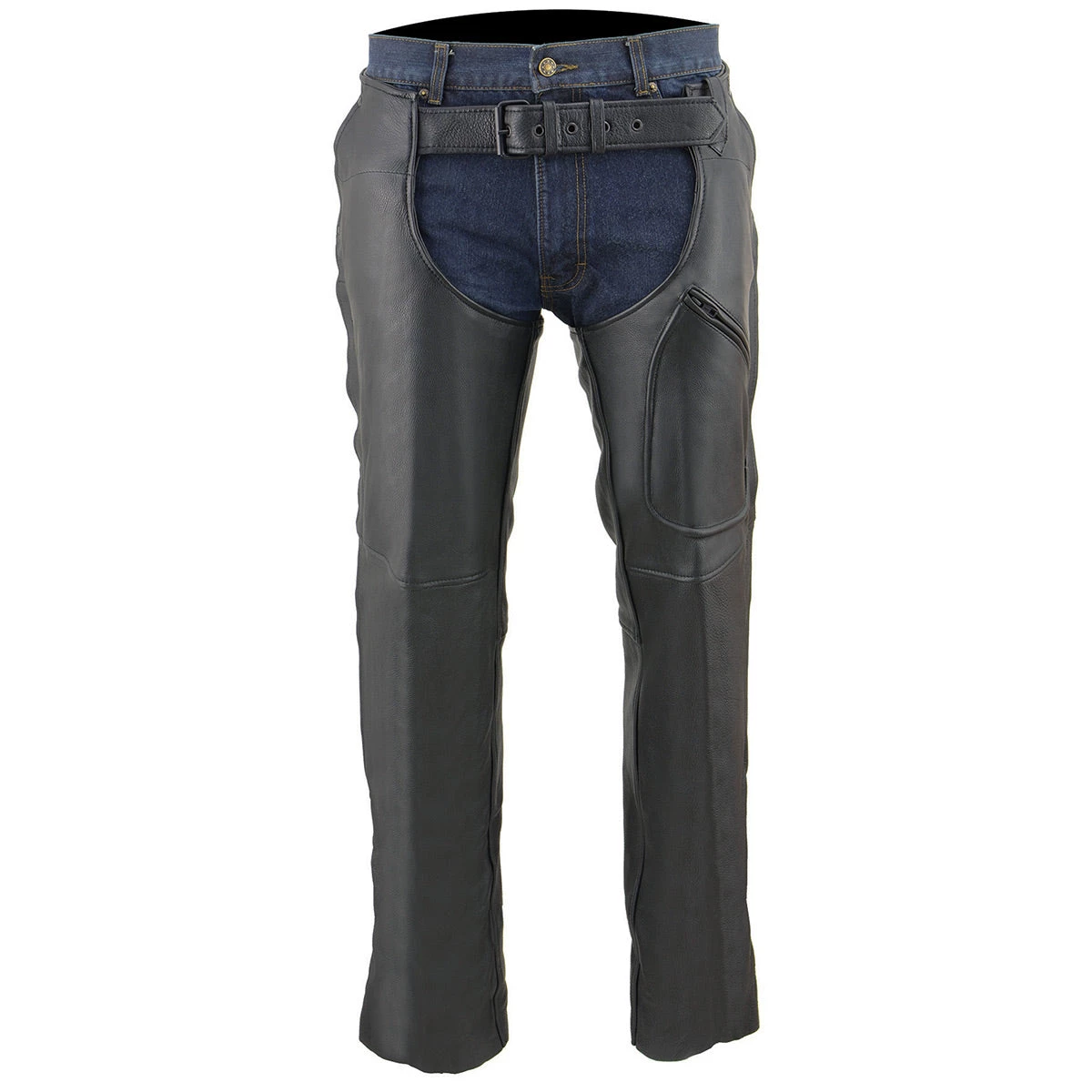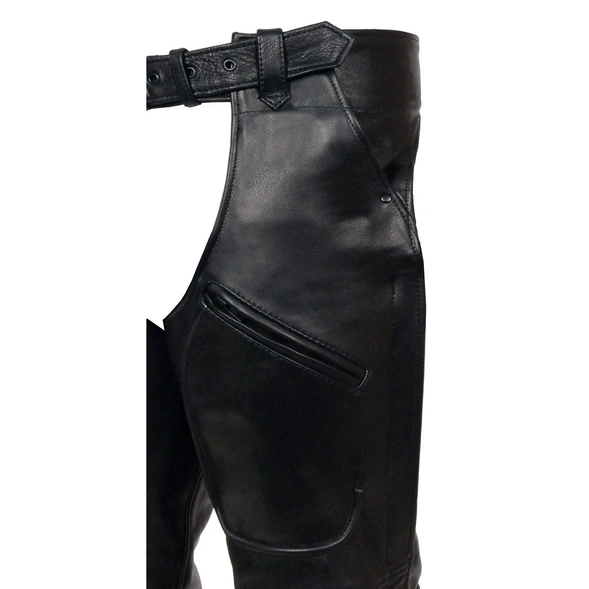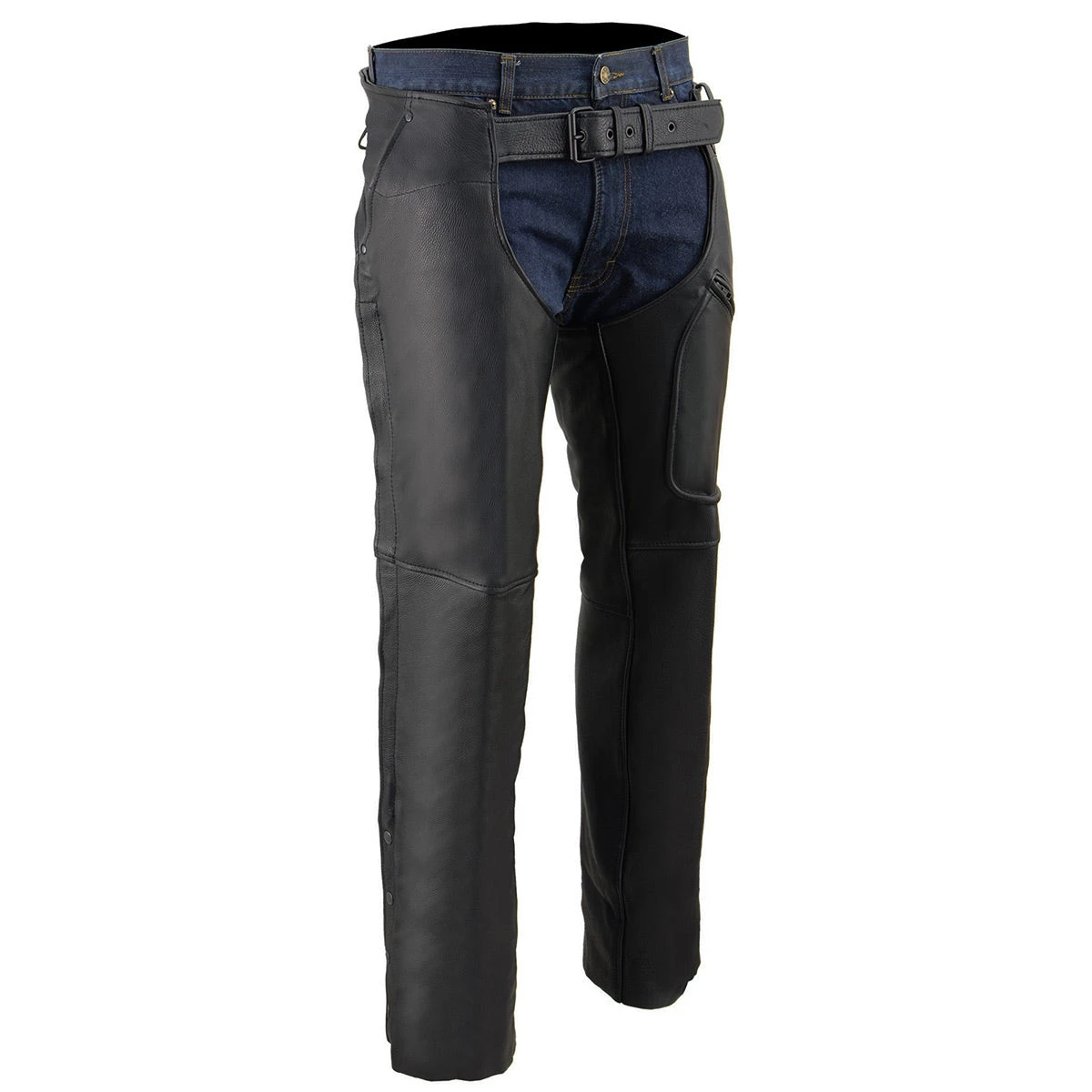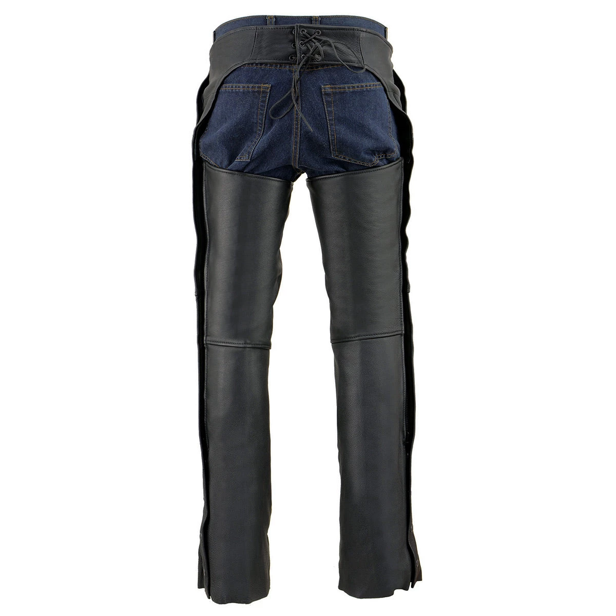 Milwaukee Leather ML1766 Men’s Black 3-Pocket Leather Chaps with Thigh Patch Pocket