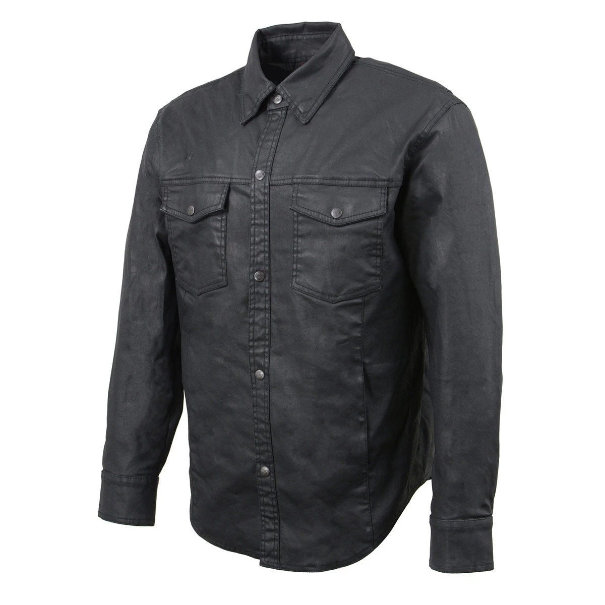 Milwaukee Leather MDM1603 Men’s Black Waxy Coated Snap Front Shirt