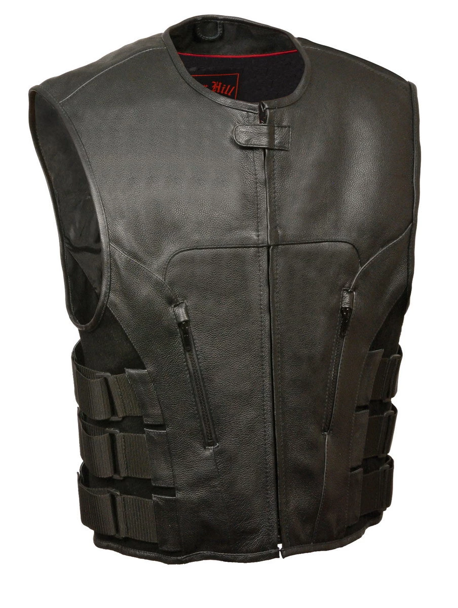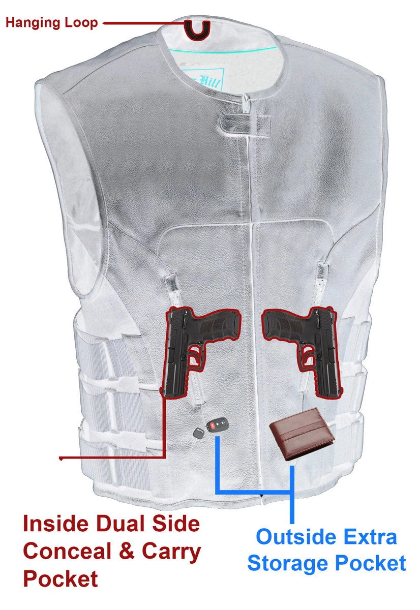 Biker Hill BAM3500 Men’s ‘Swat’ Style Leather Vests with Dual Gun Pockets