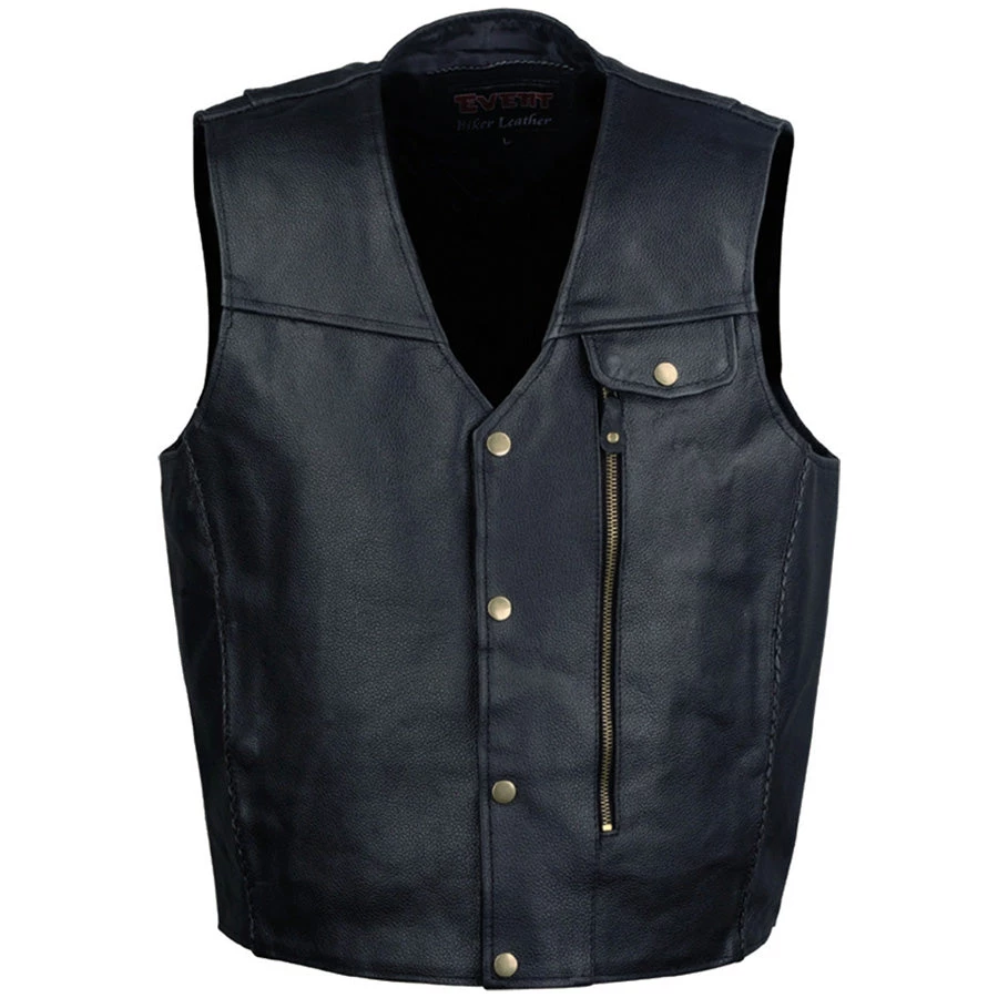 Event Leather XS5381 Men’s Classic Black Braided ‘Pistol Pete’ Leather Vest