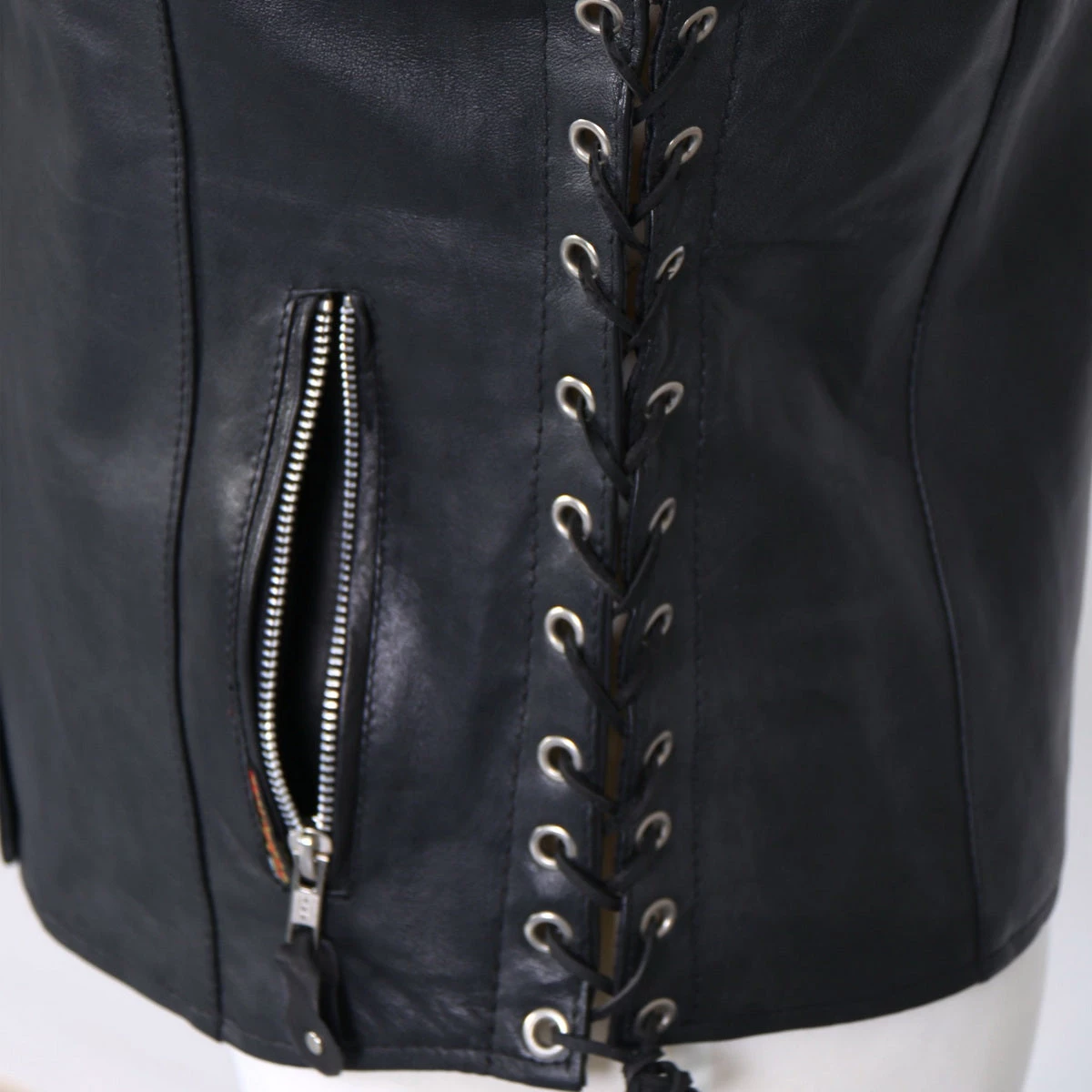 Hot Leathers VSL1010 Ladies Black Lambskin Side Lace Vest