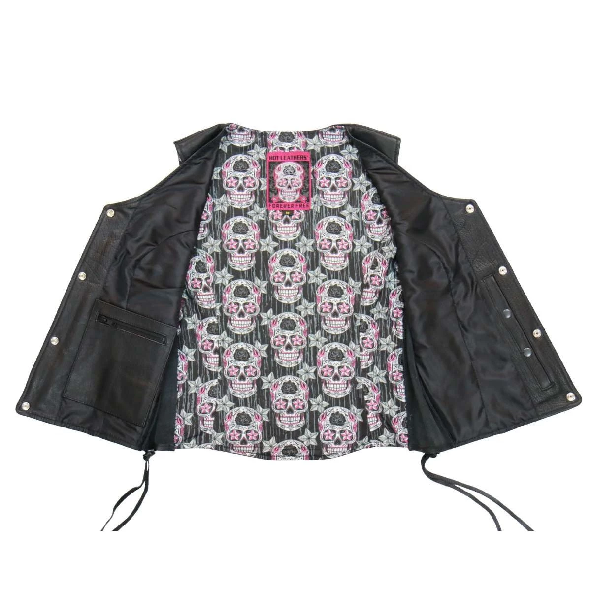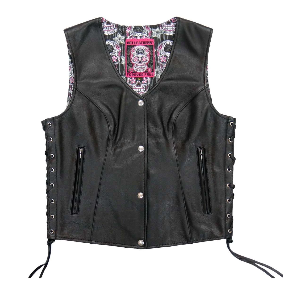 Hot Leathers VSL1017 Ladies ‘Sugar Skull’ Lined Black Leather MC Vest
