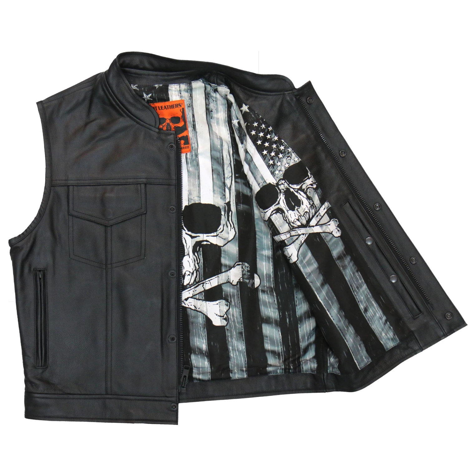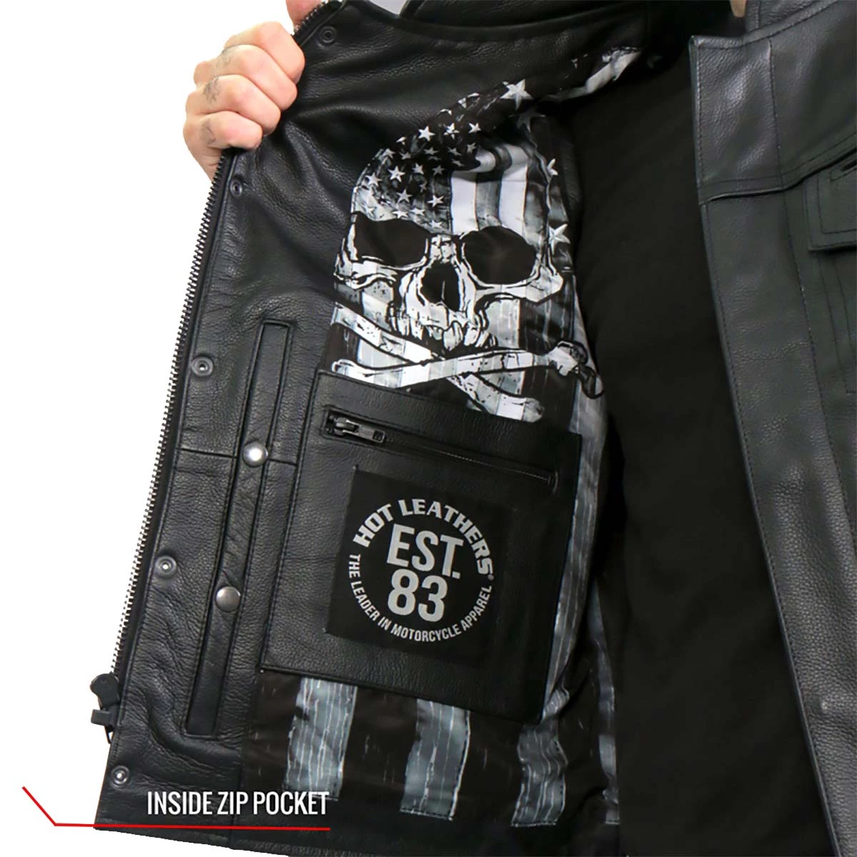 Hot Leathers VSM1054 Men’s Black ‘Skull Flag’ Conceal and Carry Leather Vest