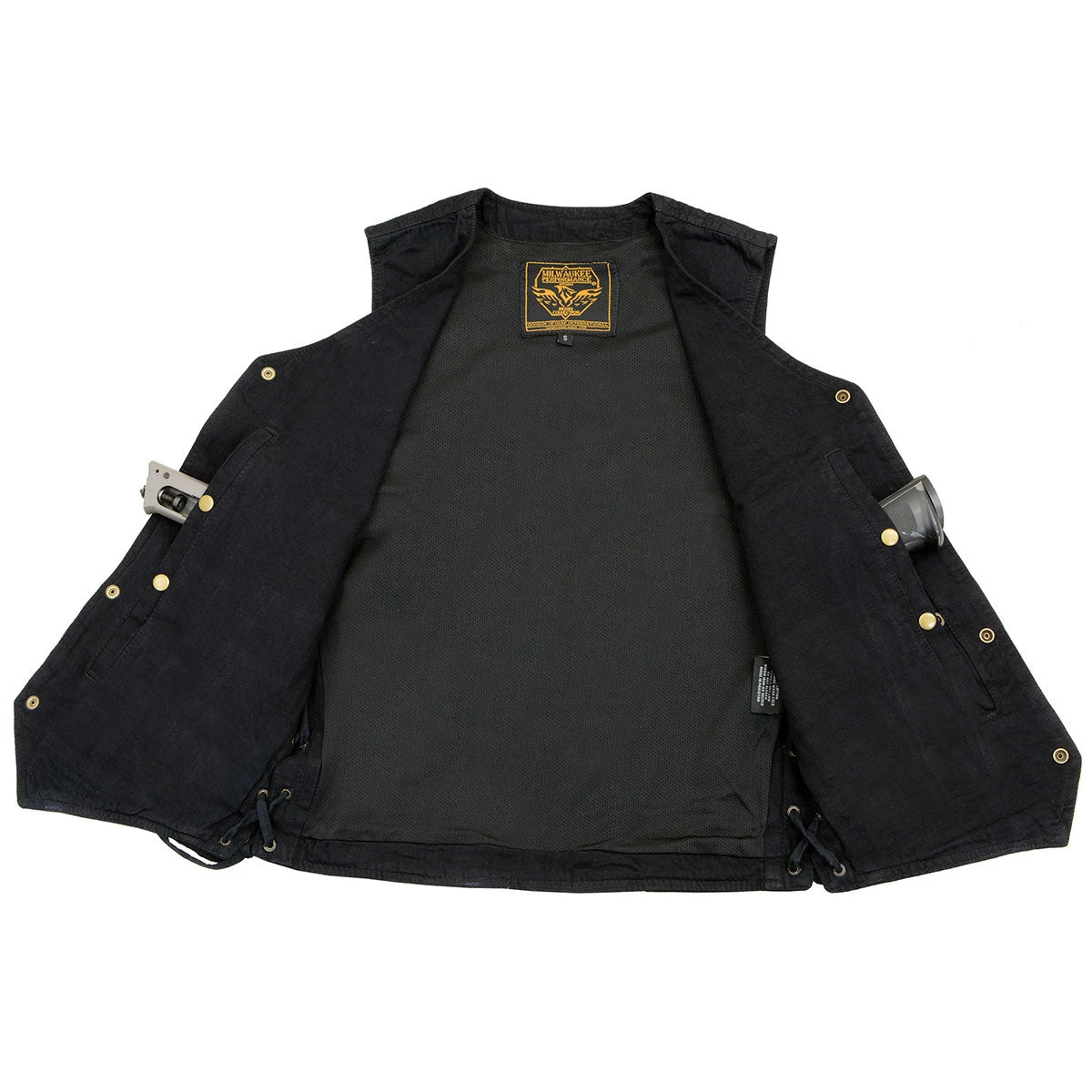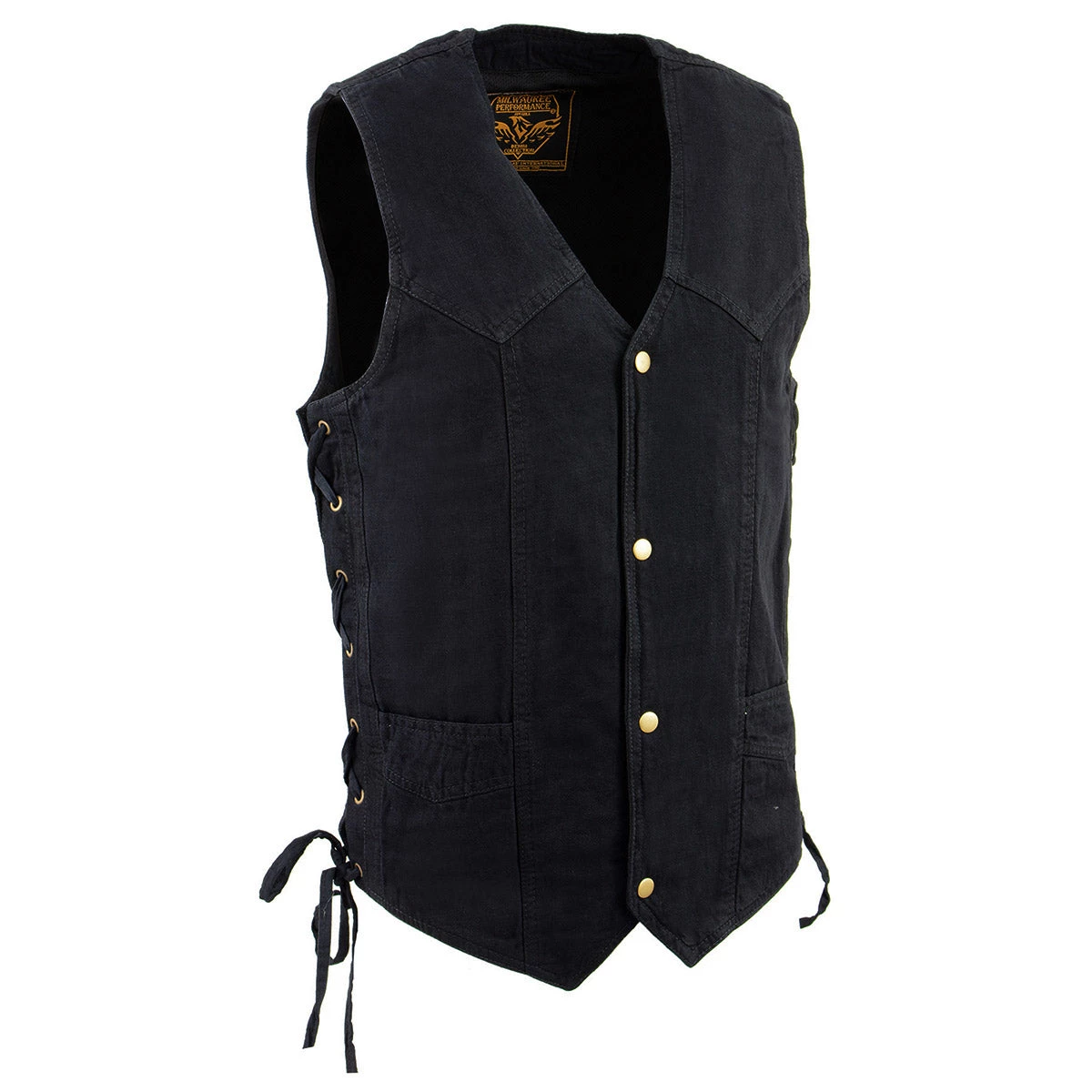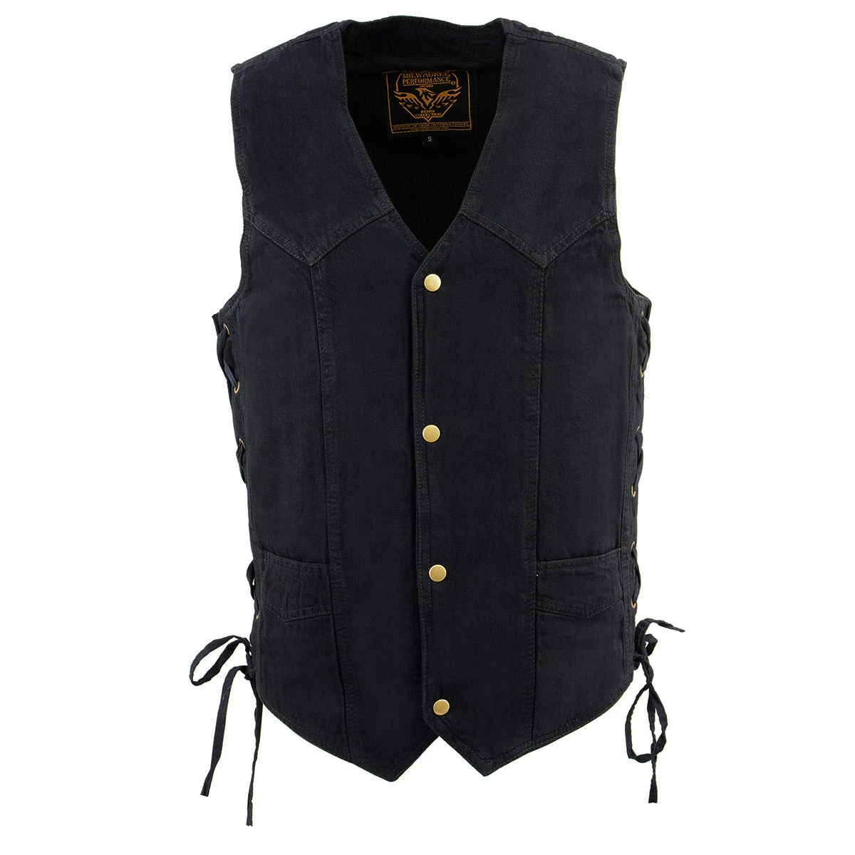 Milwaukee Leather DM1315 Men’s Black Denim Classic Side Lace Snap Front Vest