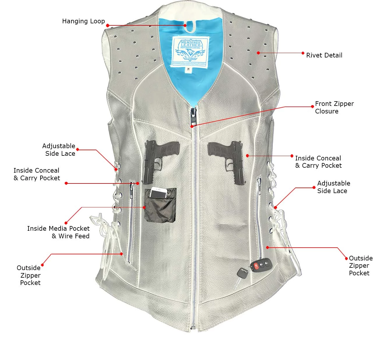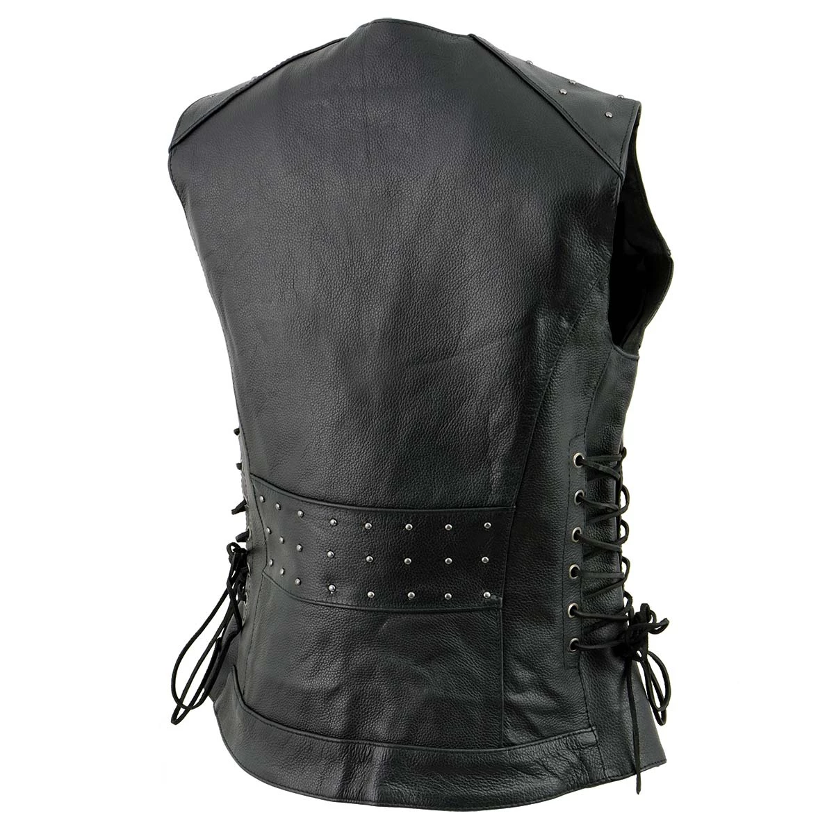 Milwaukee Leather MLL4504 Women’s ‘Riveted’ Black Leather Vest with Side Laces