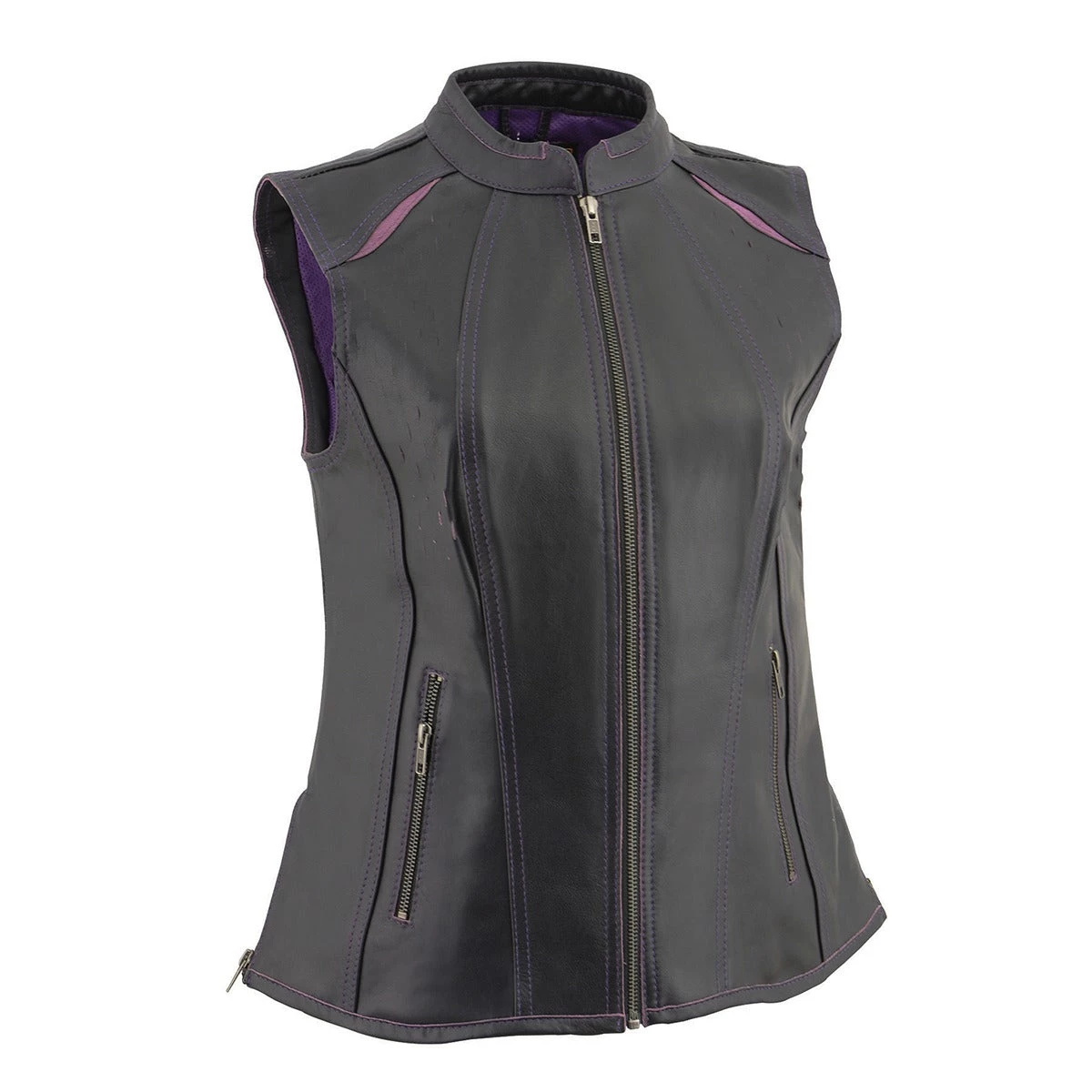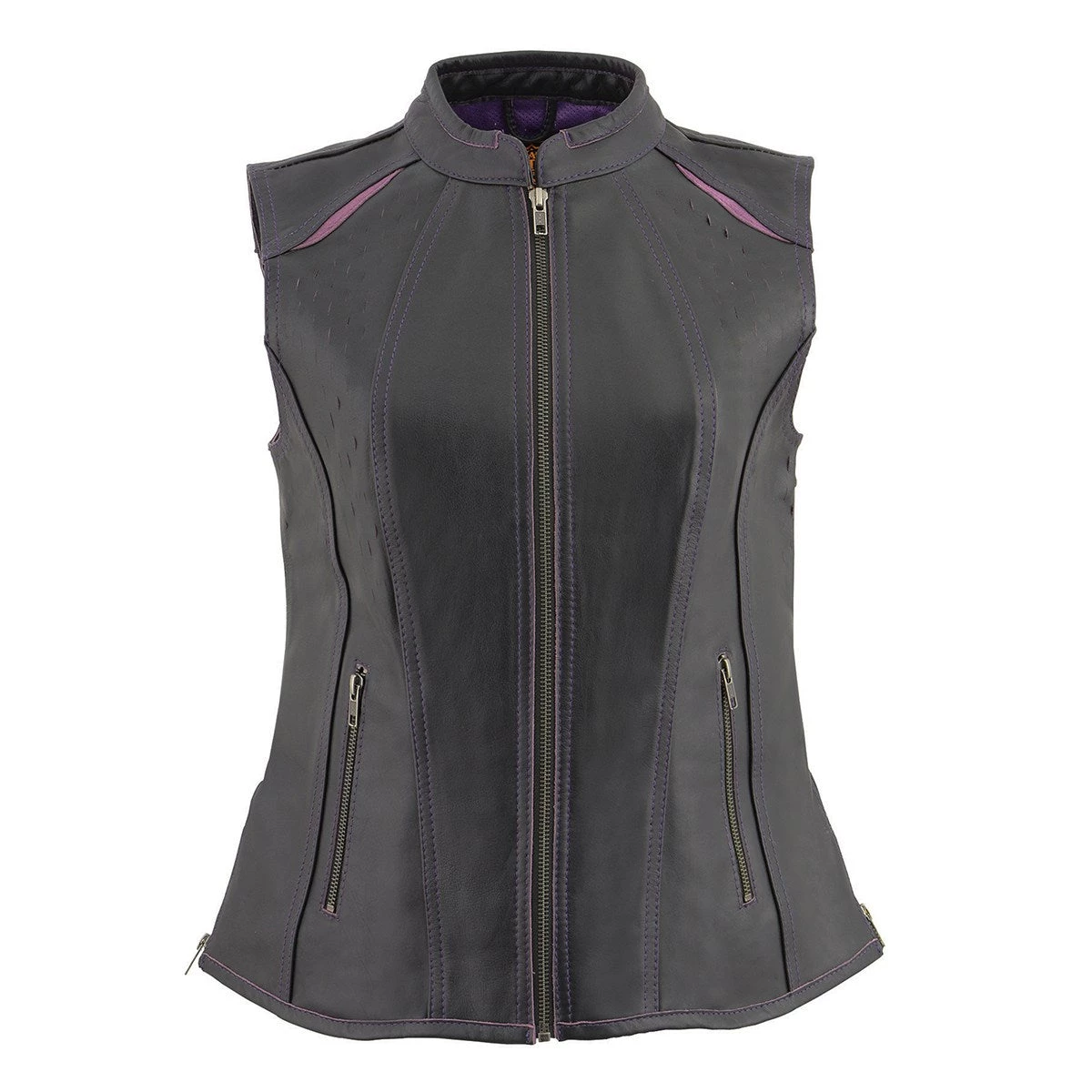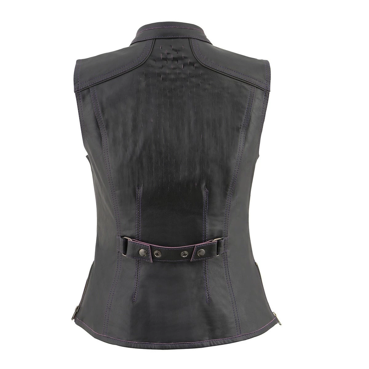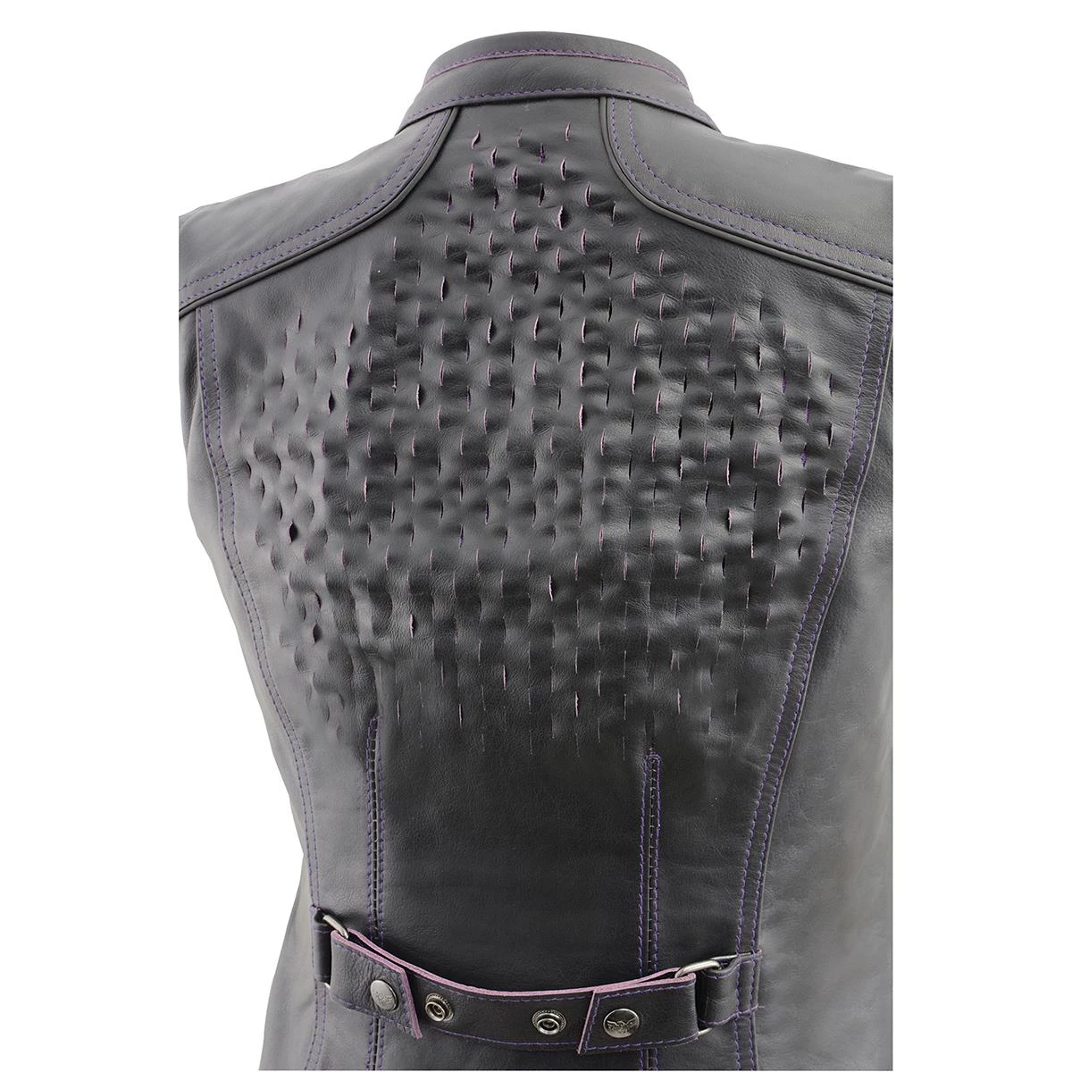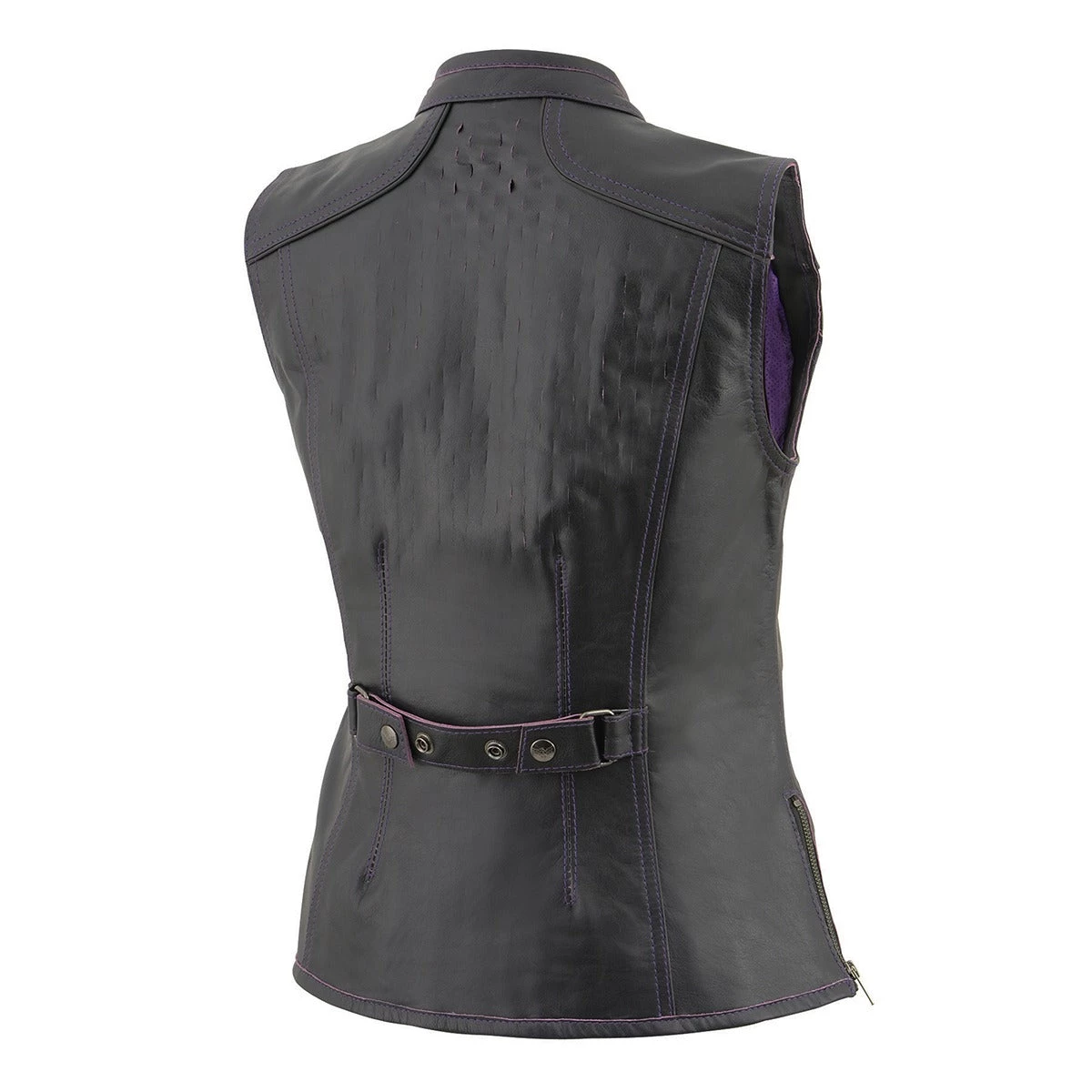 Milwaukee Leather MLL4507 Women’s ‘Laser Cut’ Distressed Black and Purple Scuba Style Vest